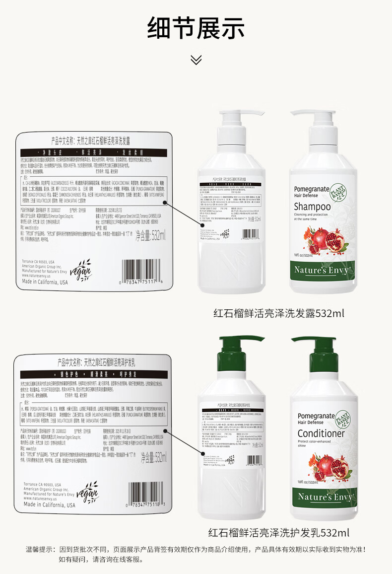 天然之扉 红石榴鲜活亮泽洗发水532ml 植物萃取烫染修护受损干枯洗发露 红石榴洗发水532ml