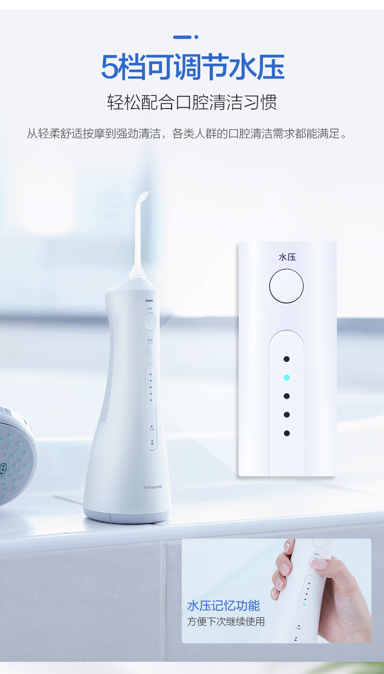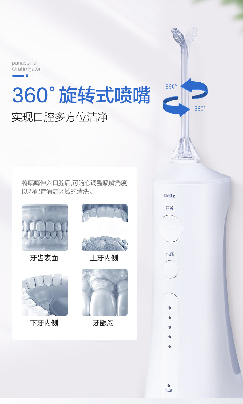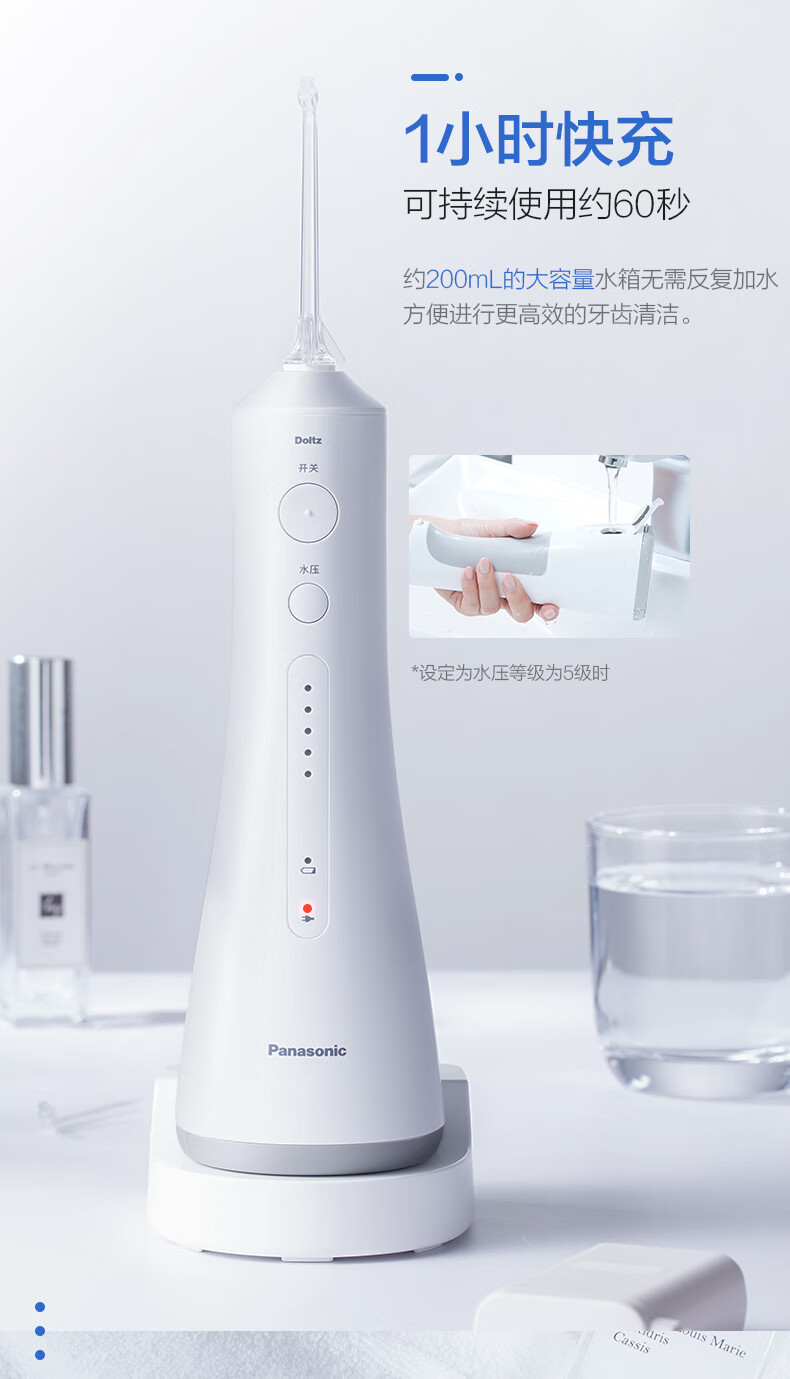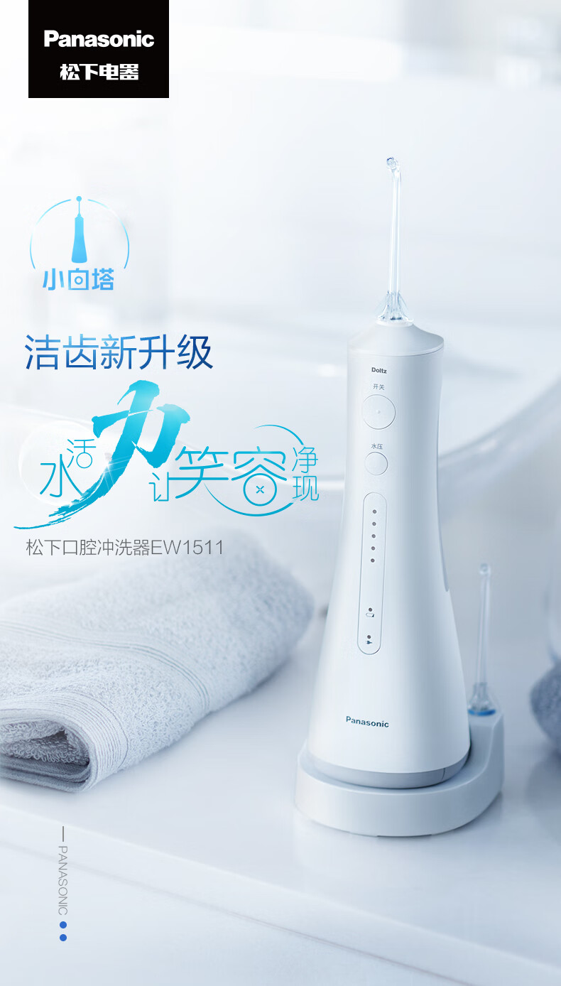 松下(Panasonic) 冲牙器便携式家用水牙线超声波正畸全身水洗洁牙器 七夕情人节礼物送女友送男友 EW1511 EW1511W405