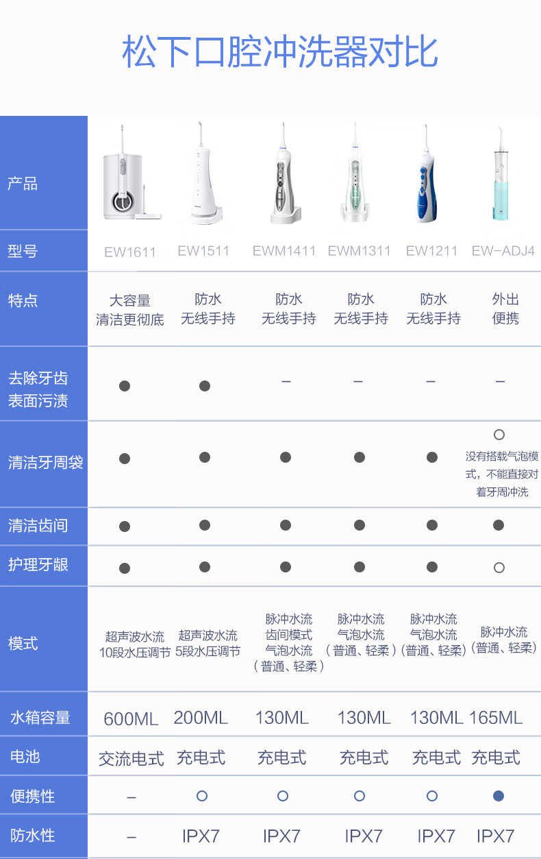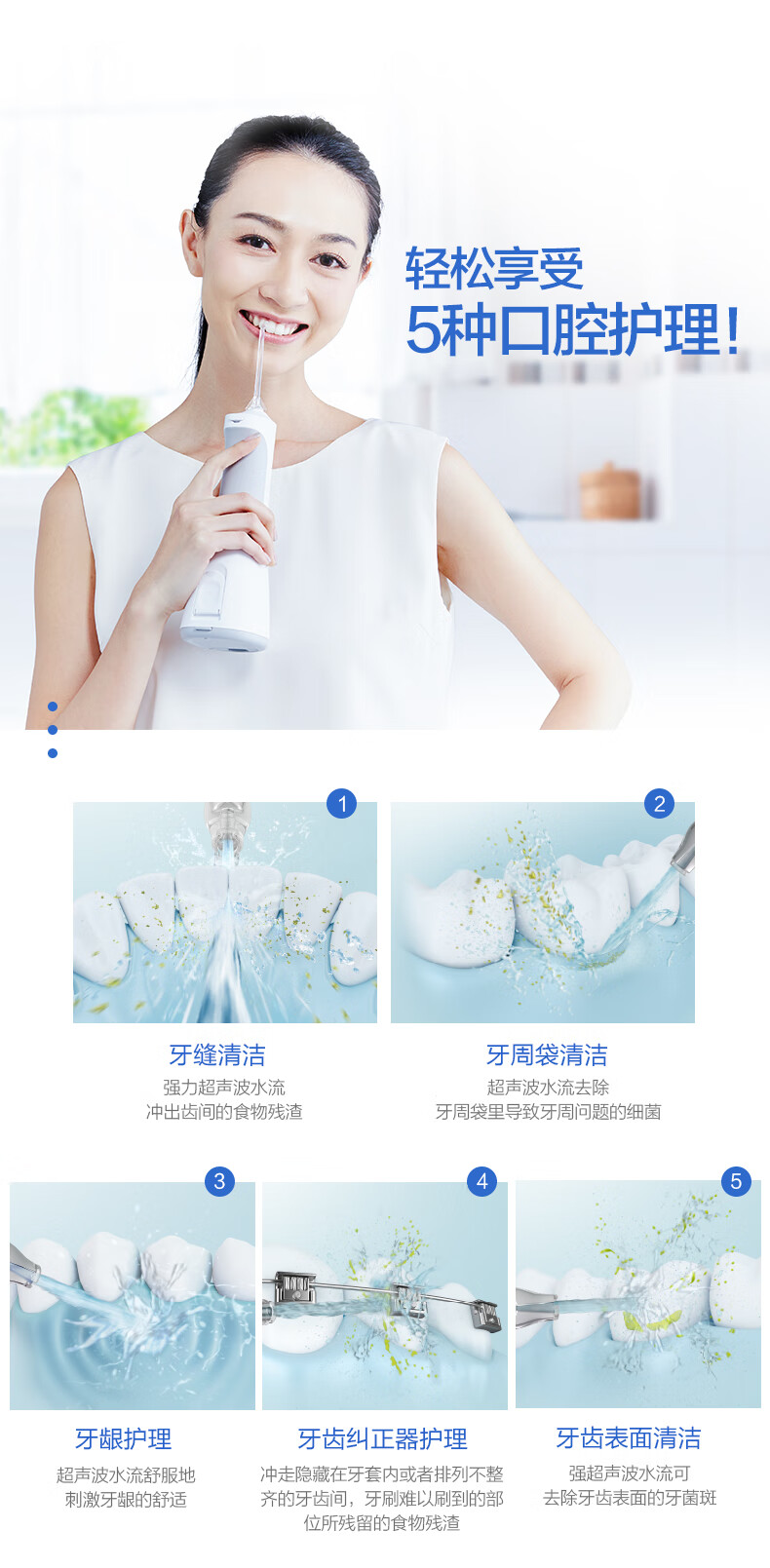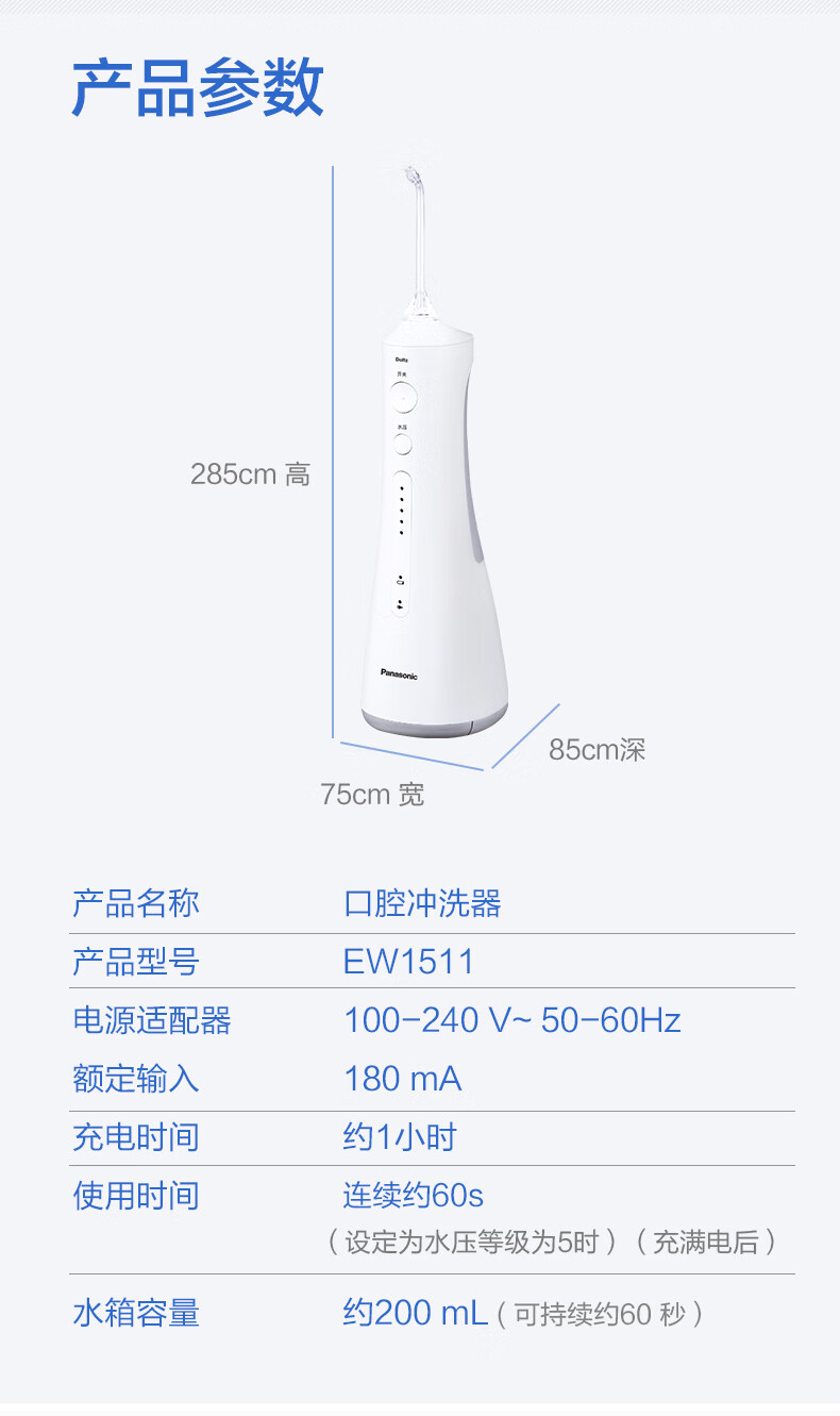 松下(Panasonic) 冲牙器便携式家用水牙线超声波正畸全身水洗洁牙器 七夕情人节礼物送女友送男友 EW1511 EW1511W405