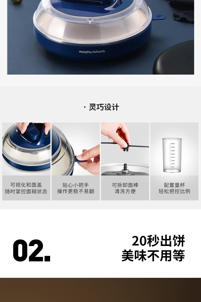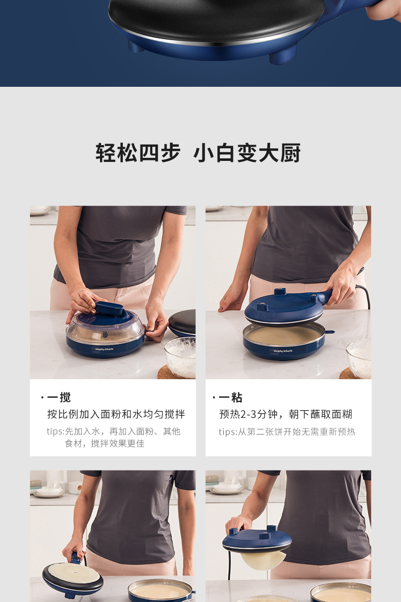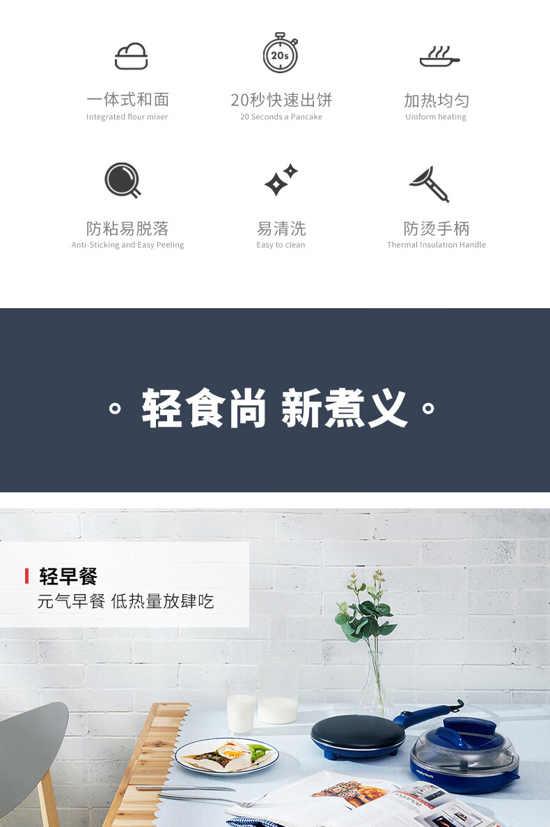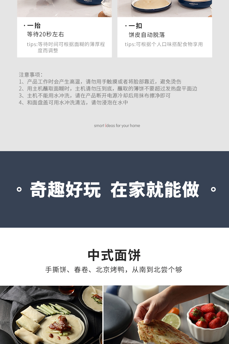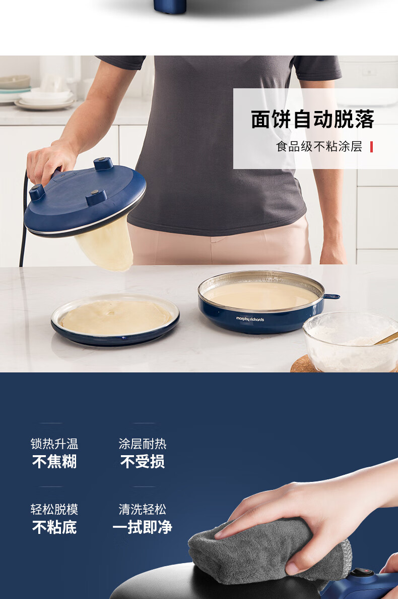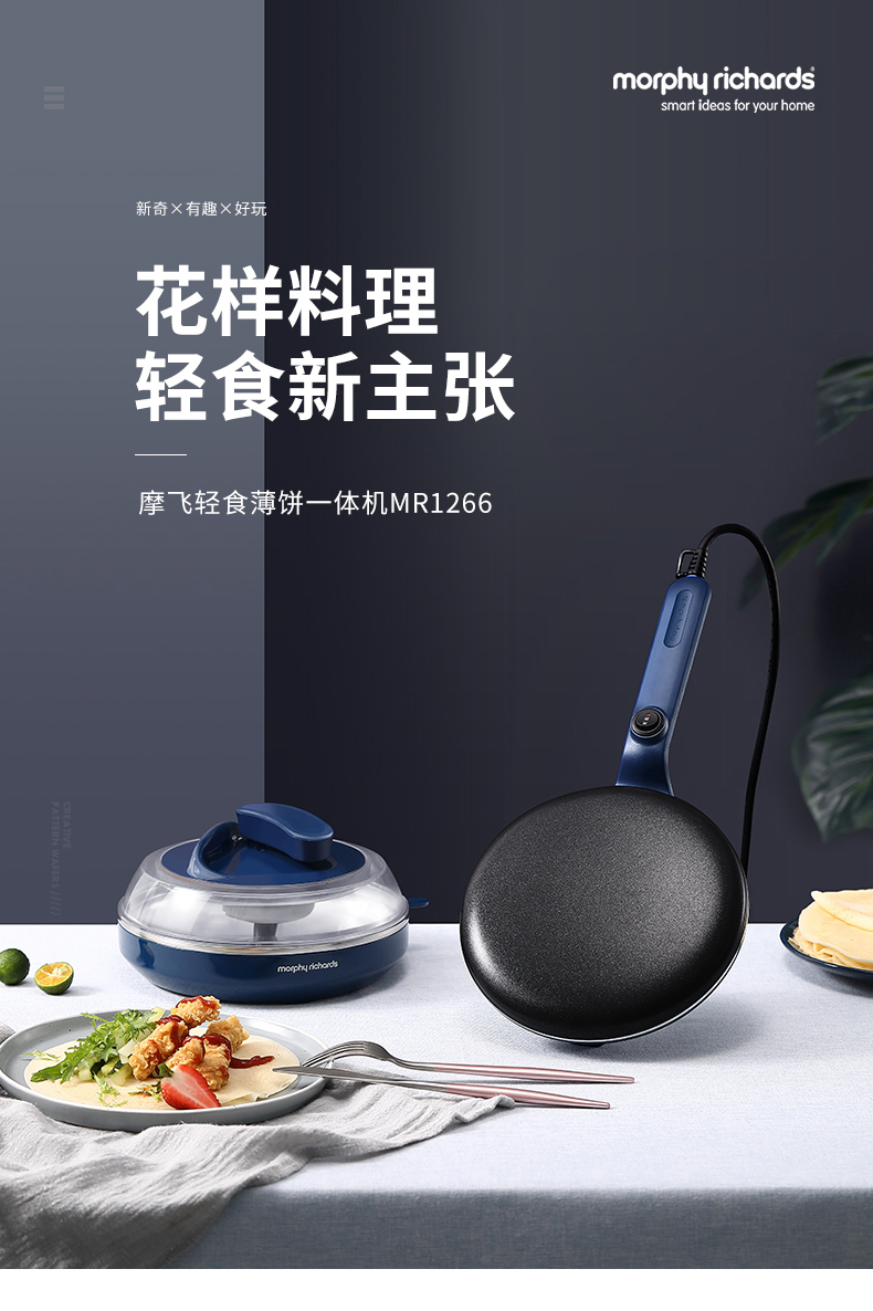 摩飞电器(Morphyrichards) 薄饼机卷饼机电饼铛家用多功能早餐机春饼机千层饼锅烙饼机 和面煎饼机MR1266