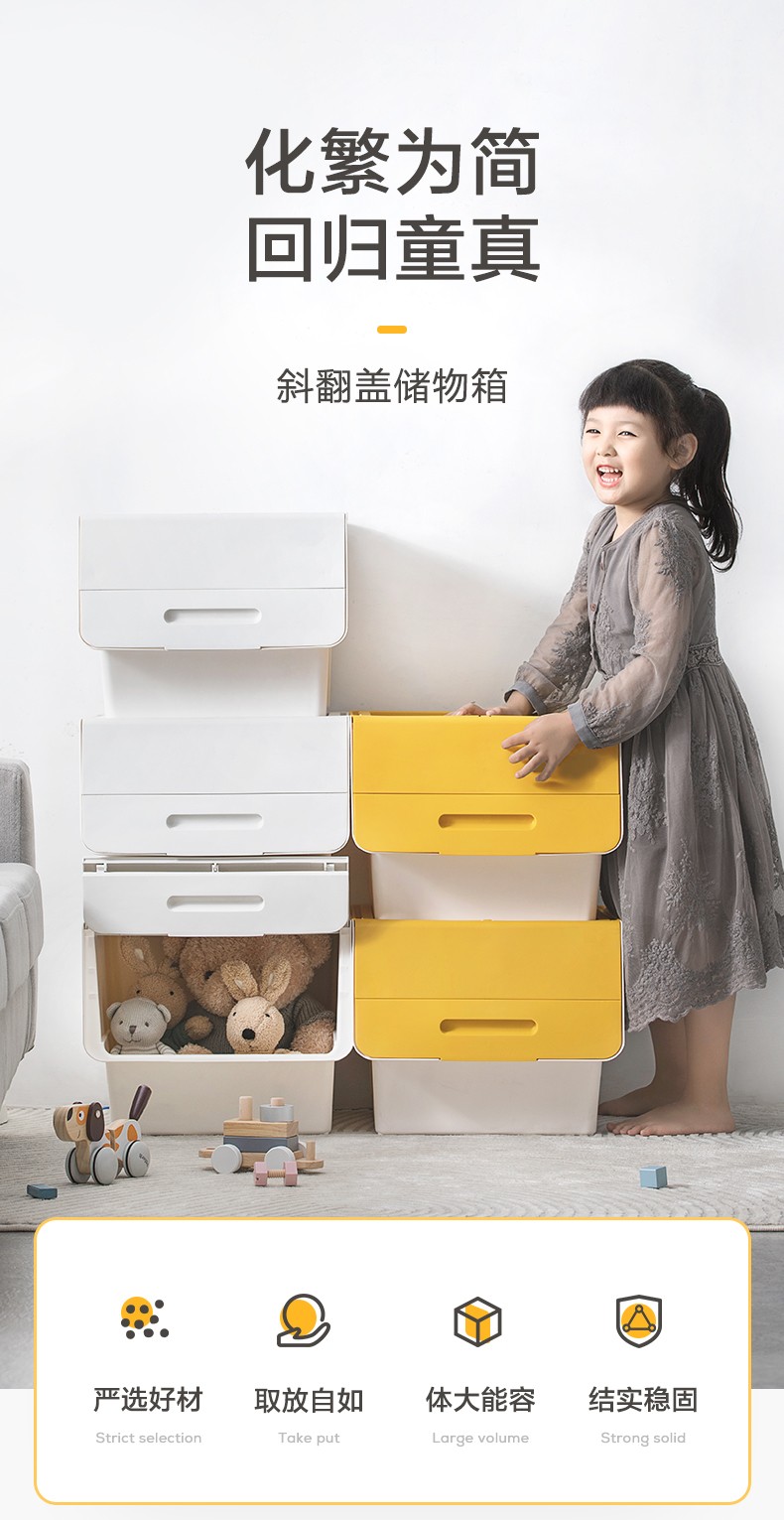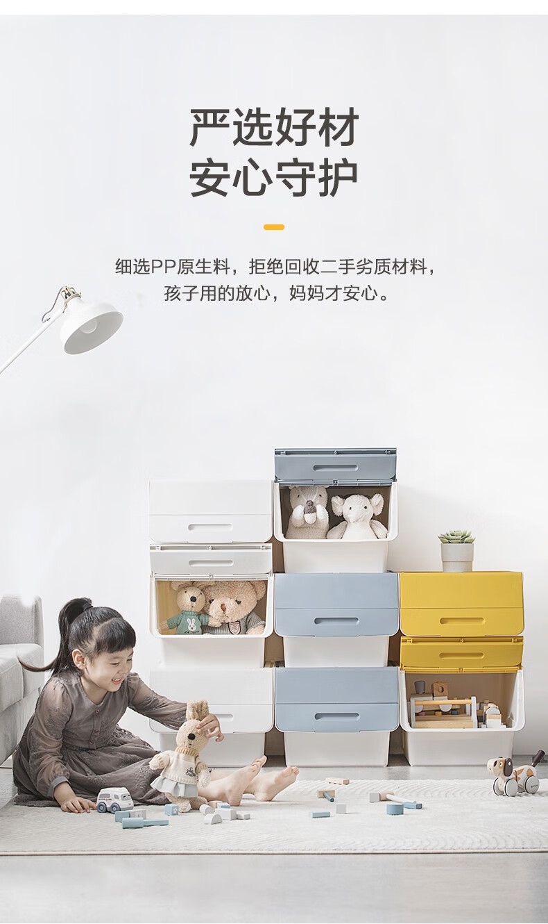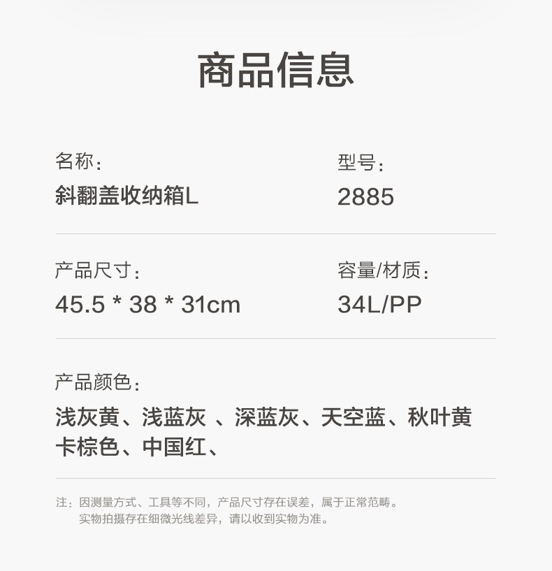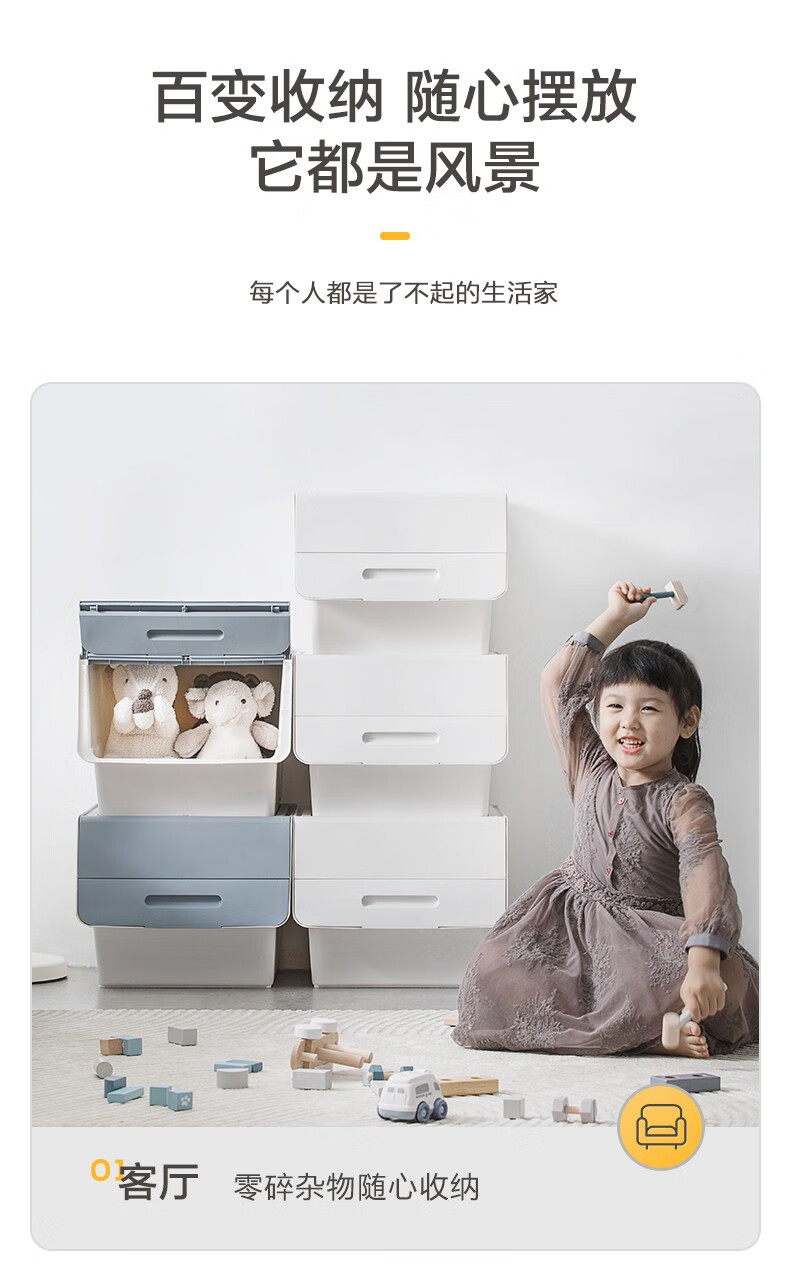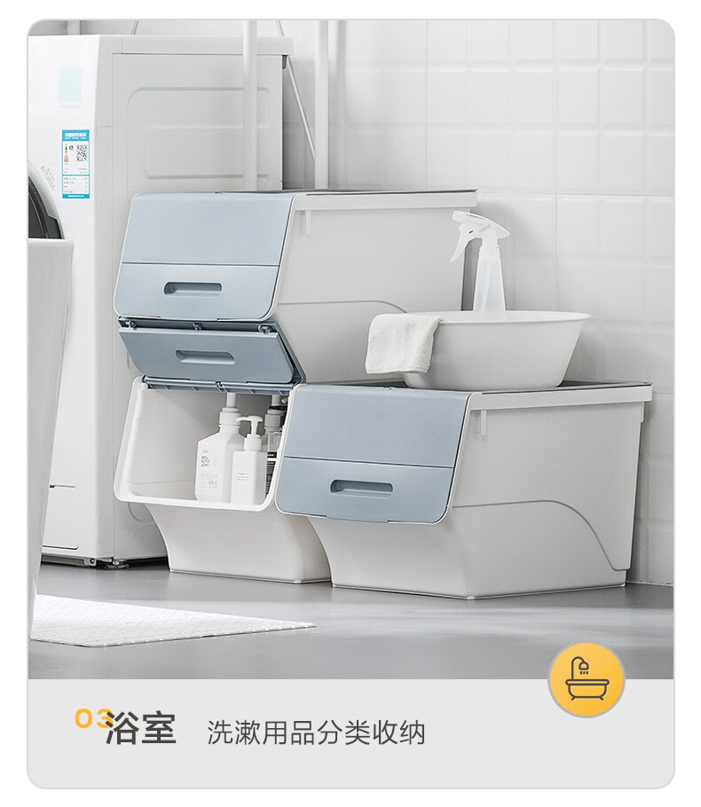 茶花(CHAHUA)茶花34L收纳箱塑料化妆品收纳盒儿童玩具零食整理箱储物箱斜口前开个性叠加收纳柜 天空蓝大号 34L*2个装(实测45.5*38*31)