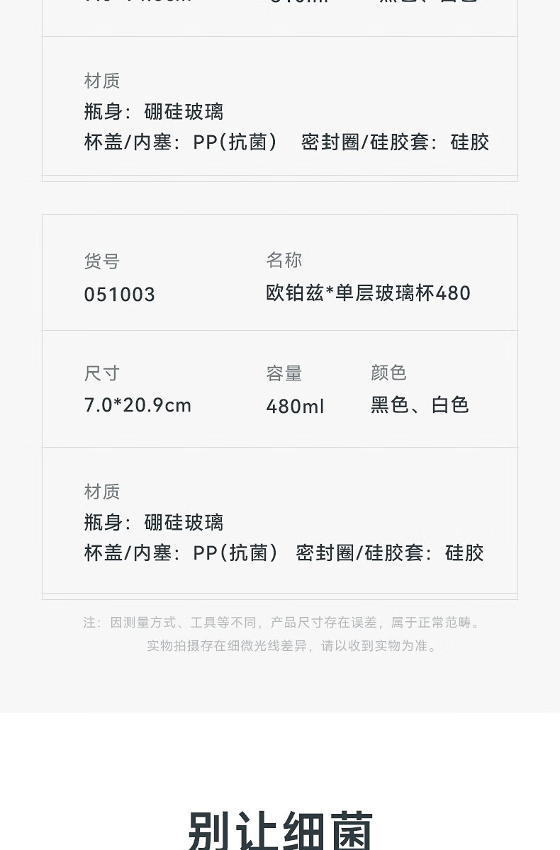 茶花(CHAHUA)欧铂兹*单层抗菌玻璃杯310ml水杯茶杯抗菌 480ml 白色
