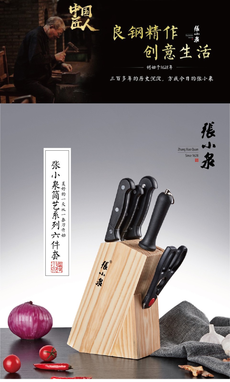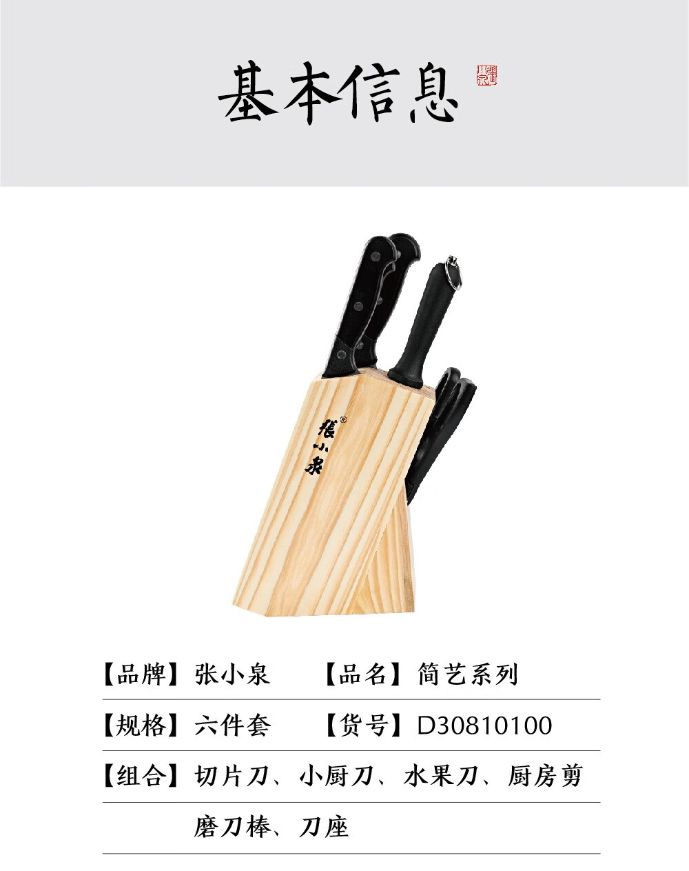 张小泉简艺系列套装刀具六件套不...