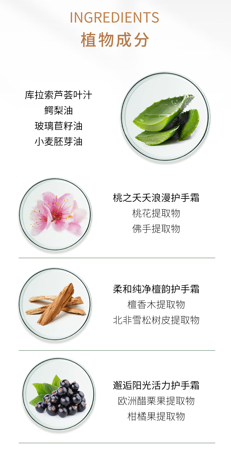天然之扉 香氛护手霜60ml 美国进口 植物萃取滋润保湿补水嫩肤修护手膜 桃之夭夭浪漫护手霜60ml