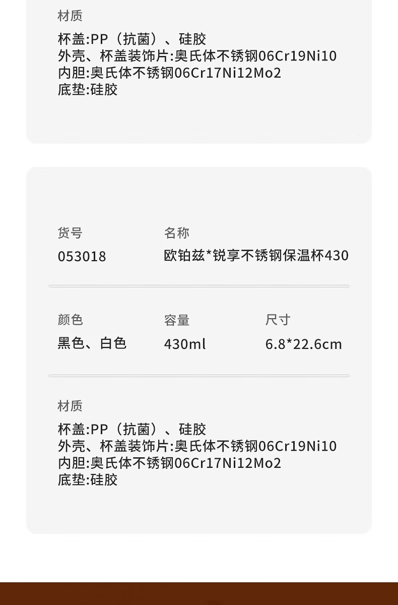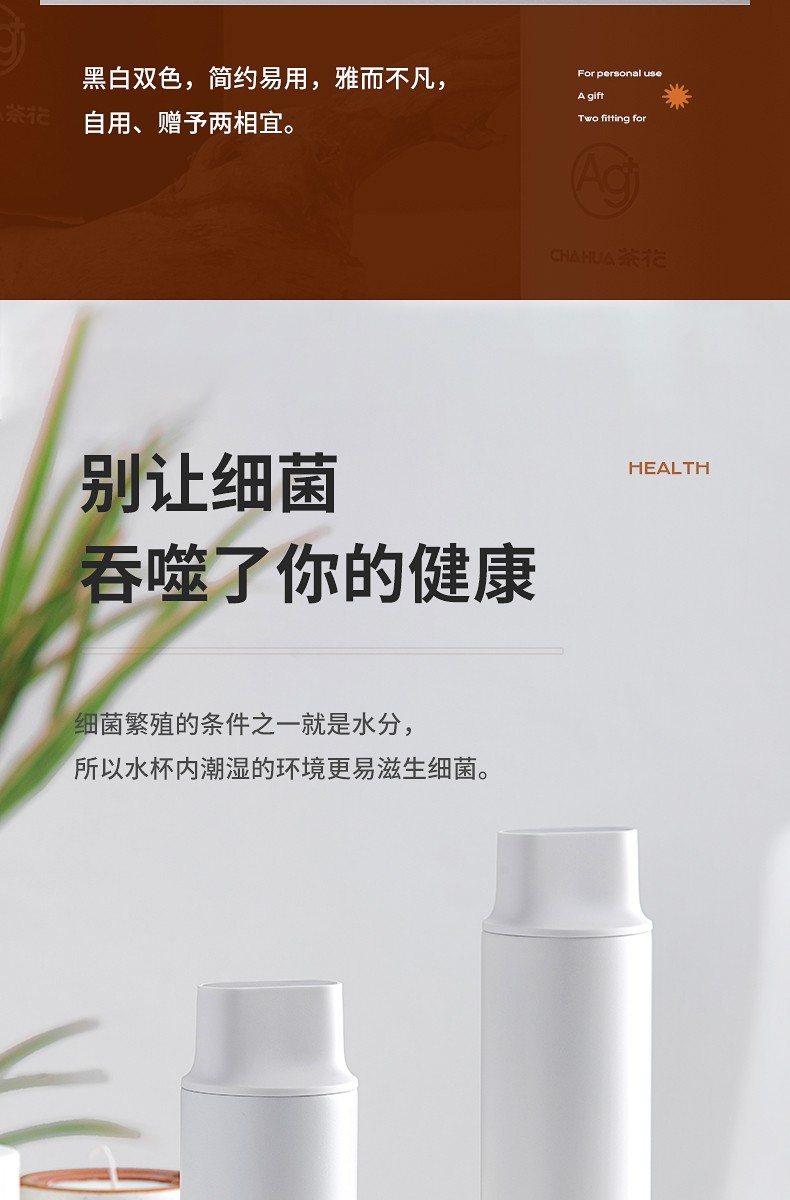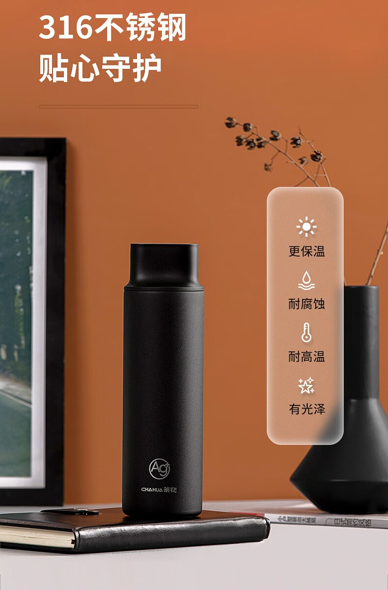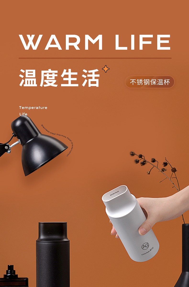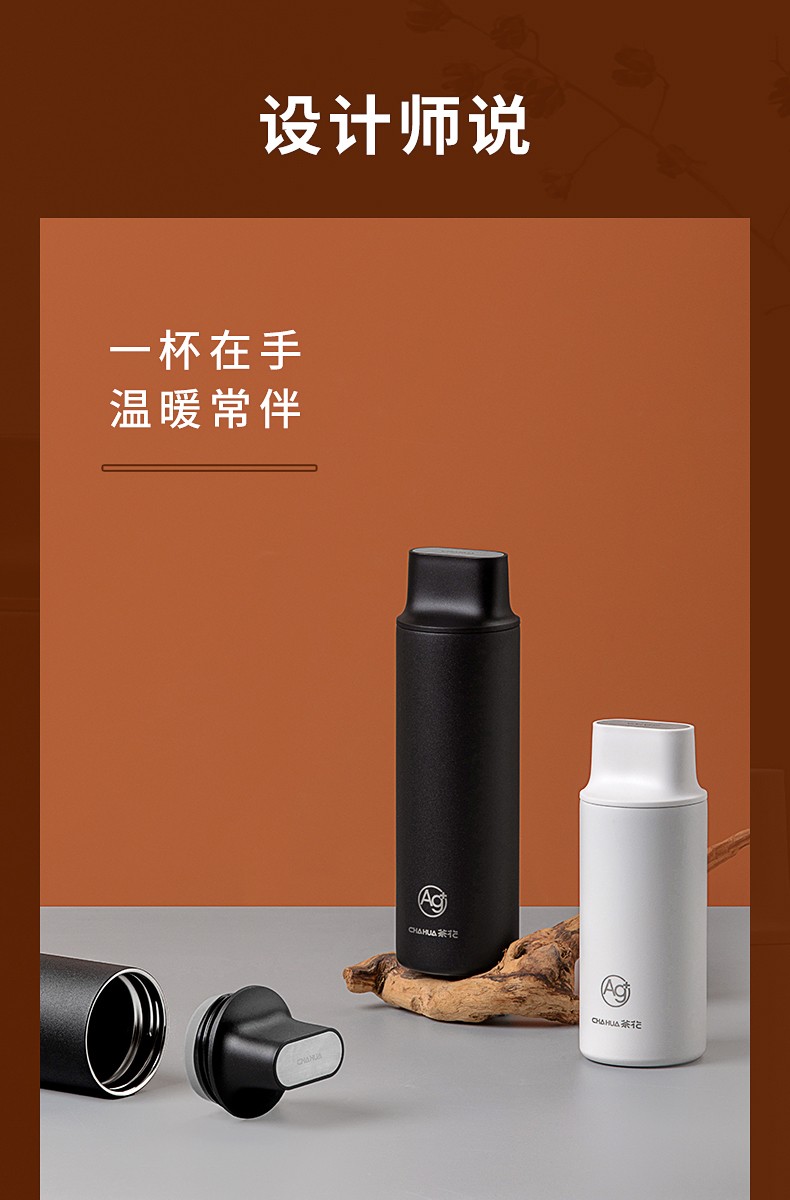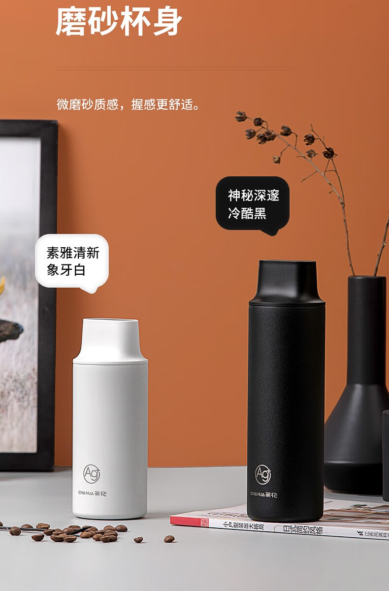 茶花不锈钢保温杯男女户外旅行水杯便携防滑学生茶杯时尚茶杯外带 430ml 白色