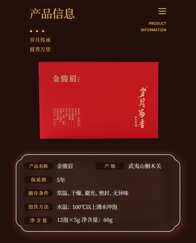 岁月留香正宗金骏眉特级红茶甜醇鲜润高山韵显礼盒装60g