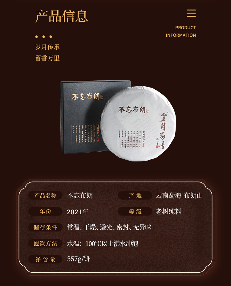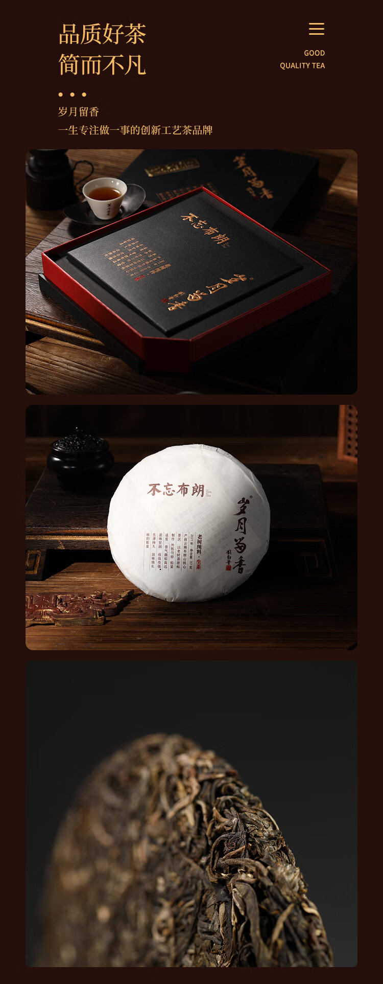 岁月留香云南不忘布朗老树纯料香气馥郁茶饼礼盒装357g