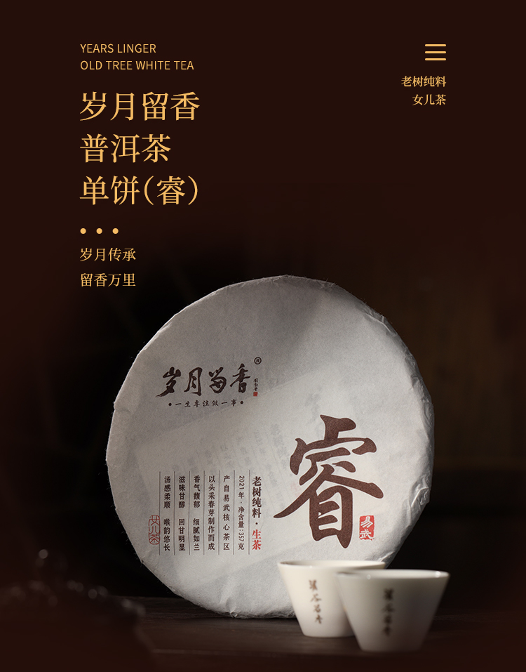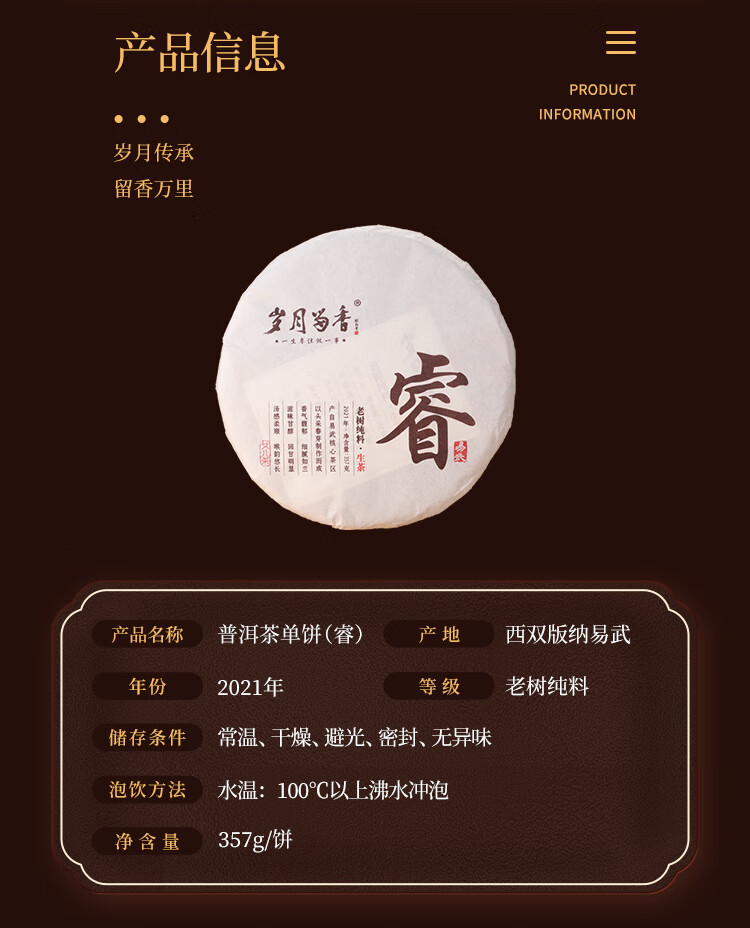 岁月留香睿易武百年老树纯料普洱饼357g礼盒装定制茶