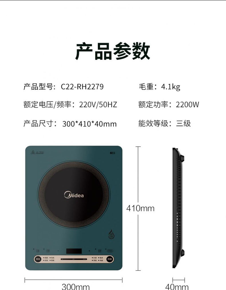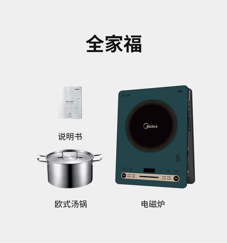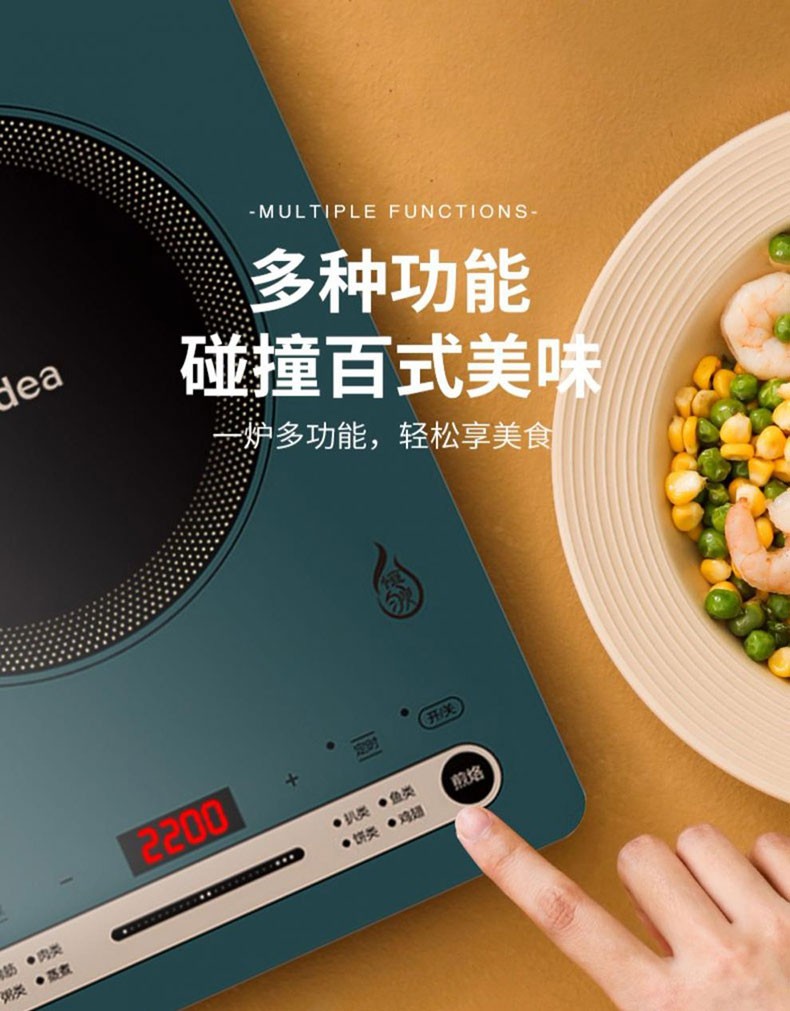 美的(Midea) 电磁炉家用 2200瓦恒匀火智能定时 爆炒火锅多功能电磁灶配汤锅 C22-RH2279