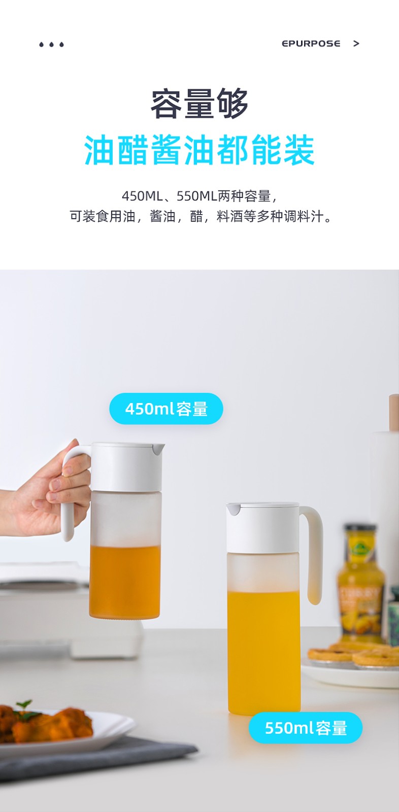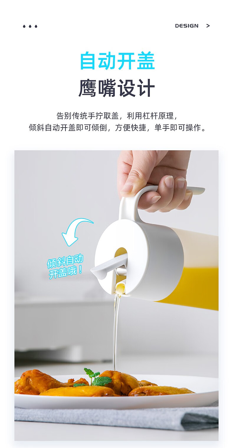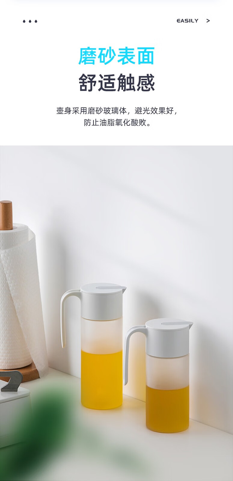 茶花银离子抗菌油壶厨房大油罐壶防漏玻璃油壶油罐酱油瓶醋瓶 欧铂兹*自开盖油壶450-磨砂款