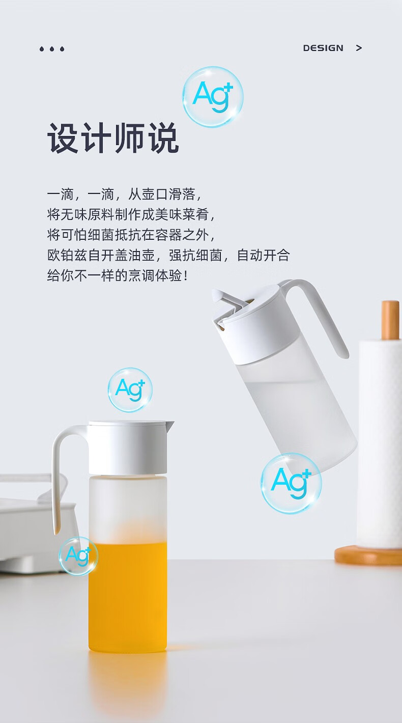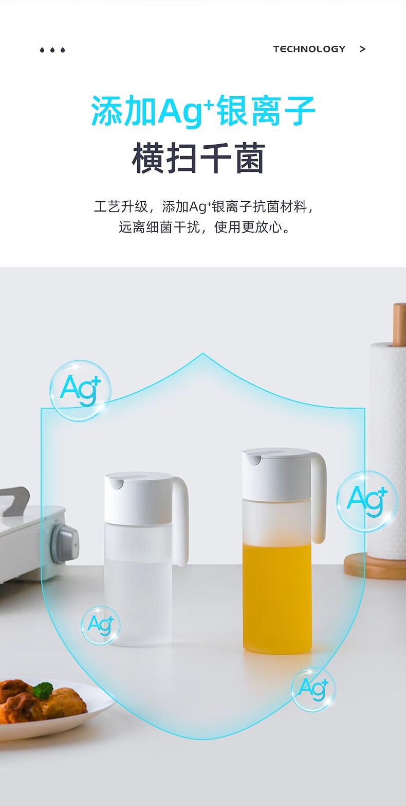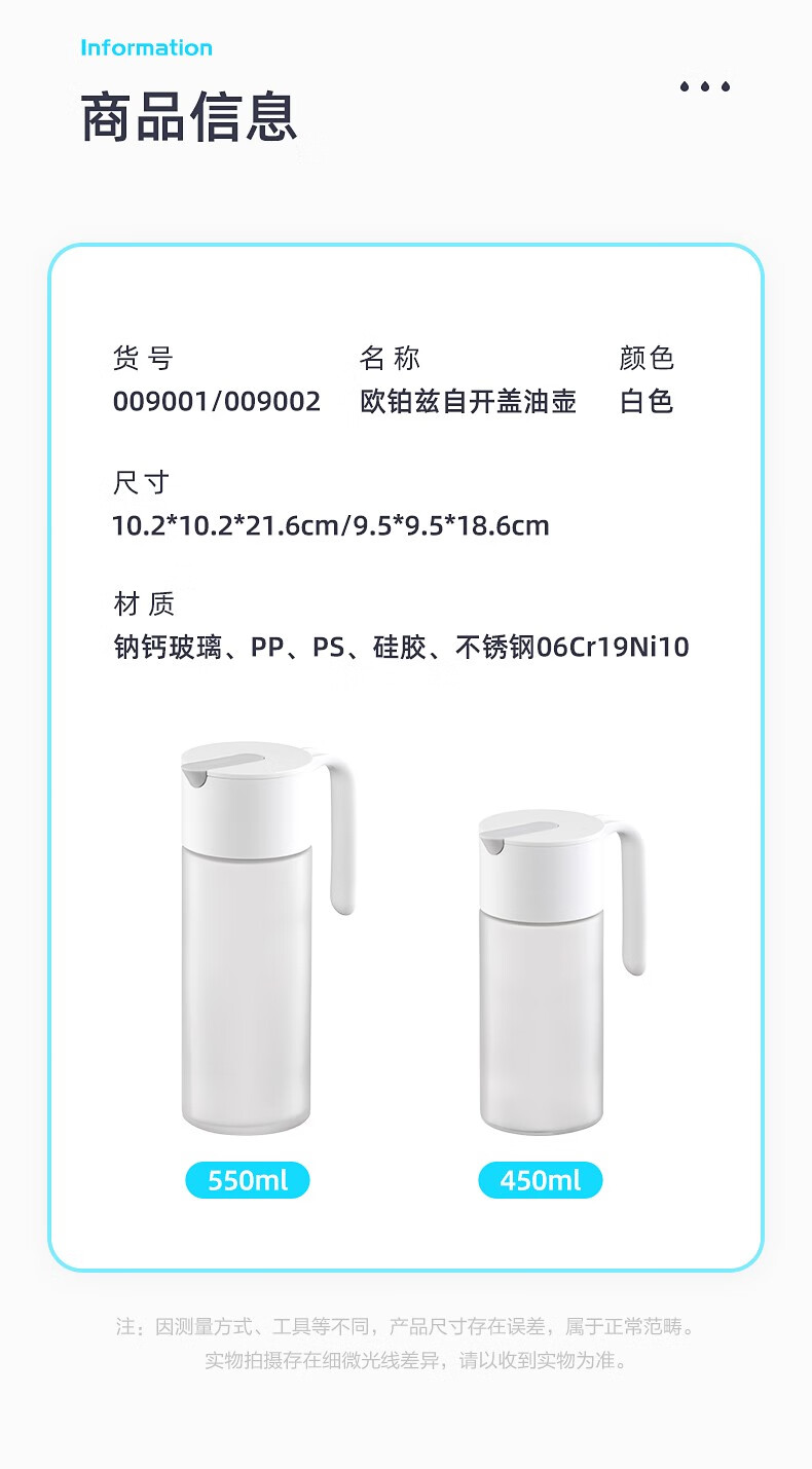 茶花银离子抗菌油壶厨房大油罐壶防漏玻璃油壶油罐酱油瓶醋瓶 欧铂兹*自开盖油壶450-磨砂款