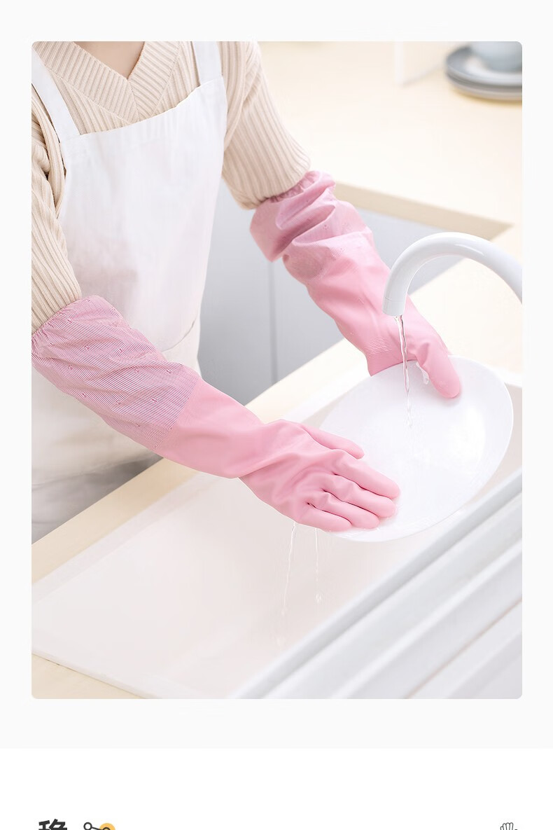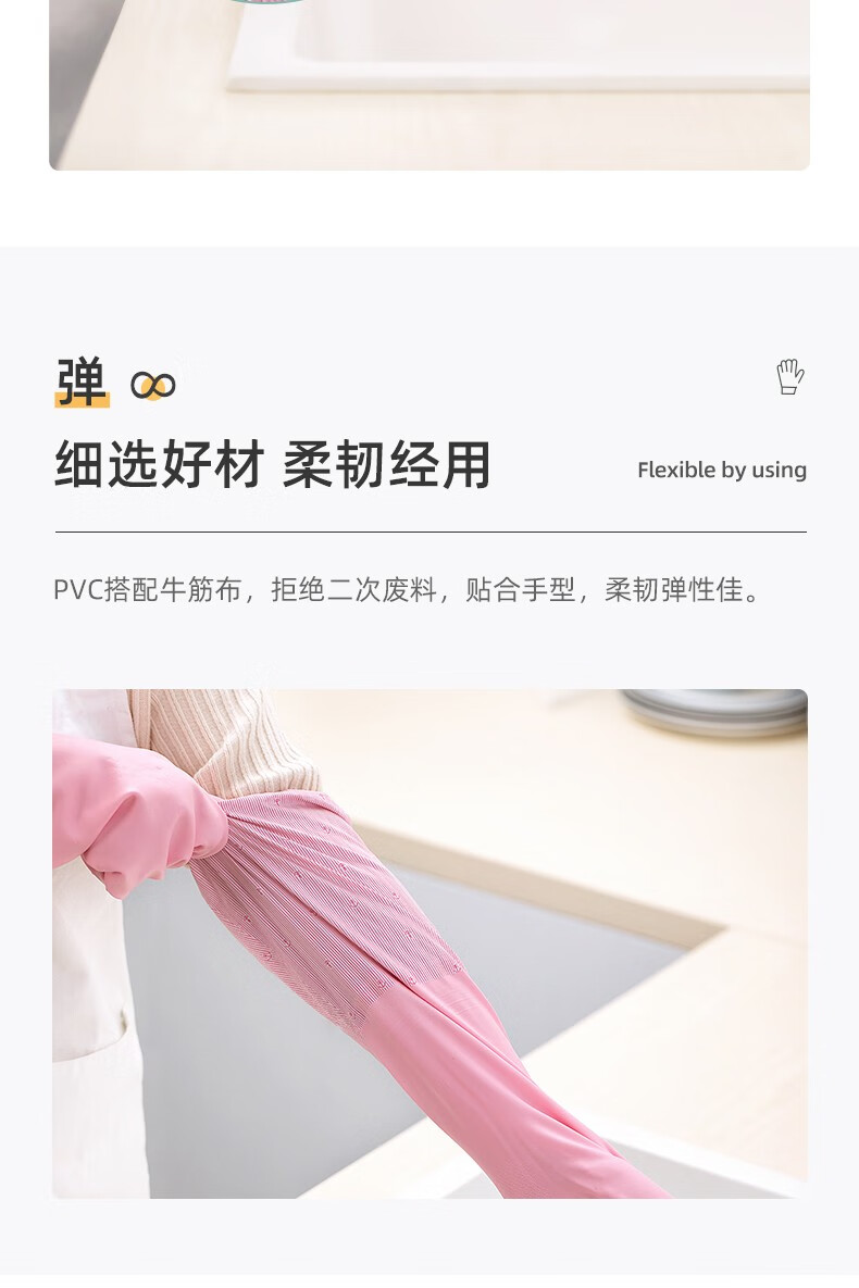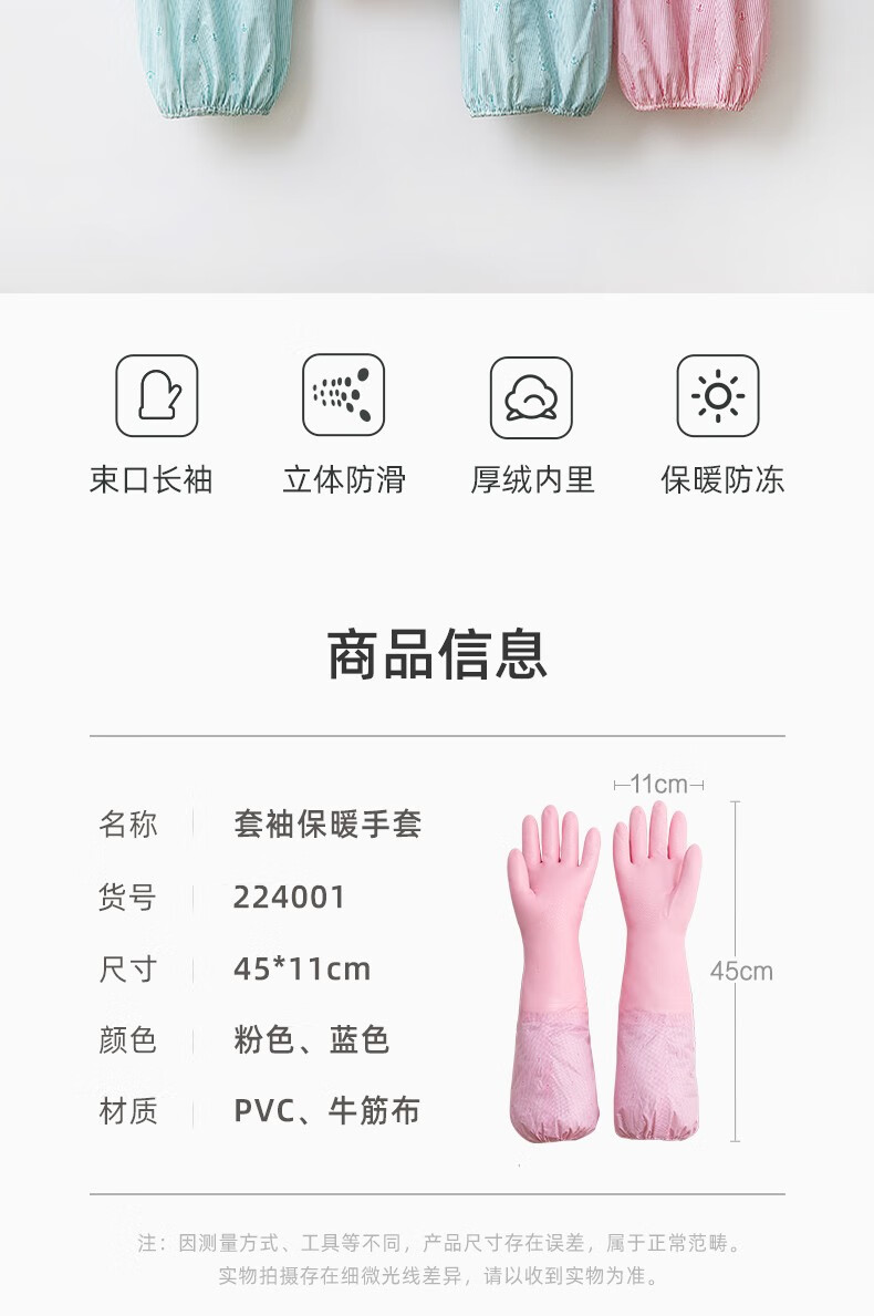 茶花加绒家务手套厨房洗碗刷碗橡胶套袖pvc耐磨洗衣服耐用冬季 红色-袖套款加绒 两双装