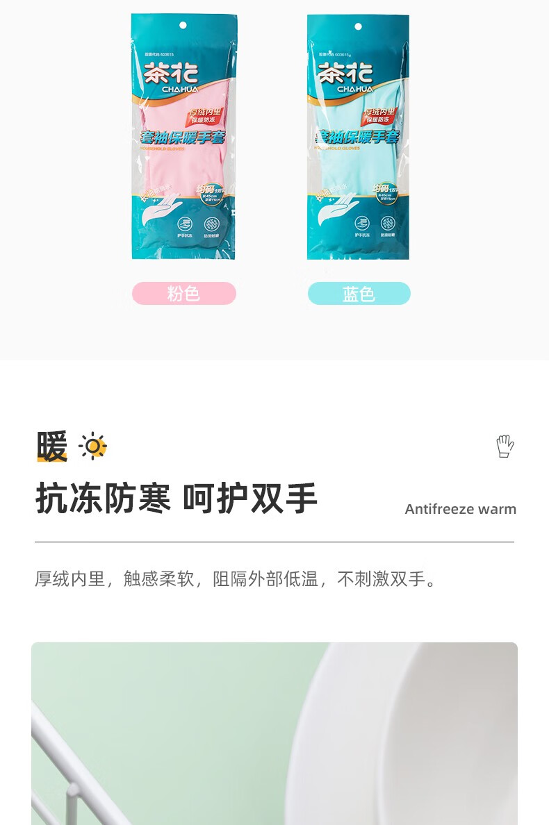 茶花加绒家务手套厨房洗碗刷碗橡...