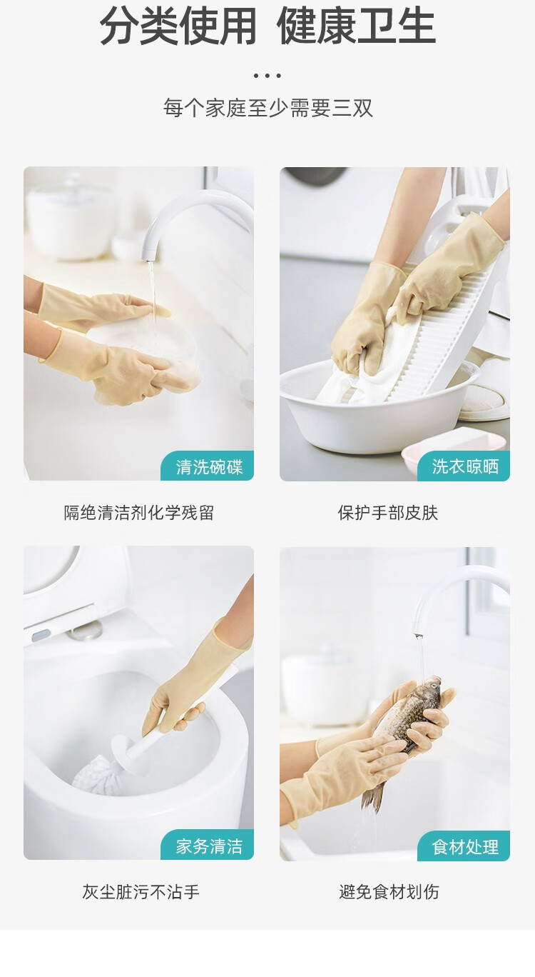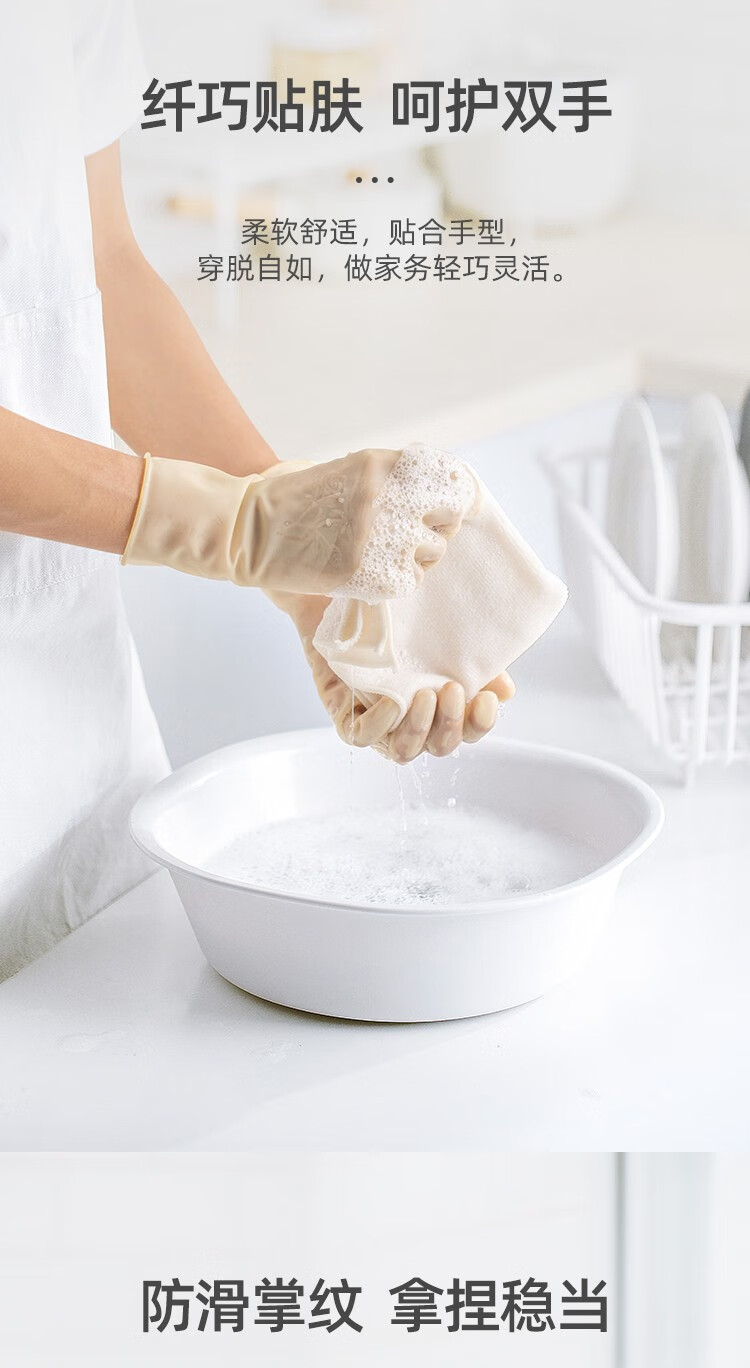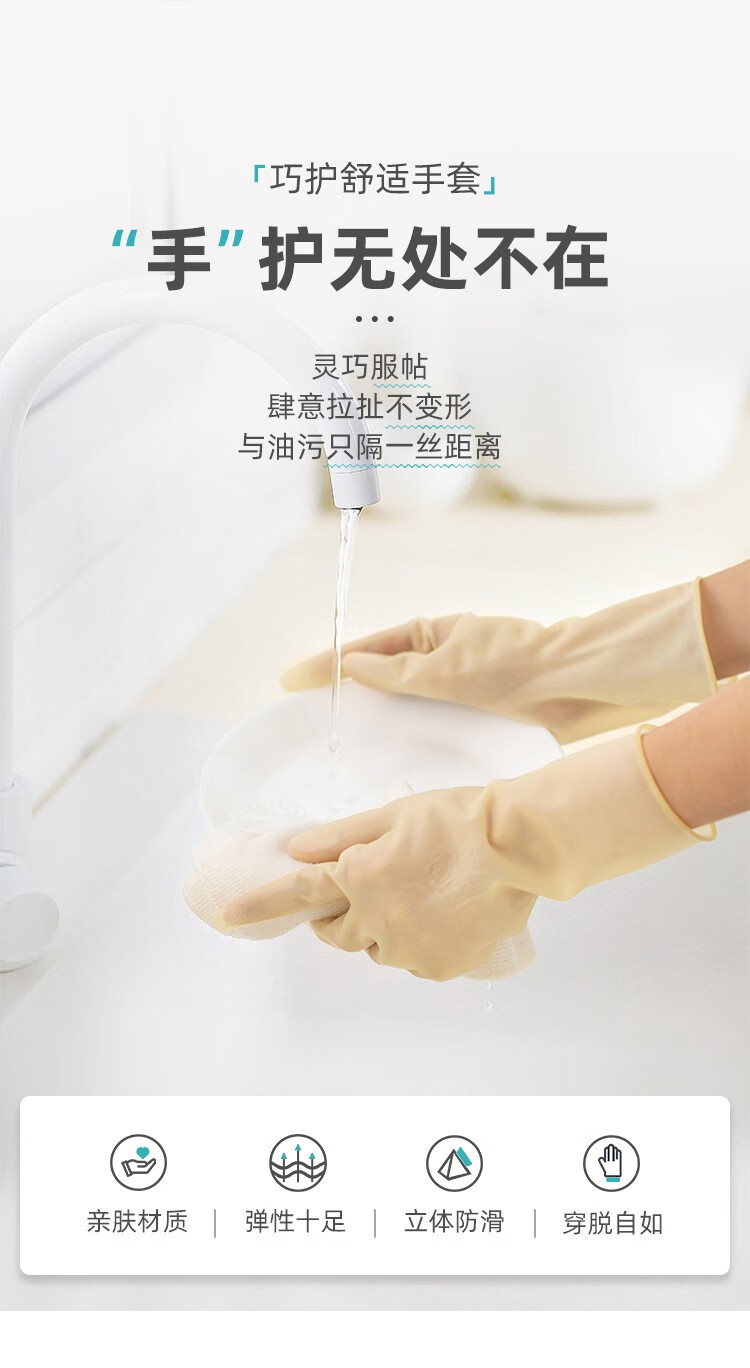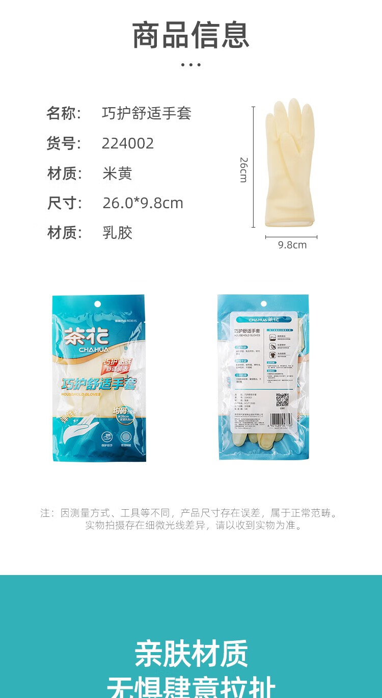 茶花乳胶家务手套厨房洗碗刷碗耐用女夏季洗衣服防水薄款干活神器 巧护舒适手套(均码) 两双装