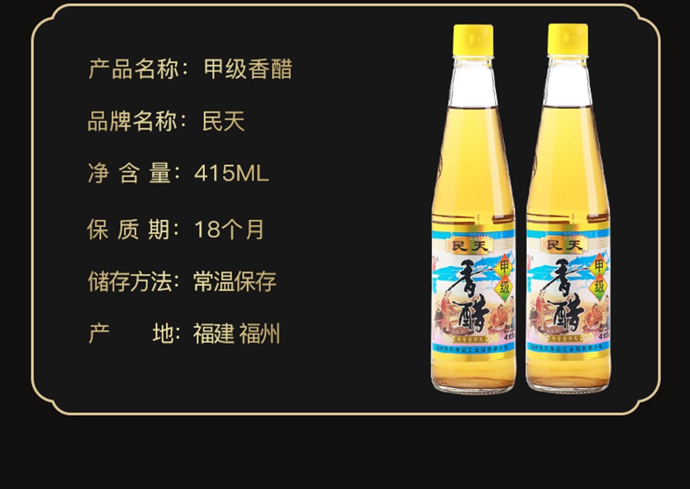 中华老字号_民天甲级香醋415ml*2瓶装福建调味品老陈醋黄醋饺子醋 民天香醋415ml*2瓶
