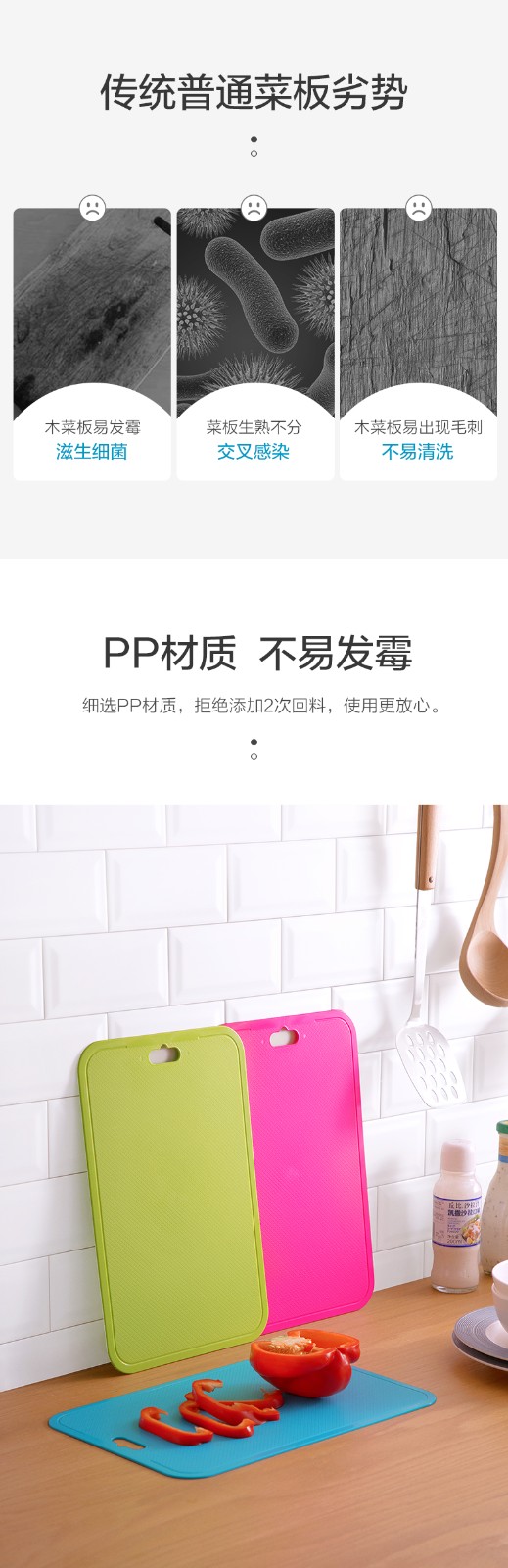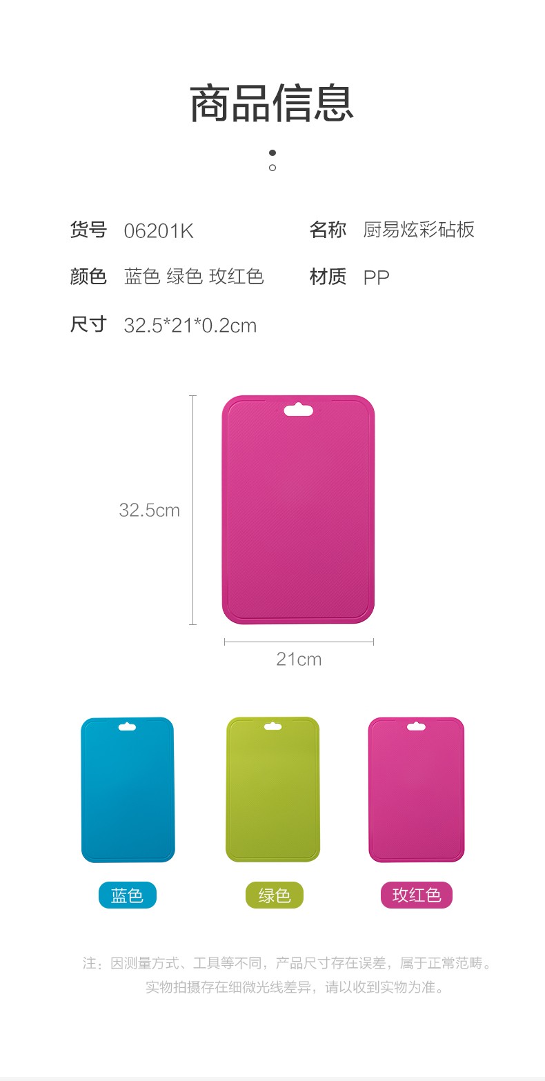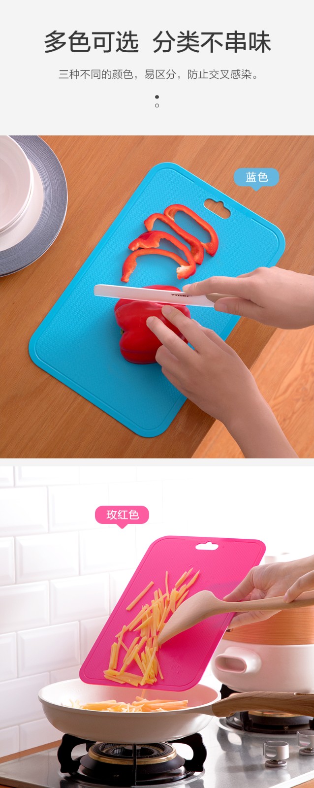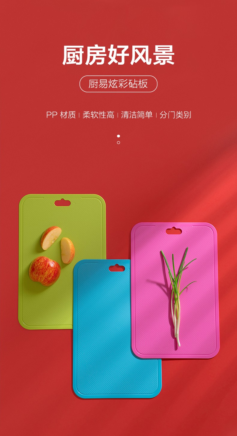 茶花(CHAHUA) 茶花厨易炫彩砧板方形塑料菜板加厚案板塑料制品06201K (颜色随机)3个装
