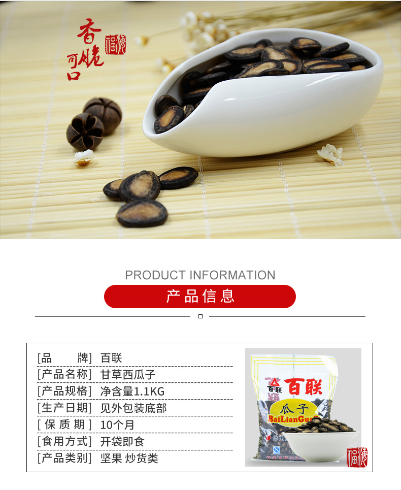百联瓜子新货到福建特产瓜子西瓜子甘草瓜子坚果炒货零食食品1100g 西瓜子1100g【2.2斤】