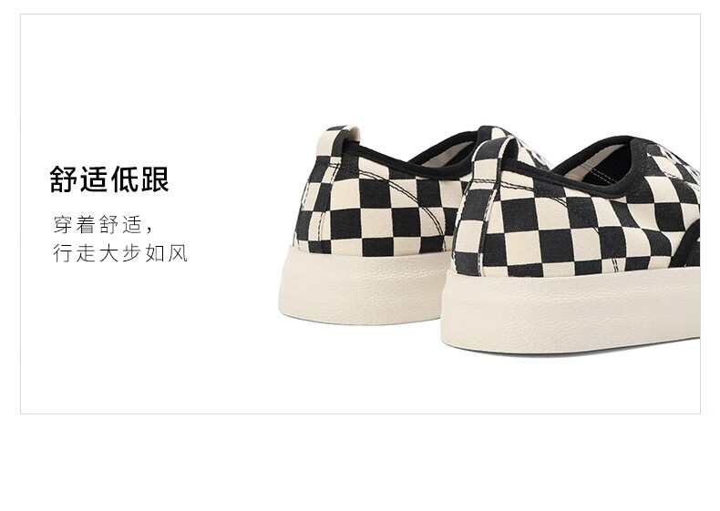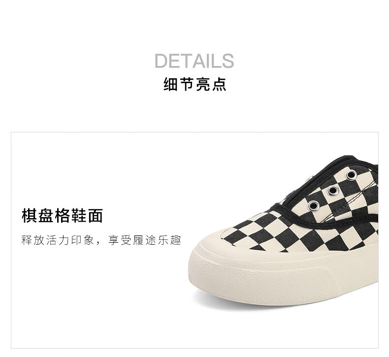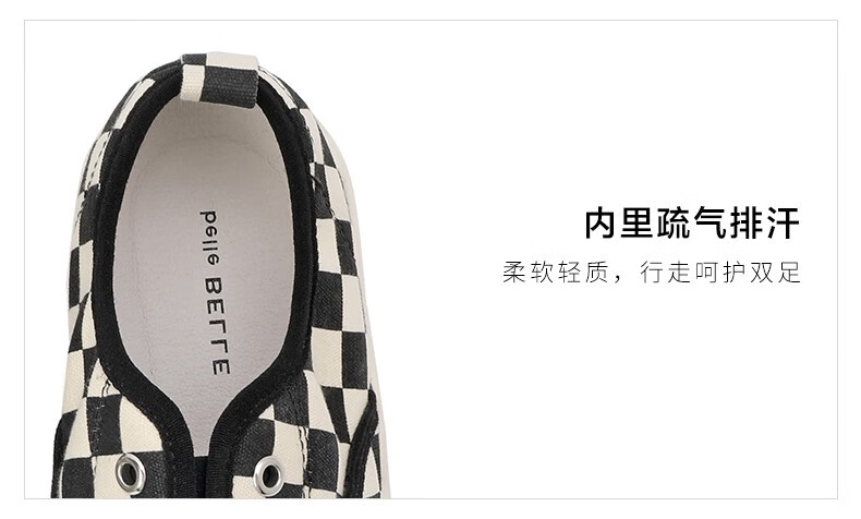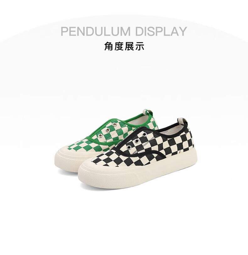 百丽棋盘格童鞋女商场同款丑萌撞色帆布鞋休闲鞋D6222A82 黑色 32