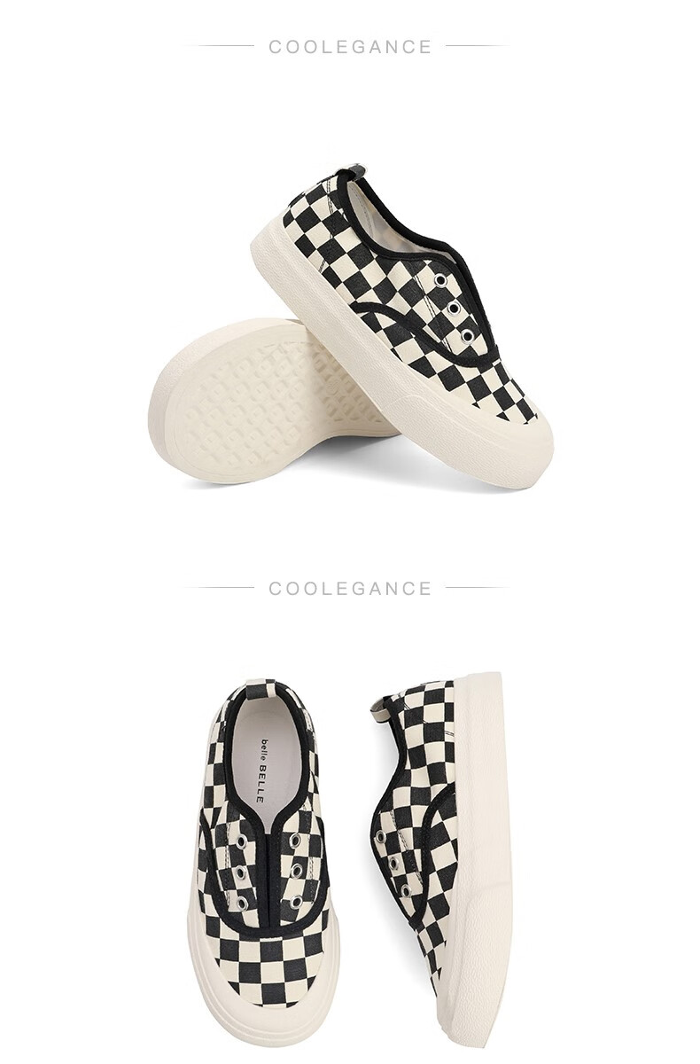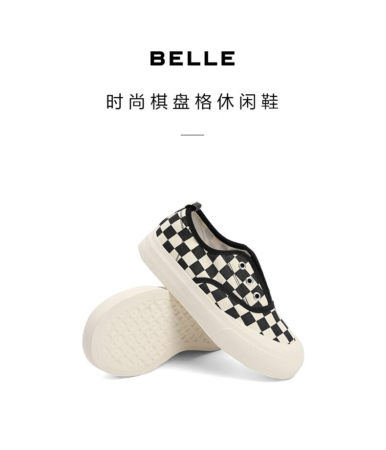 百丽棋盘格童鞋女商场同款丑萌撞...