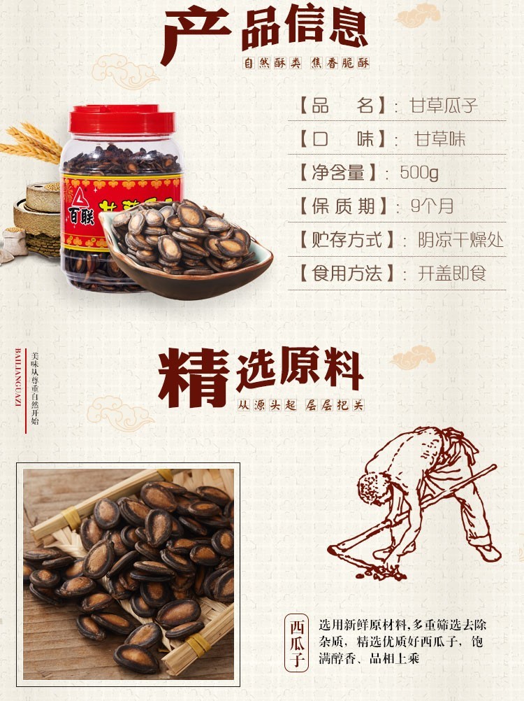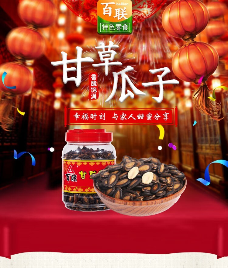 百联 瓜子福建特产甘草瓜子西瓜子大片桶装年货坚果炒货休闲零食特产500g