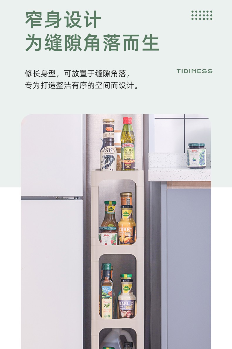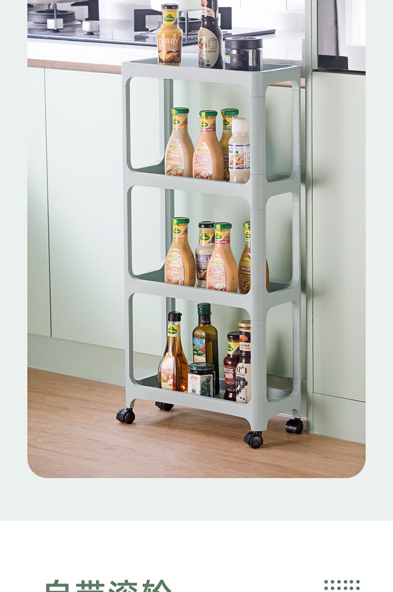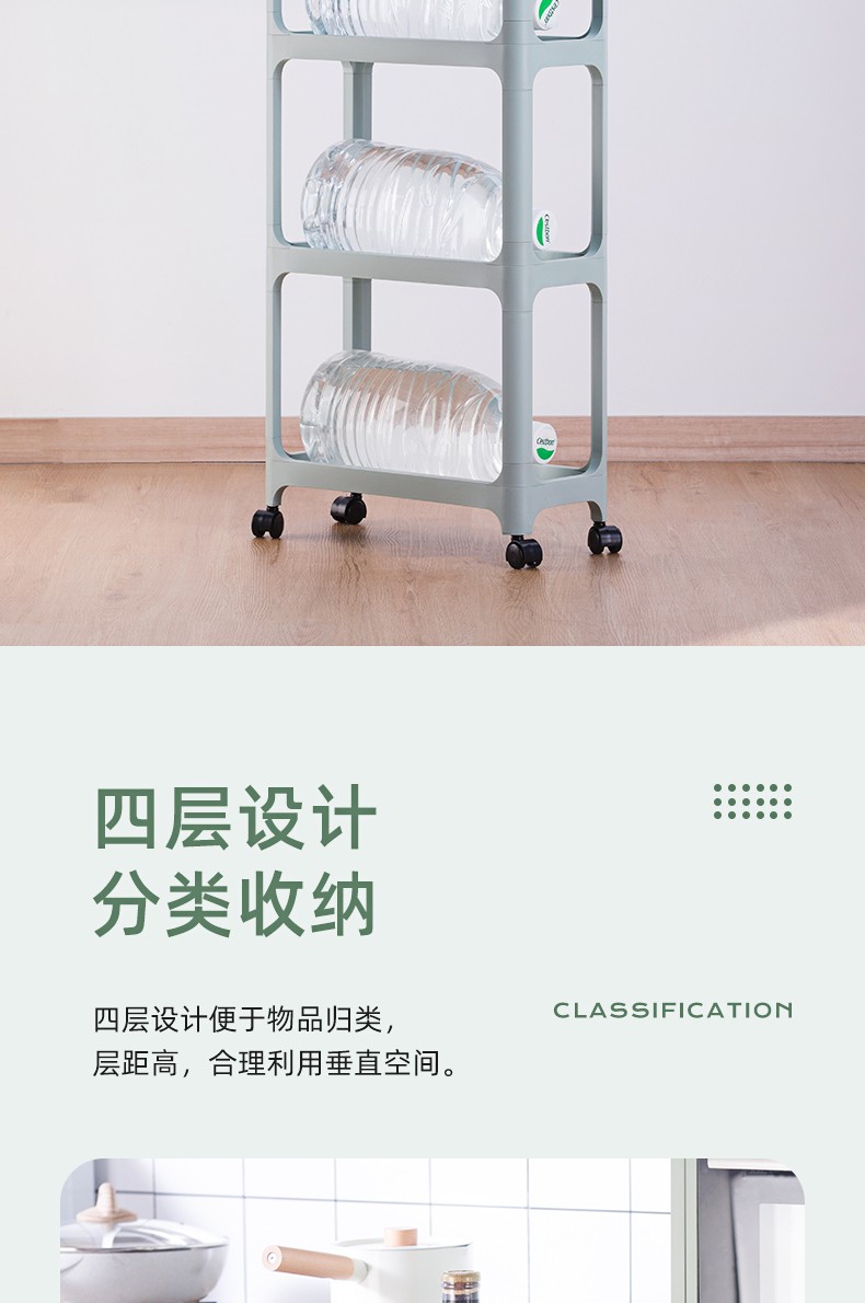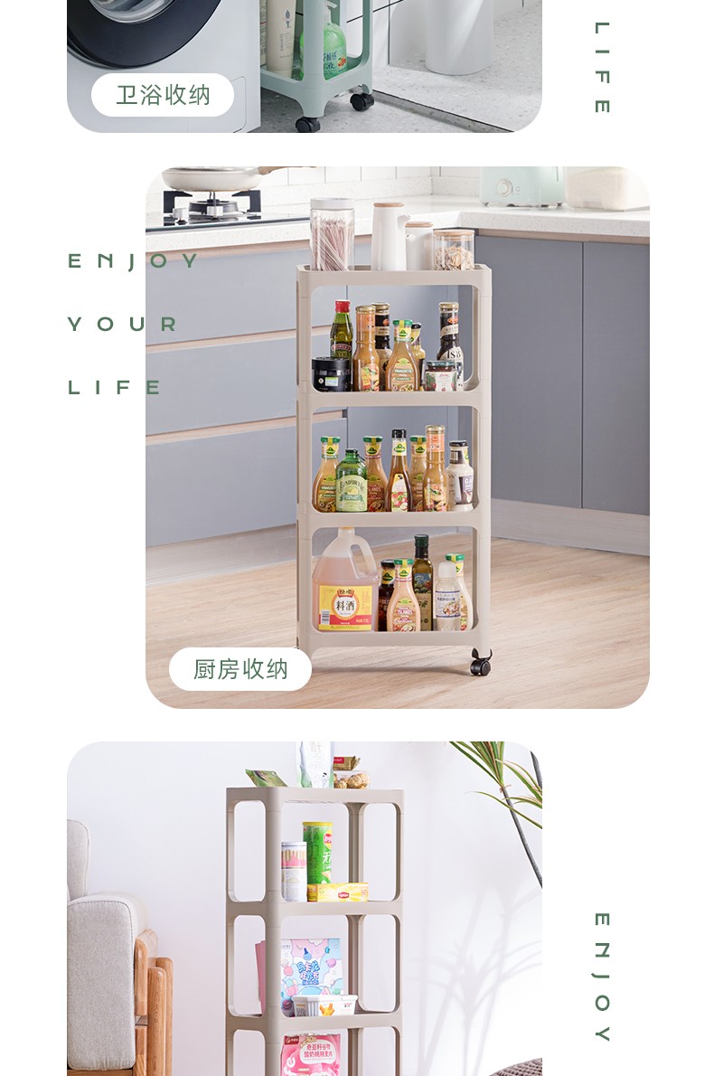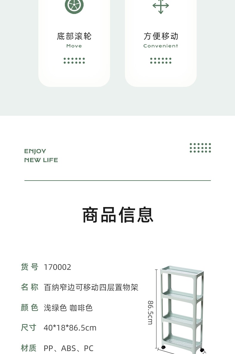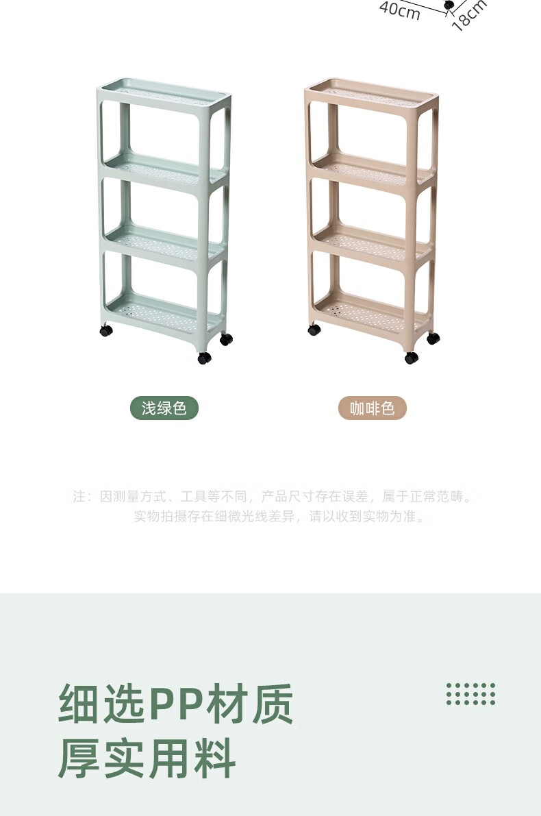 茶花百纳窄边可移动四层置物架客厅阳台厨房置物架 百纳可移动四层置物架咖色(40*18*86.5)