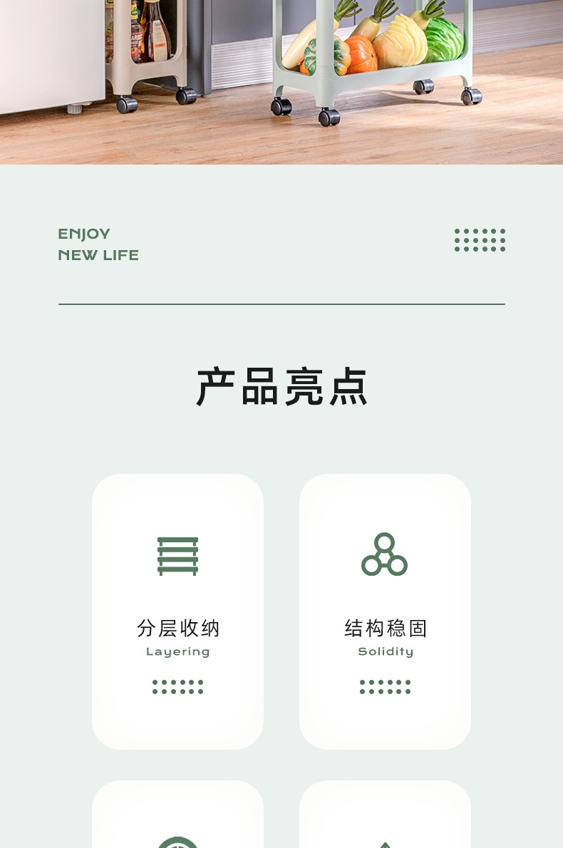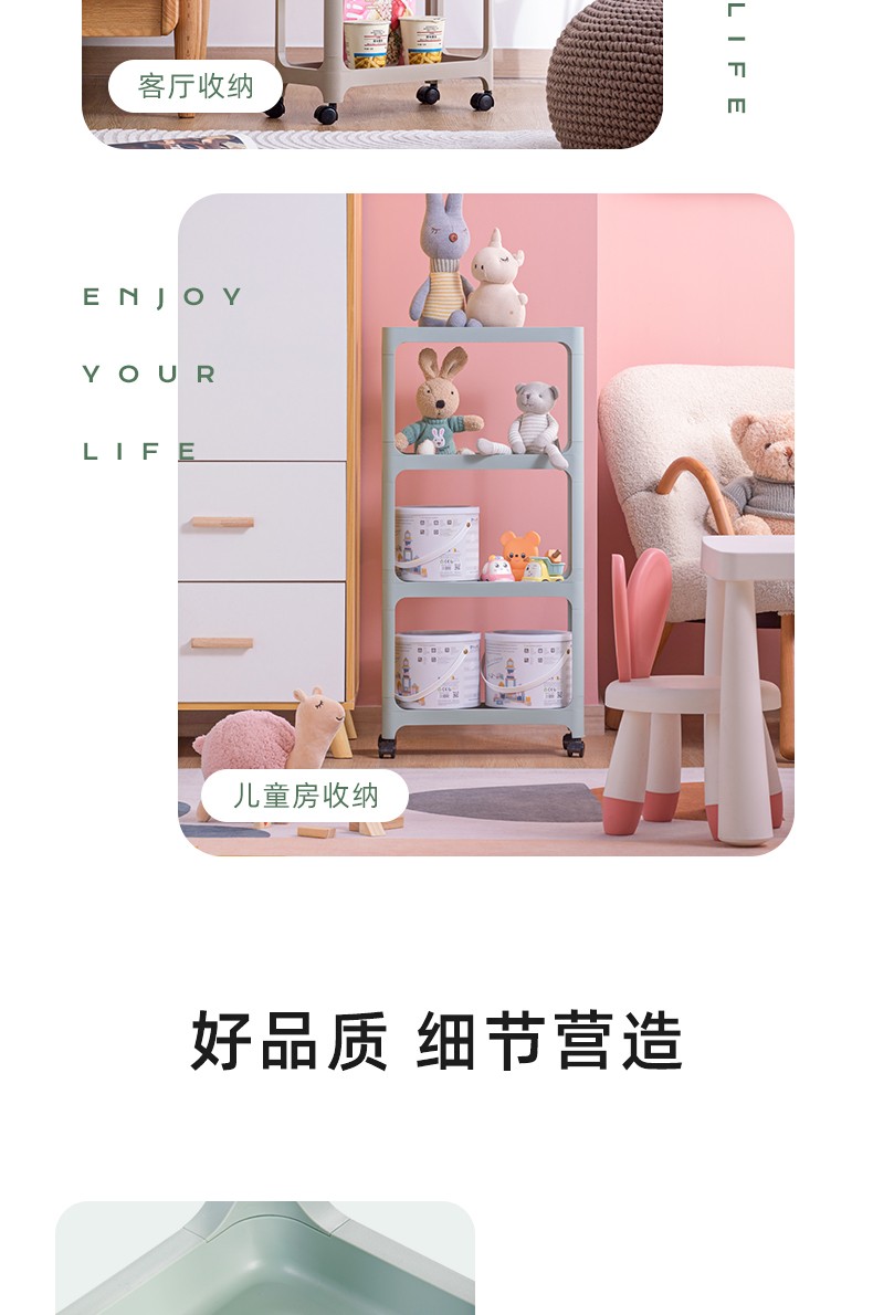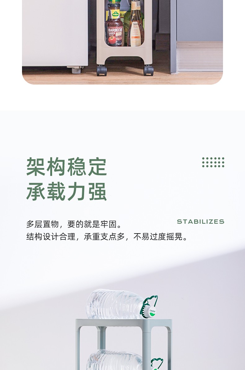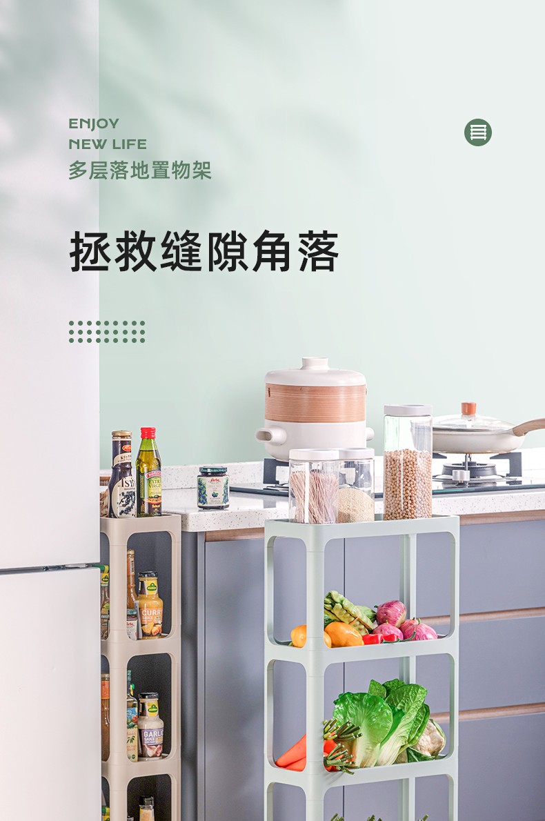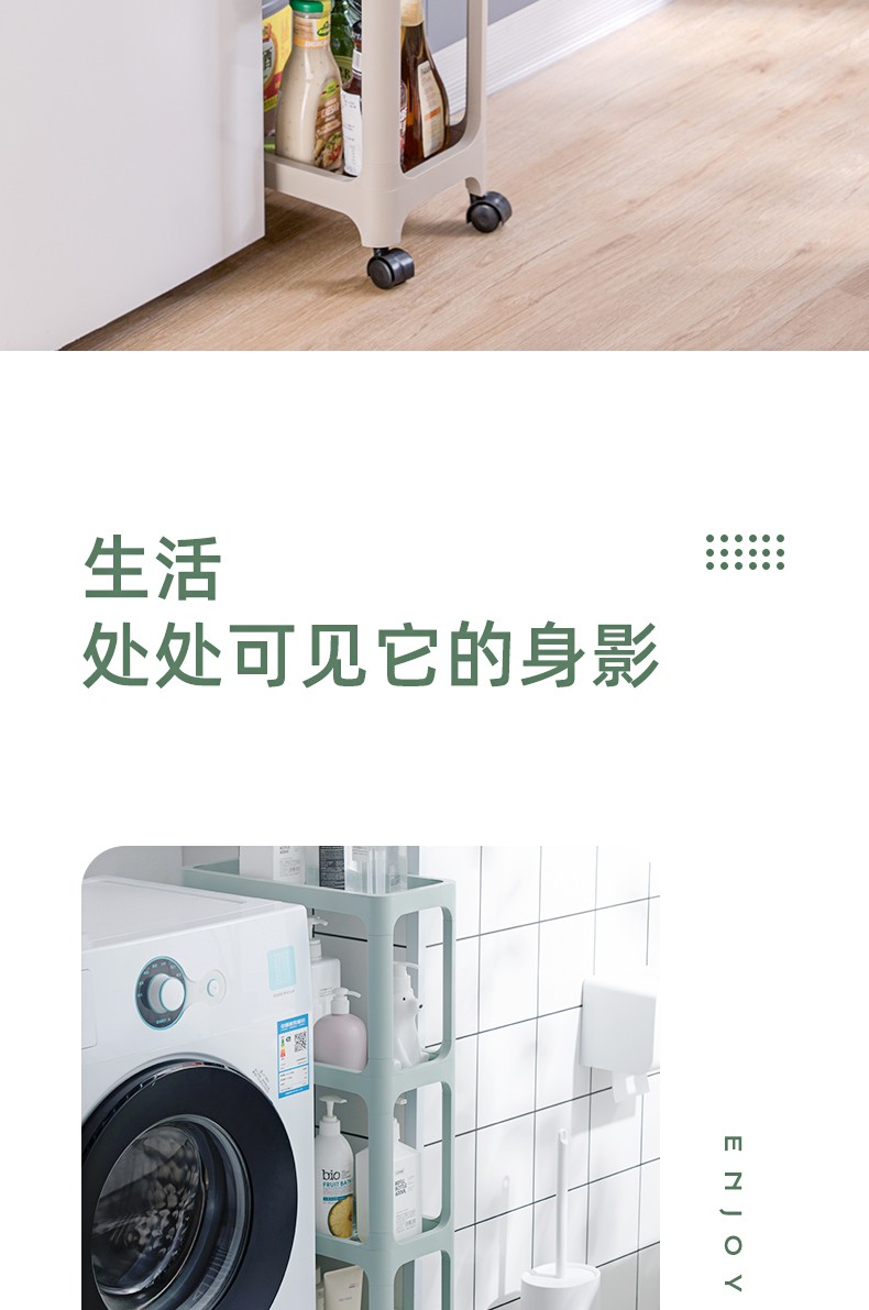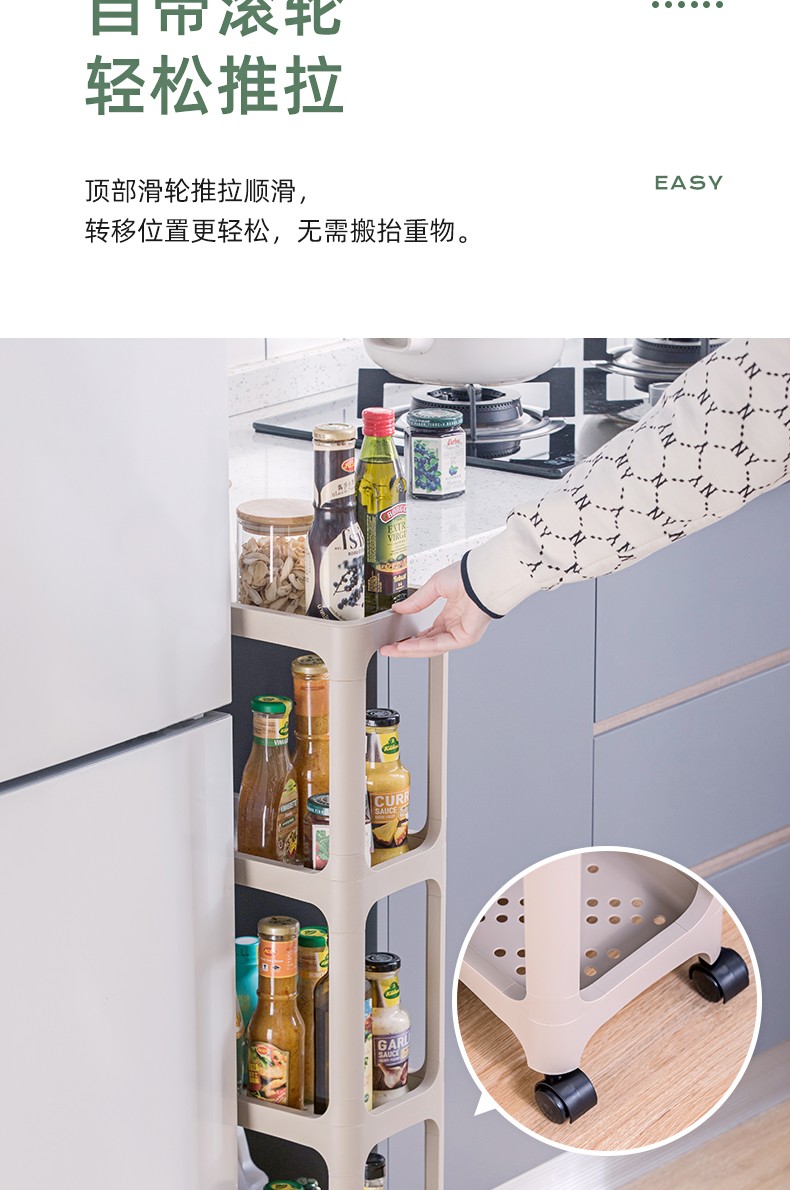 茶花百纳窄边可移动四层置物架客厅阳台厨房置物架 百纳可移动四层置物架咖色(40*18*86.5)
