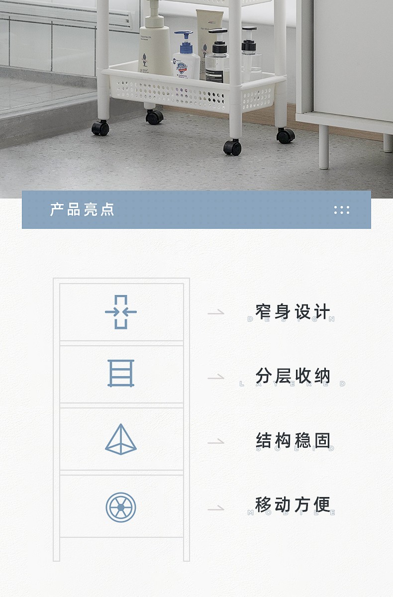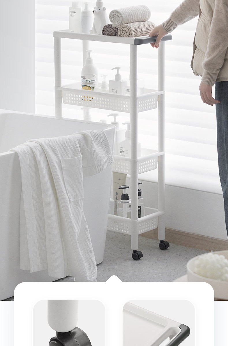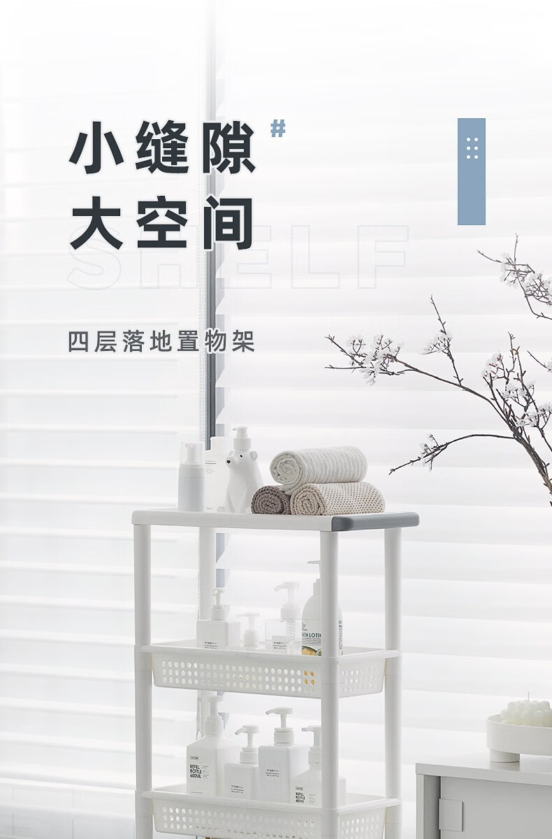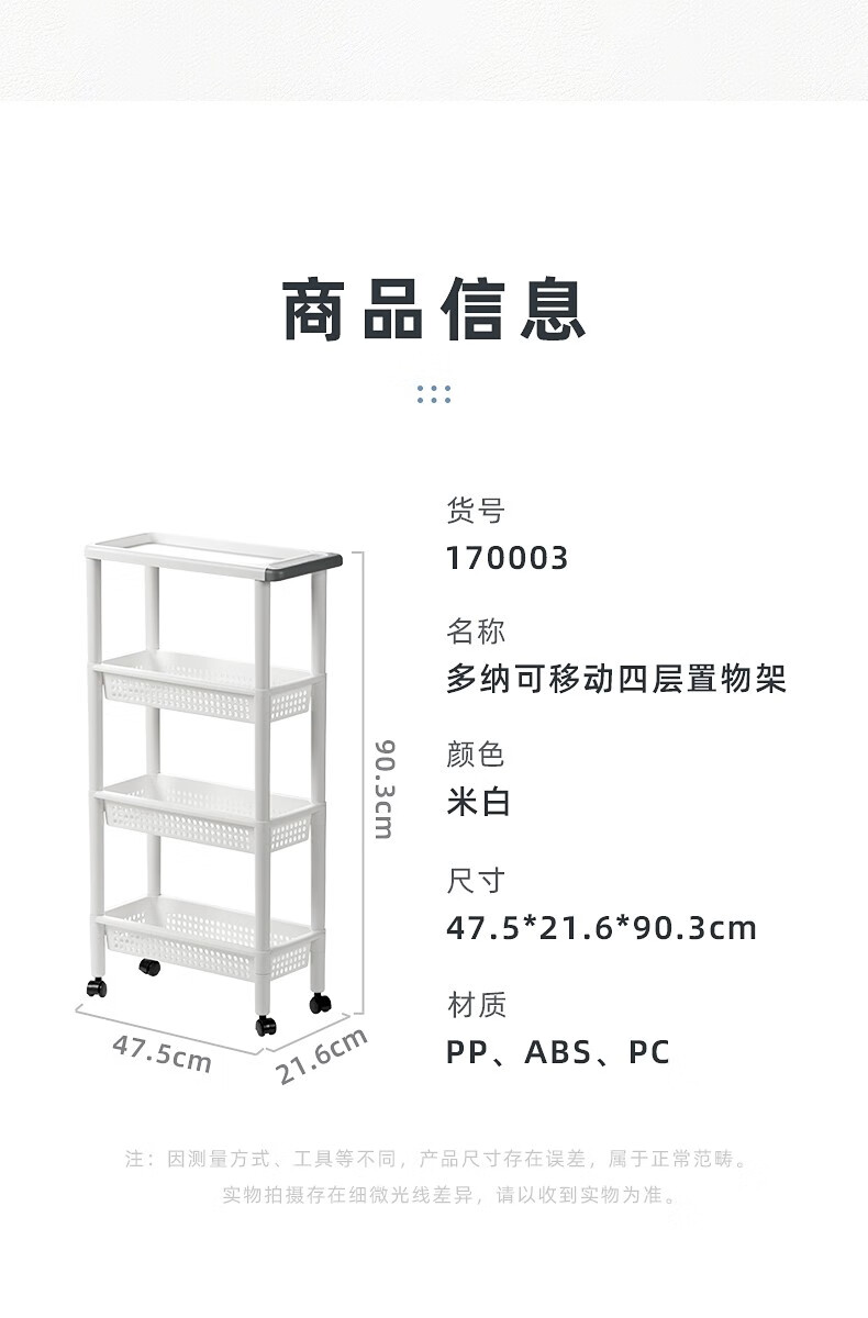 茶花多纳可移动四层置物架客厅阳台镂空厨房置物架 多纳可移动四层置物架(米白色)