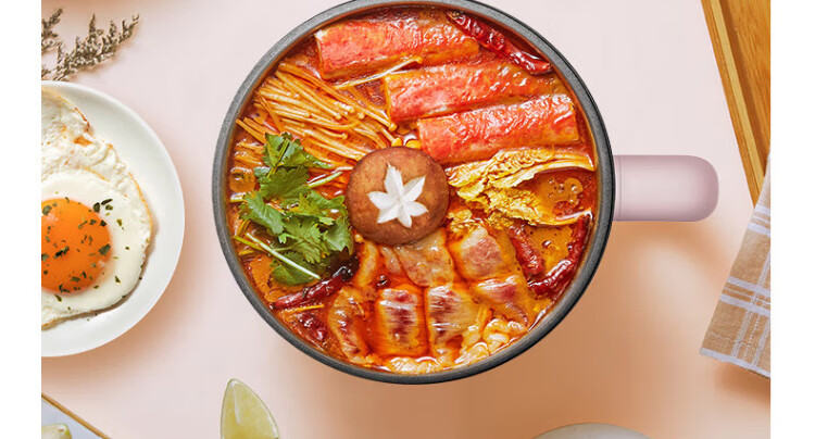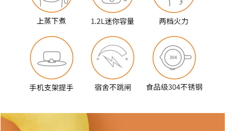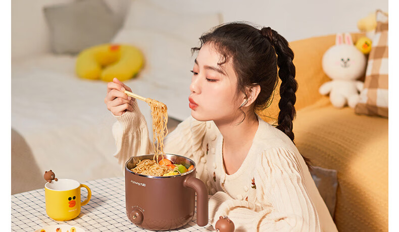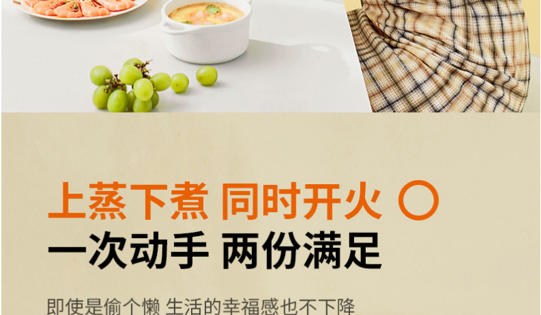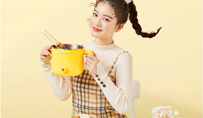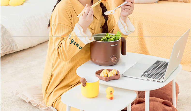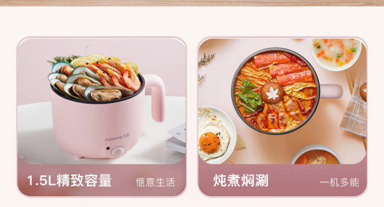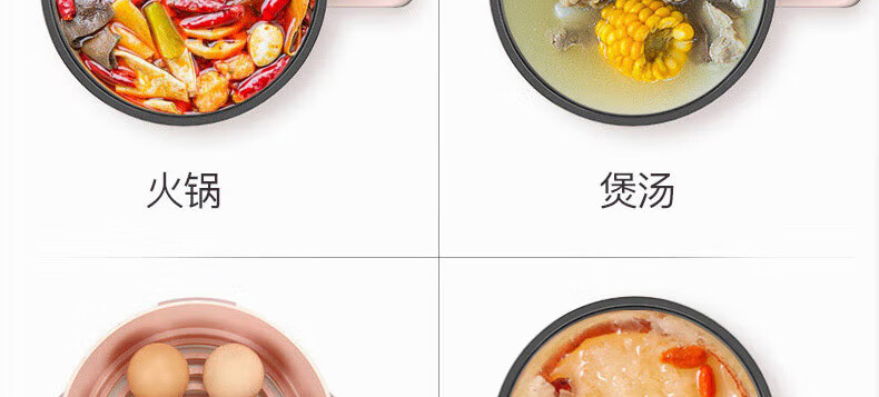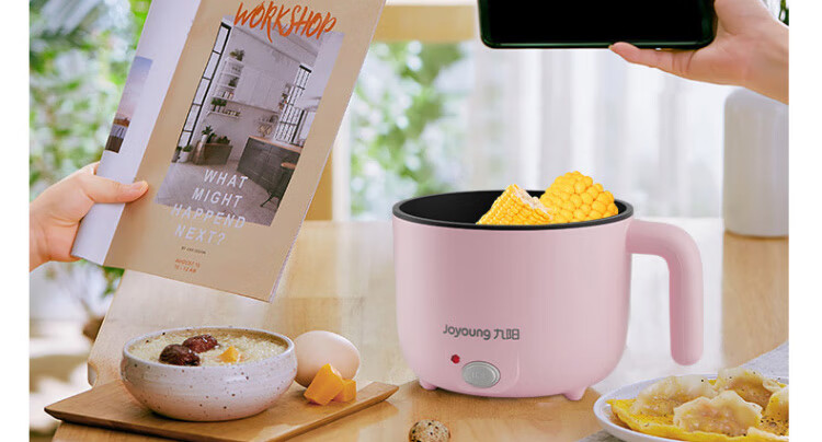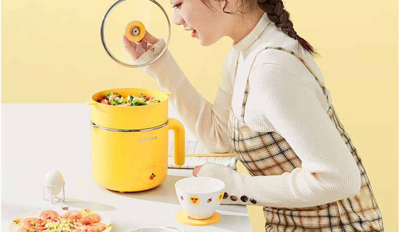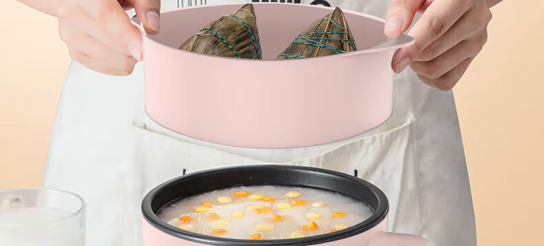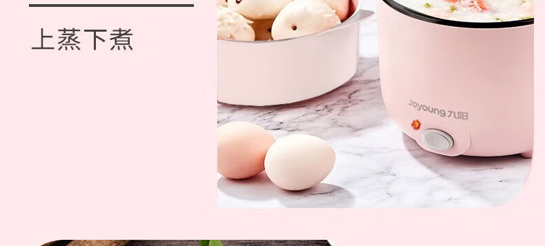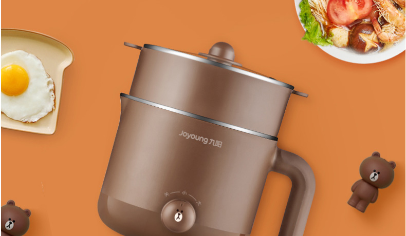 九阳(Joyoung)电火锅多功能电煮锅带蒸笼电热锅学生宿舍迷你容量电蒸锅 K12-D603(棕)/1.2L/两层
