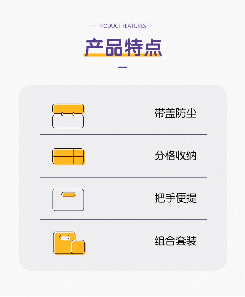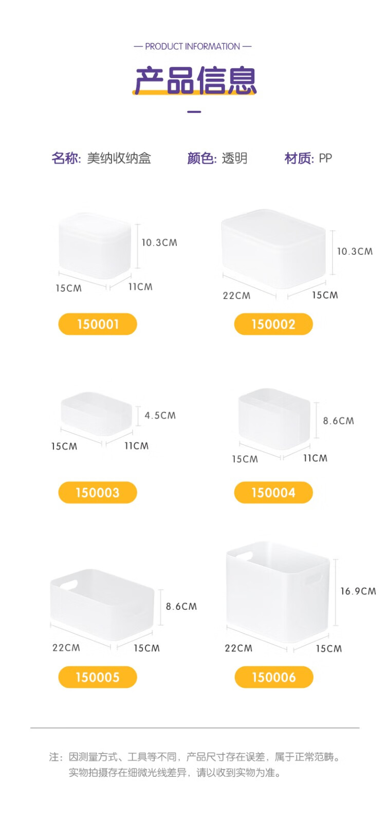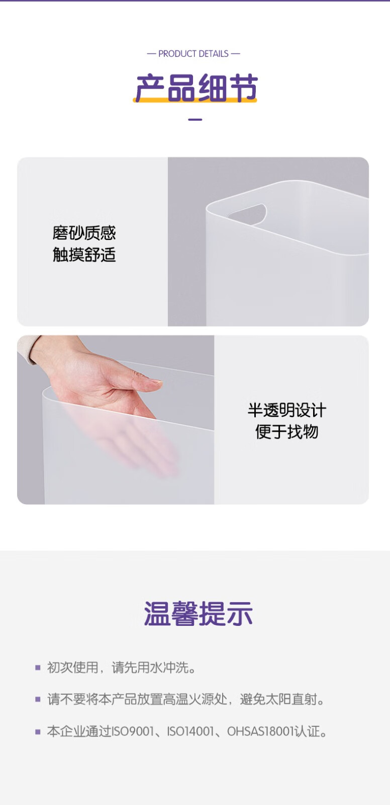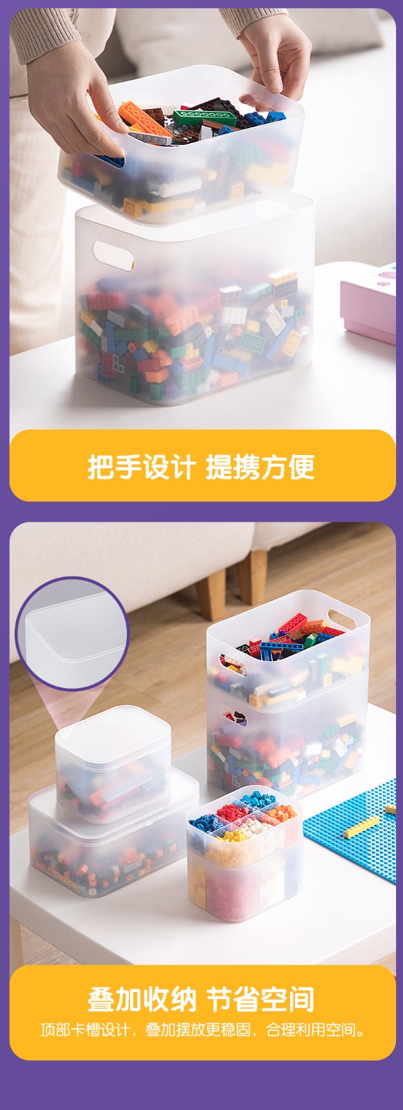 茶花(CHAHUA)茶花收纳盒桌面小盒子收纳格半透明磨砂 美纳带把手收纳盒150005
