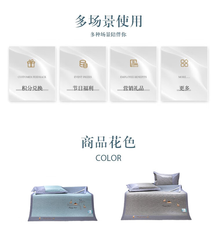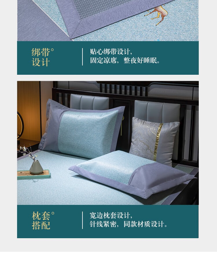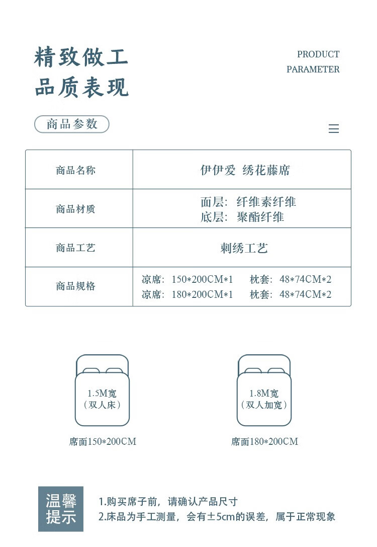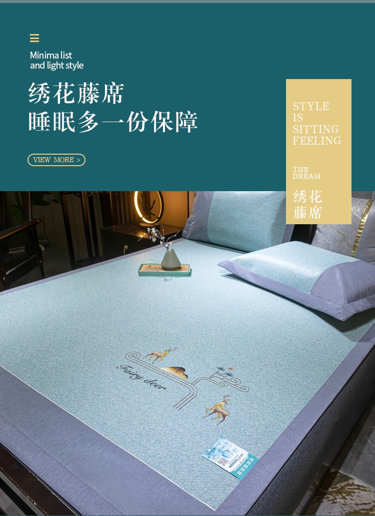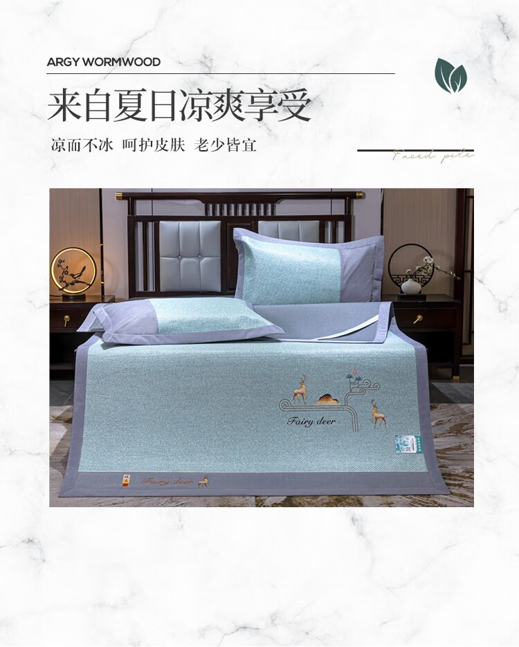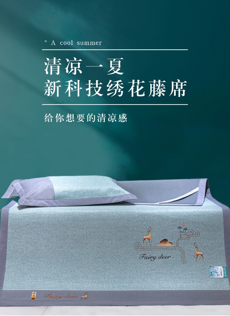 伊伊爱 艾草玻尼藤席三件套 一鹿有你-灰 150*200cm/XZ0AN02200005