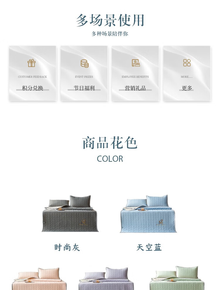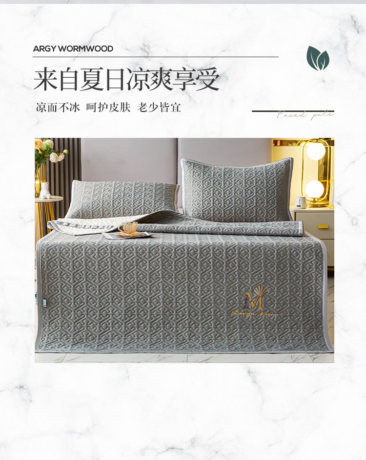 伊伊爱 纯色字母绣乳胶凉席三件套 时尚灰 180*200cm/XZ0AN02200024