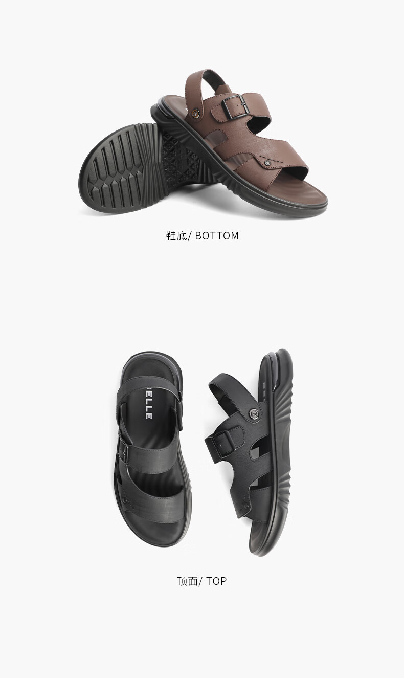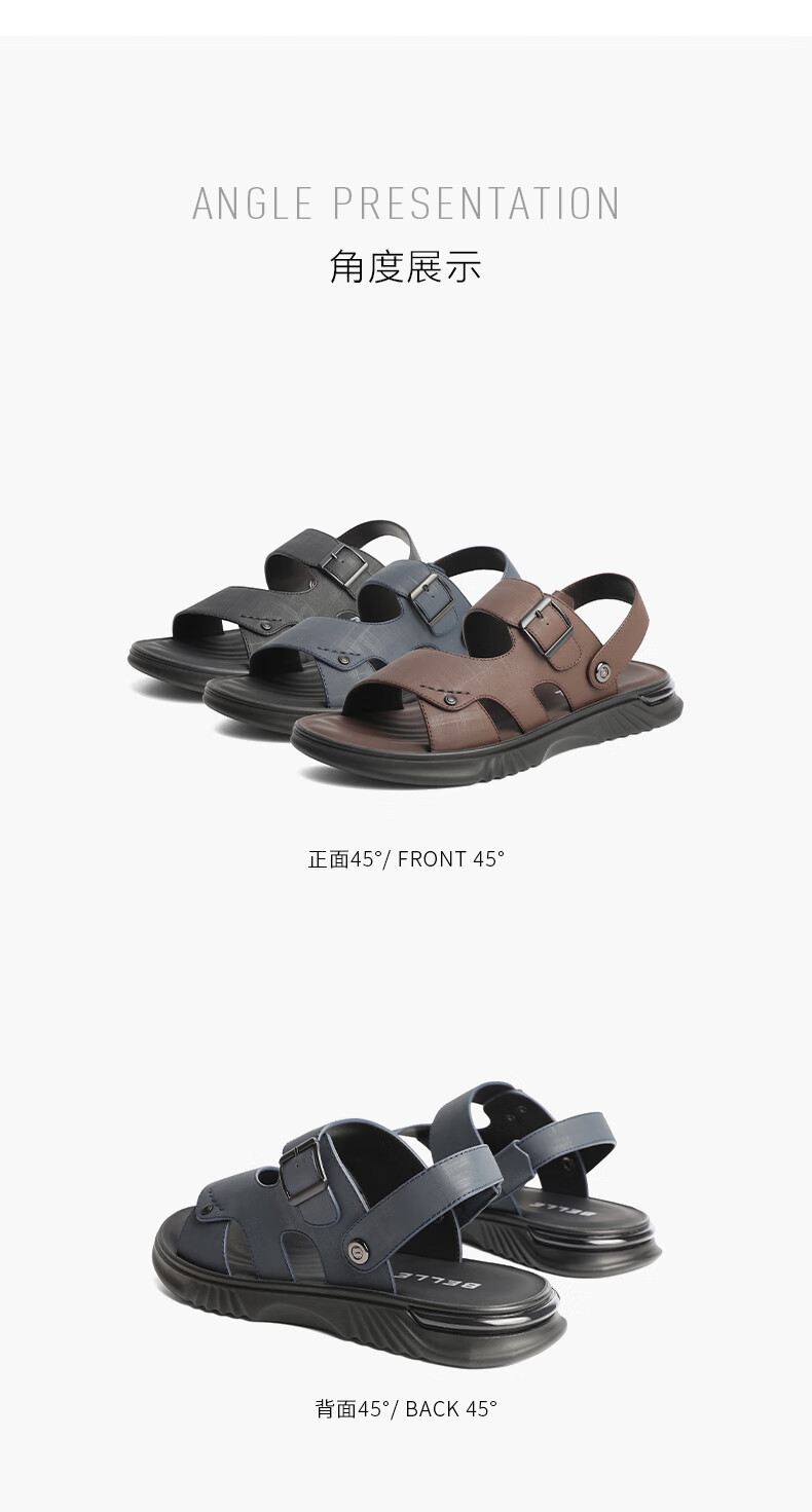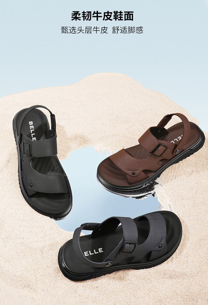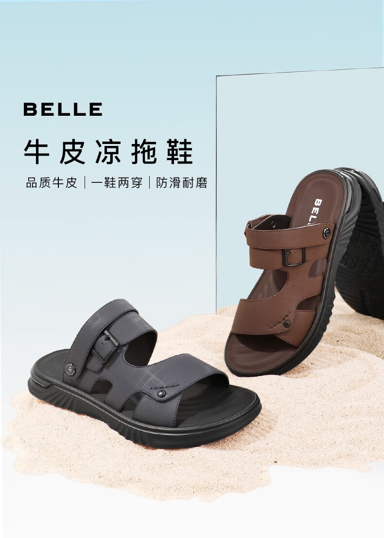 百丽休闲凉鞋男牛皮凉拖两穿软底...