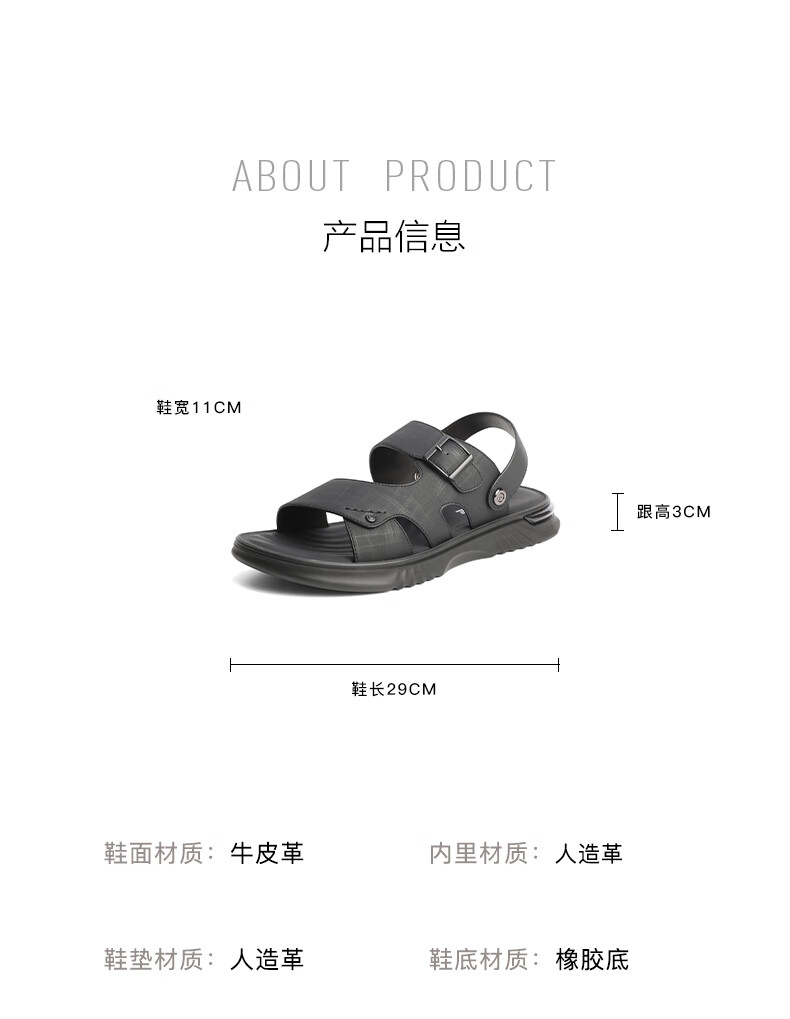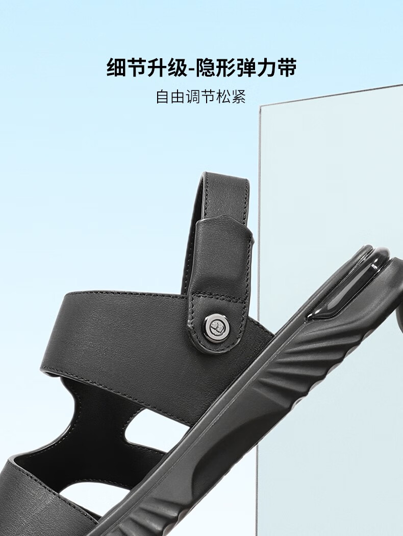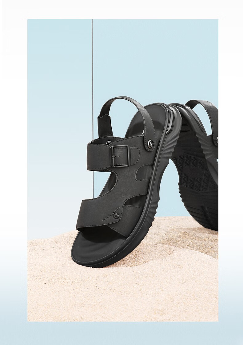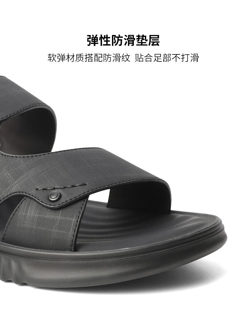 百丽休闲凉鞋男牛皮凉拖两穿软底...