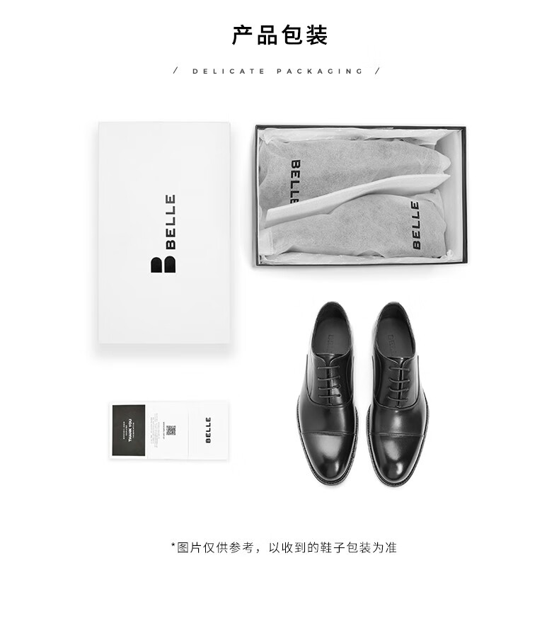 百丽牛皮商务休闲皮鞋男百搭马丁鞋子橡胶底86181CM0 黑 42
