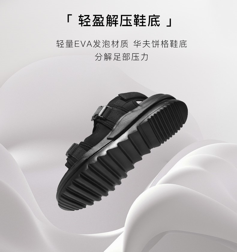 百丽沙滩凉鞋男便捷魔术贴舒适户...