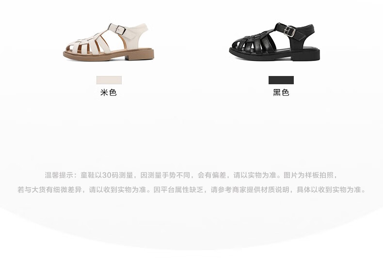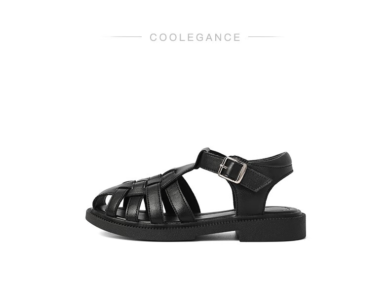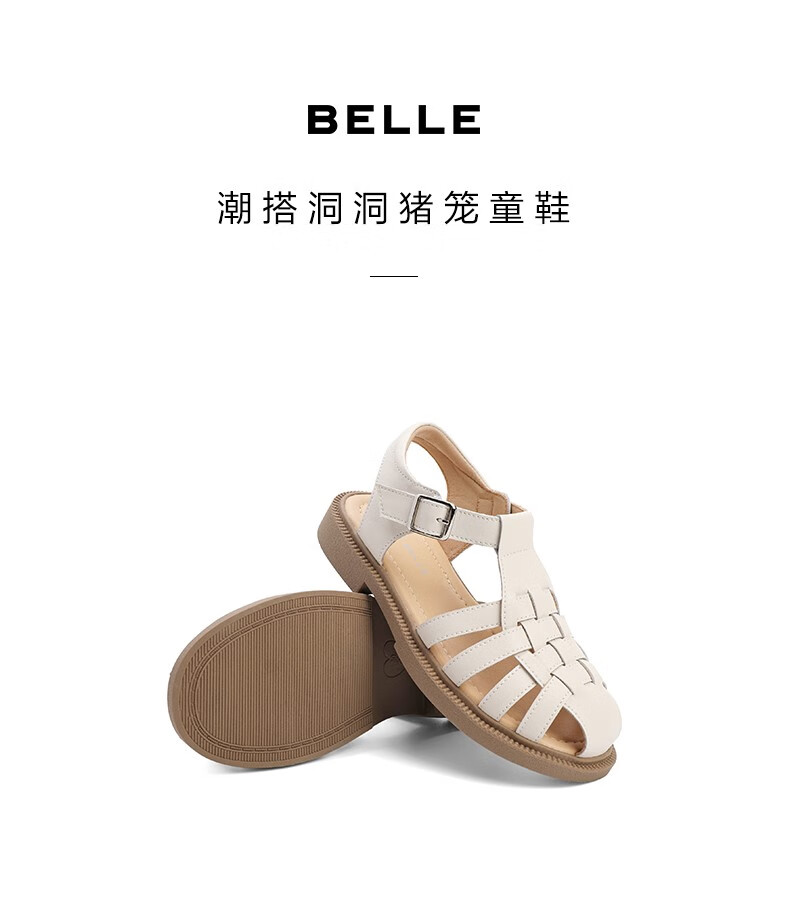 百丽平底罗马凉鞋童鞋女商场同款洞洞猪笼童鞋T2530B62 黑色 29