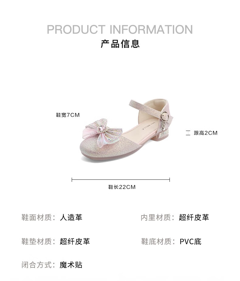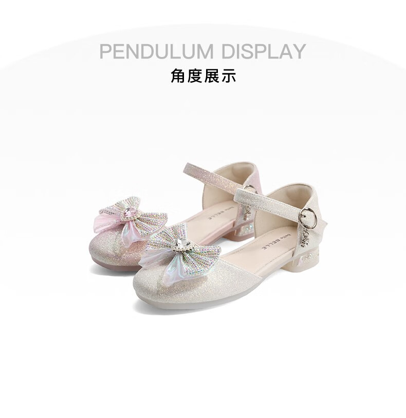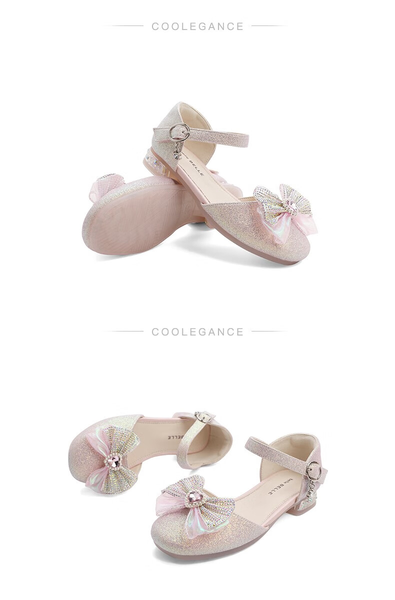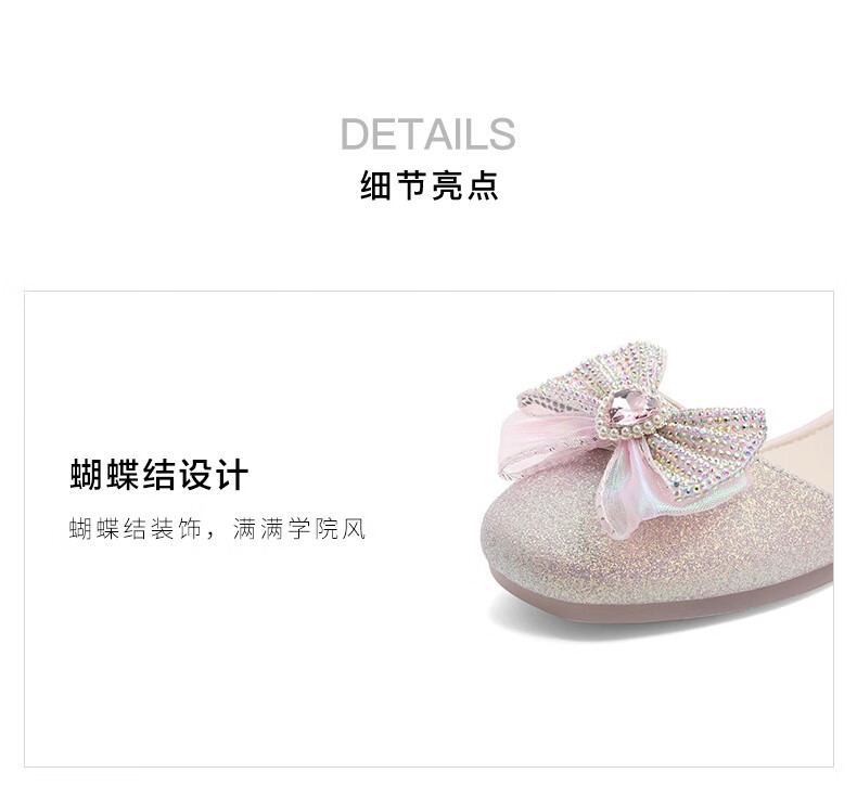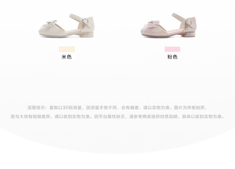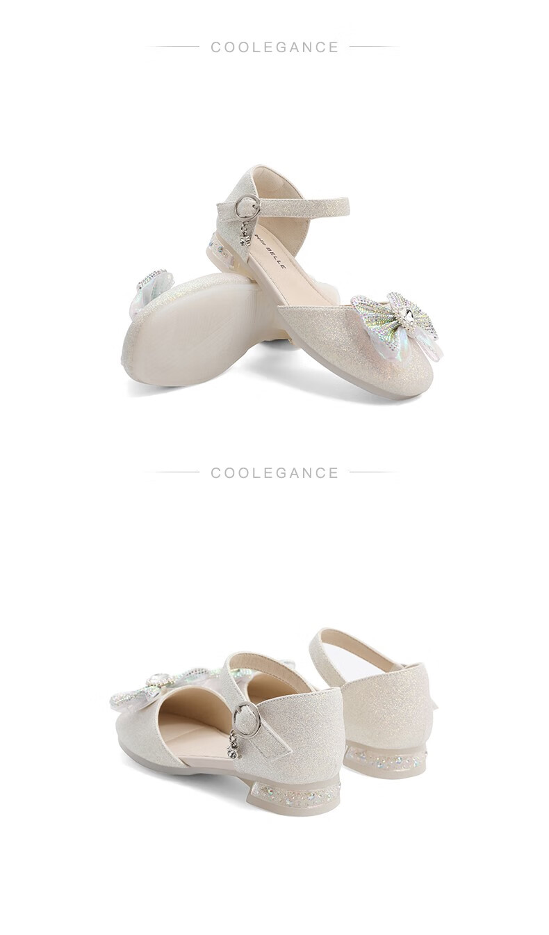 百丽包头水晶童鞋女商场同款时尚蝴蝶结公主鞋22107B72 米色 30