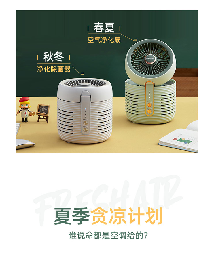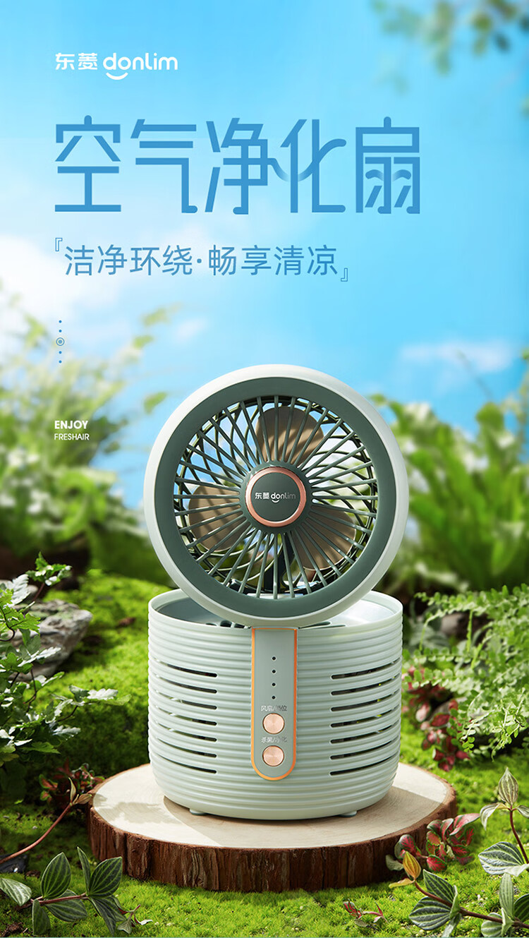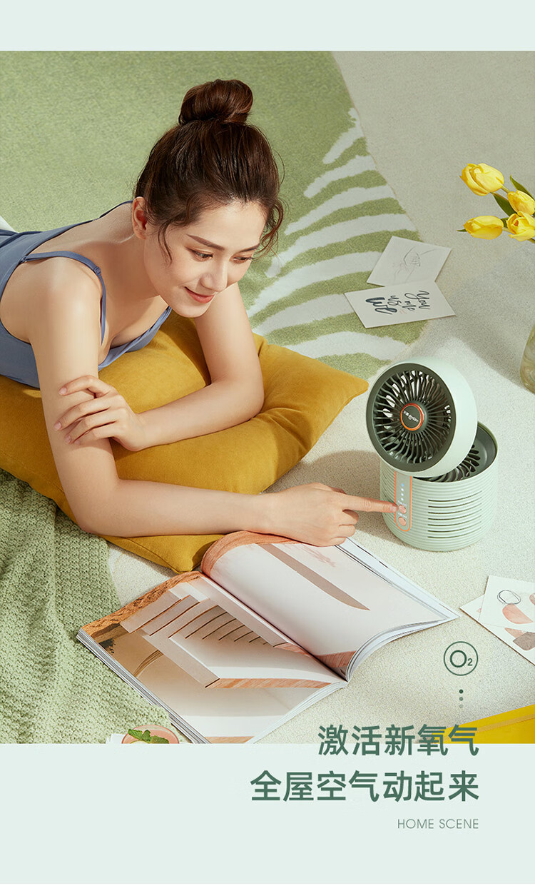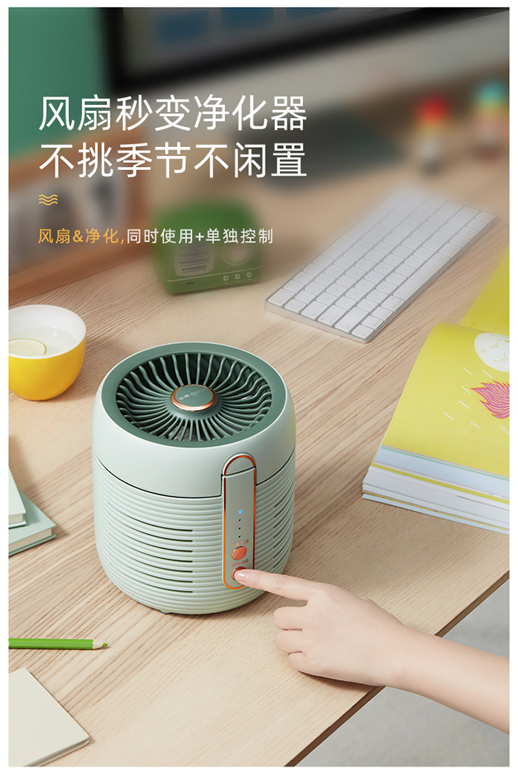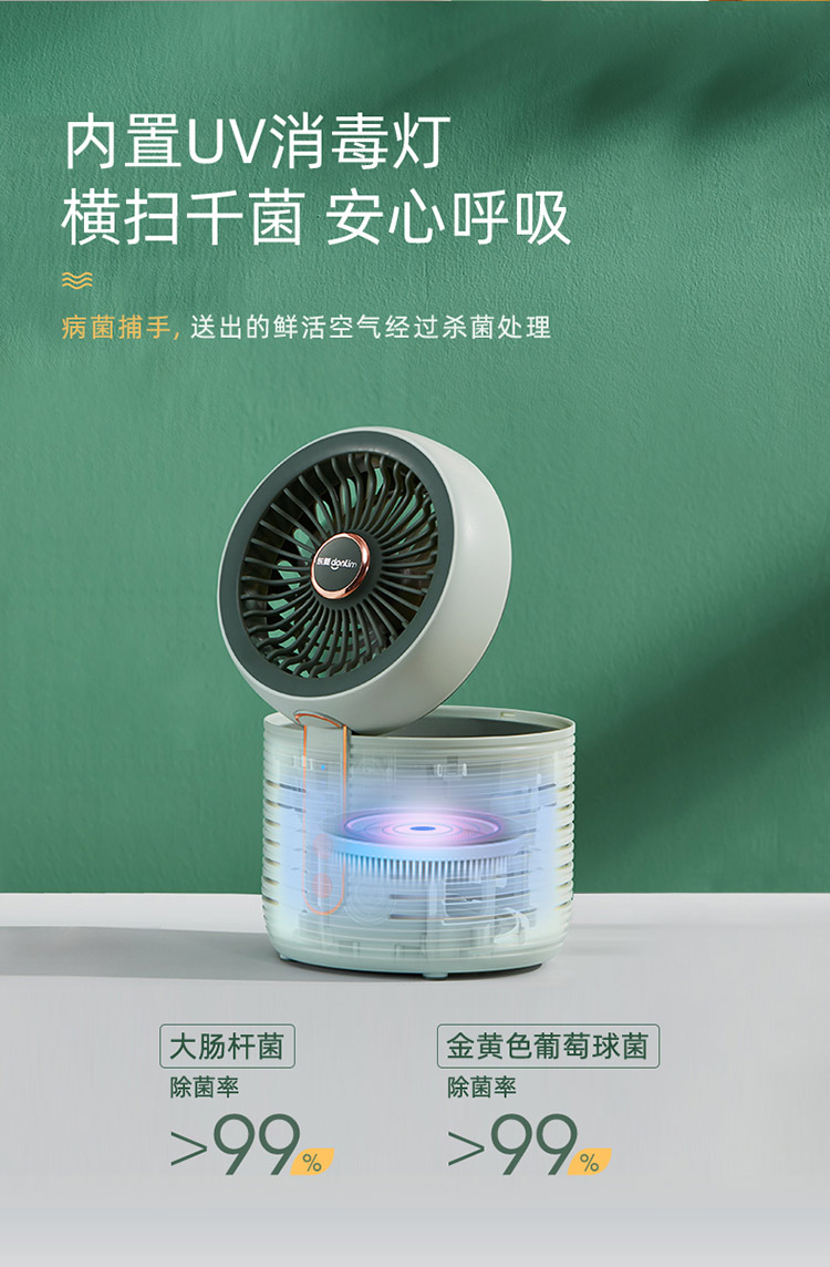 东菱(Donlim) 电风扇台式 家用空气循环净化扇 桌面办公小风扇落地扇轻音除尘杀菌DL-1408 薄荷绿
