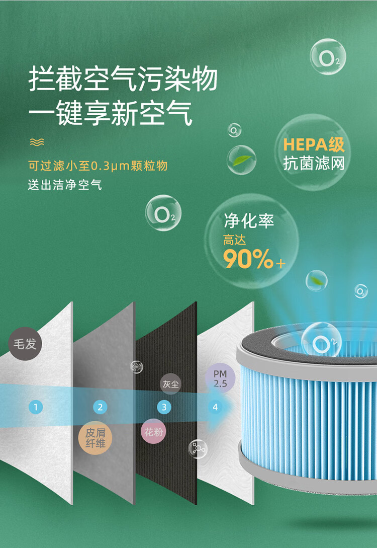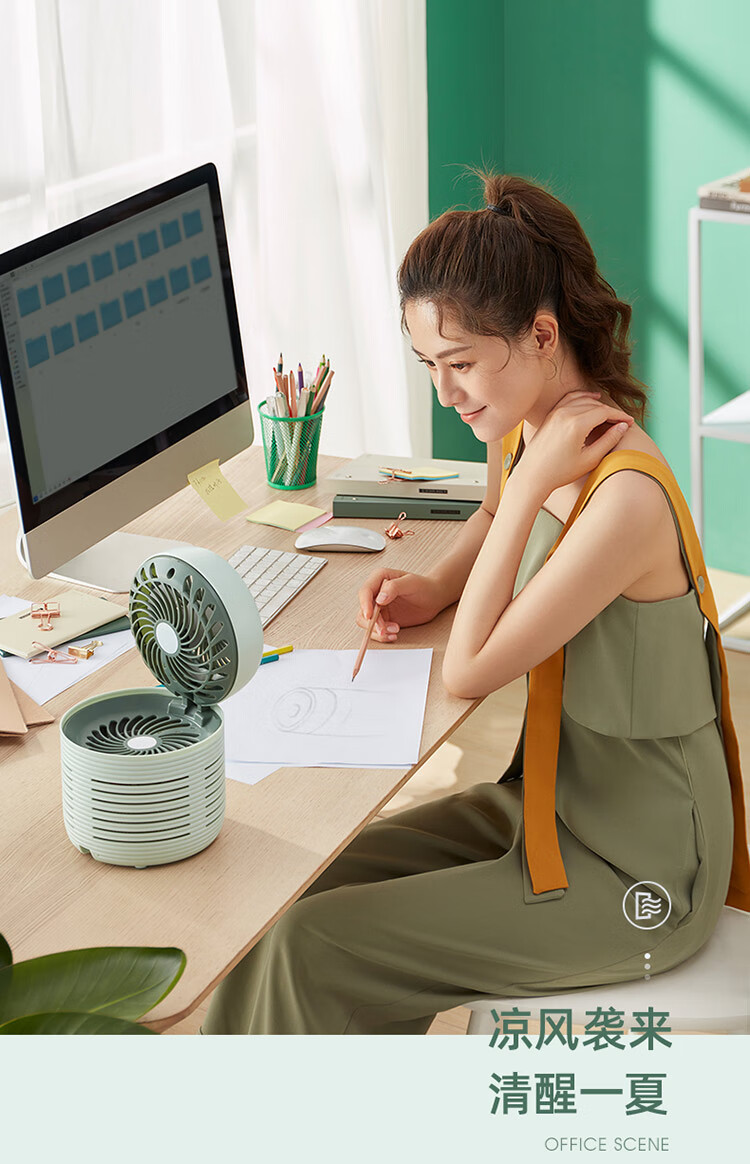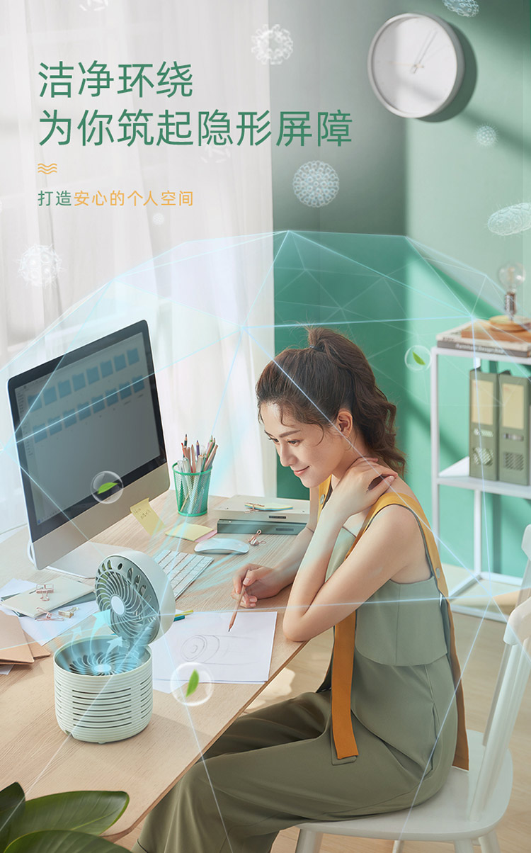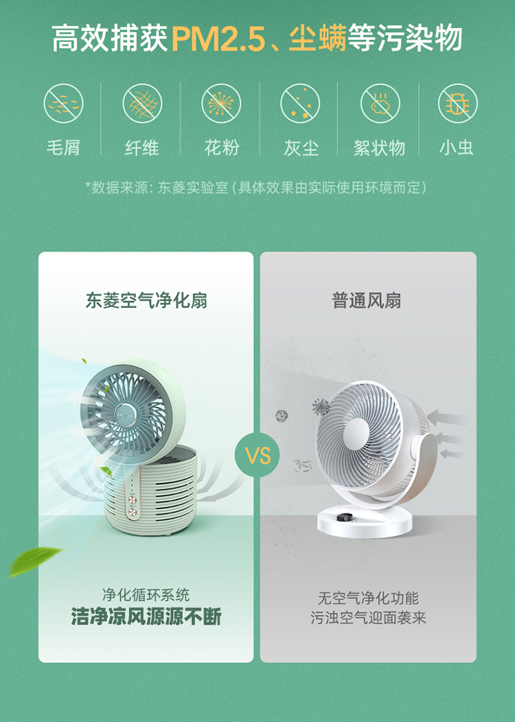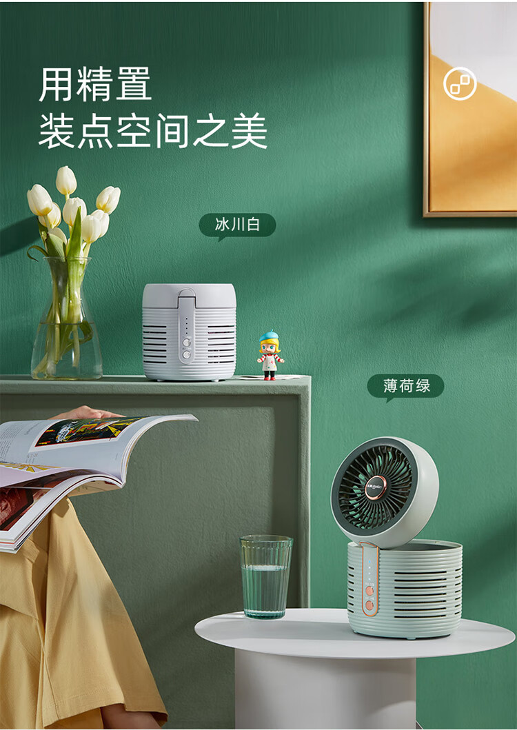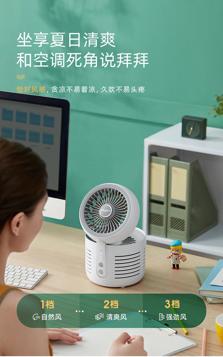 东菱(Donlim) 电风扇台式 家用空气循环净化扇 桌面办公小风扇落地扇轻音除尘杀菌DL-1408 薄荷绿