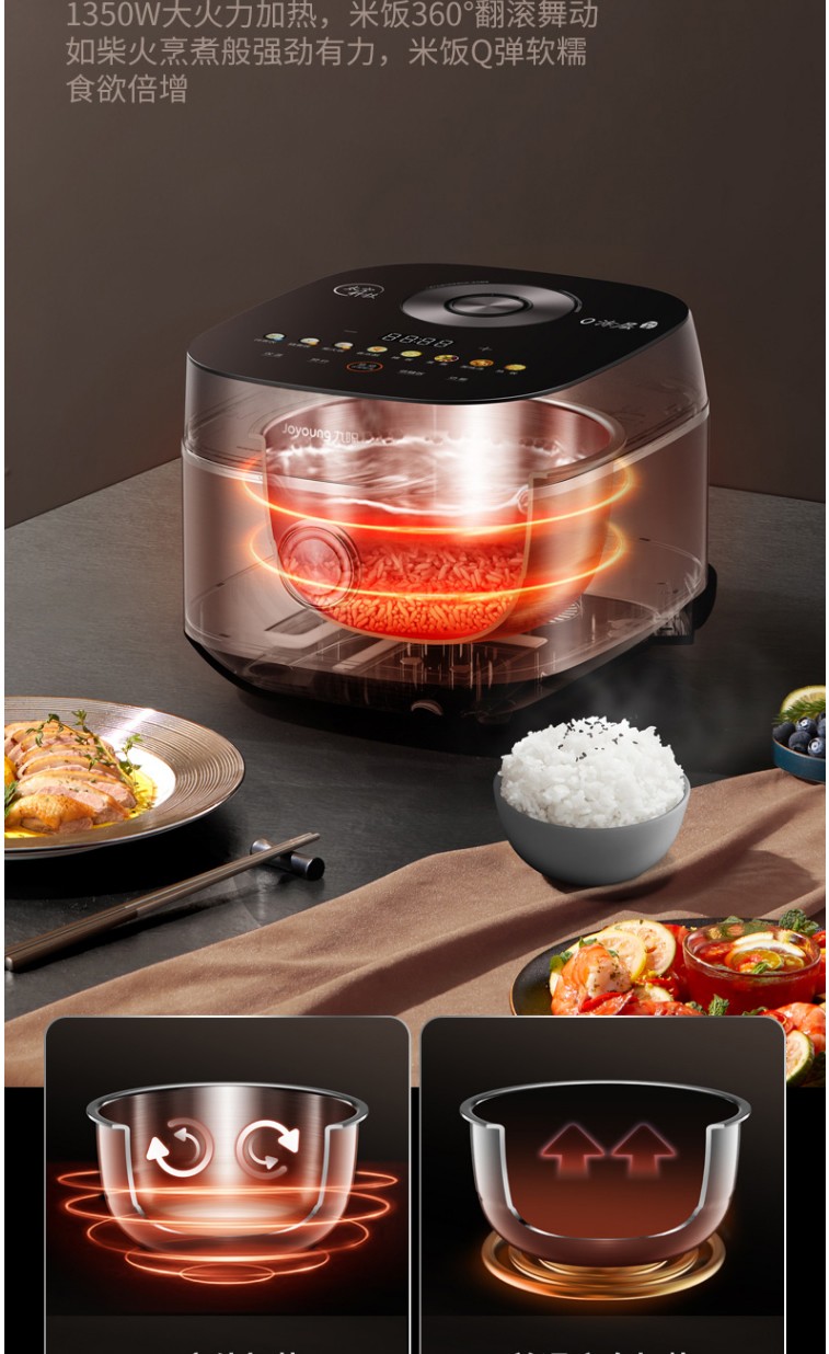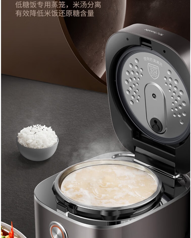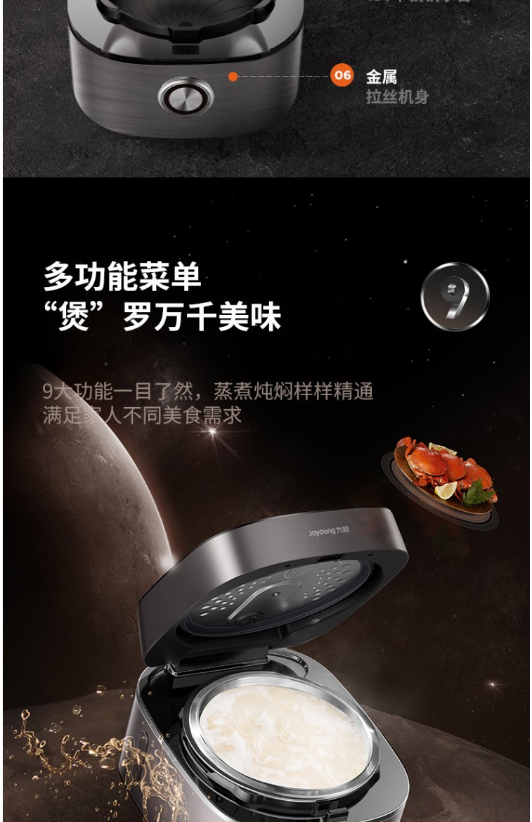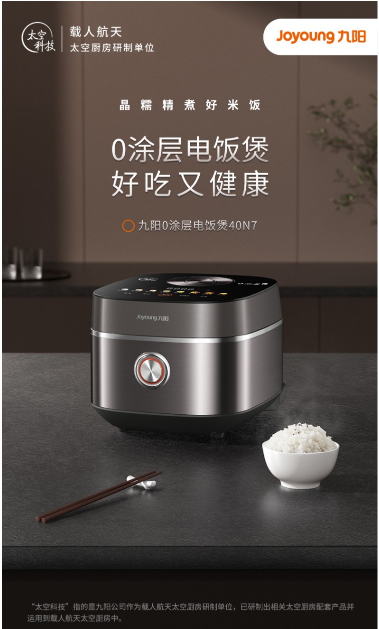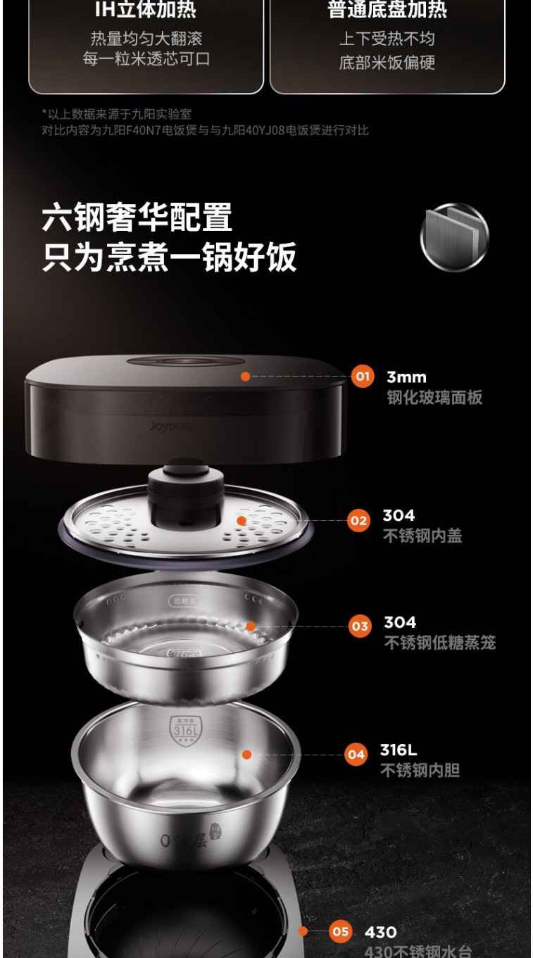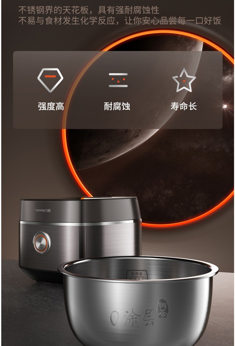 九阳(Joyoung) 0涂层内胆电饭煲 4L容量煮粥煲汤 IH电磁加热 316L不锈钢内胆电饭锅 40N7