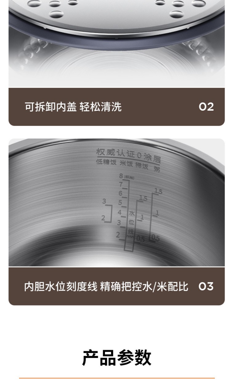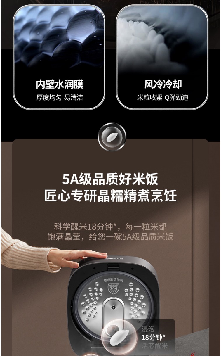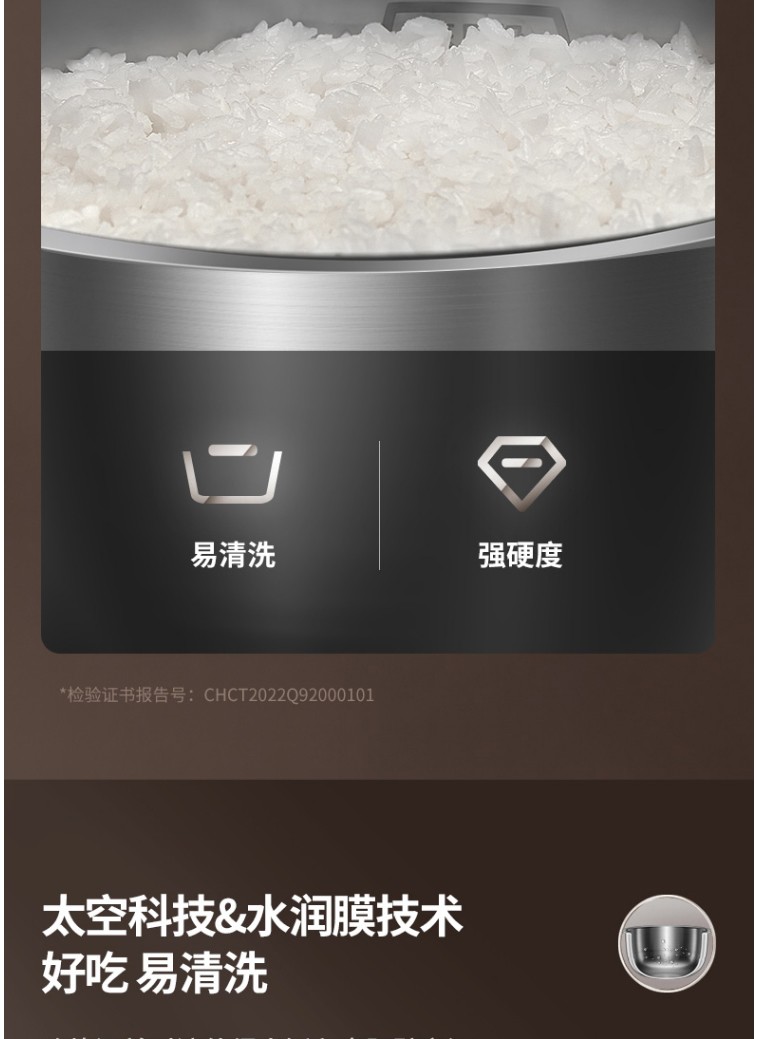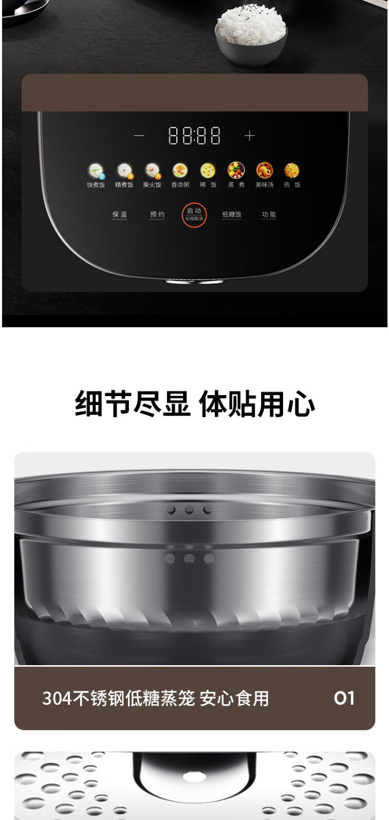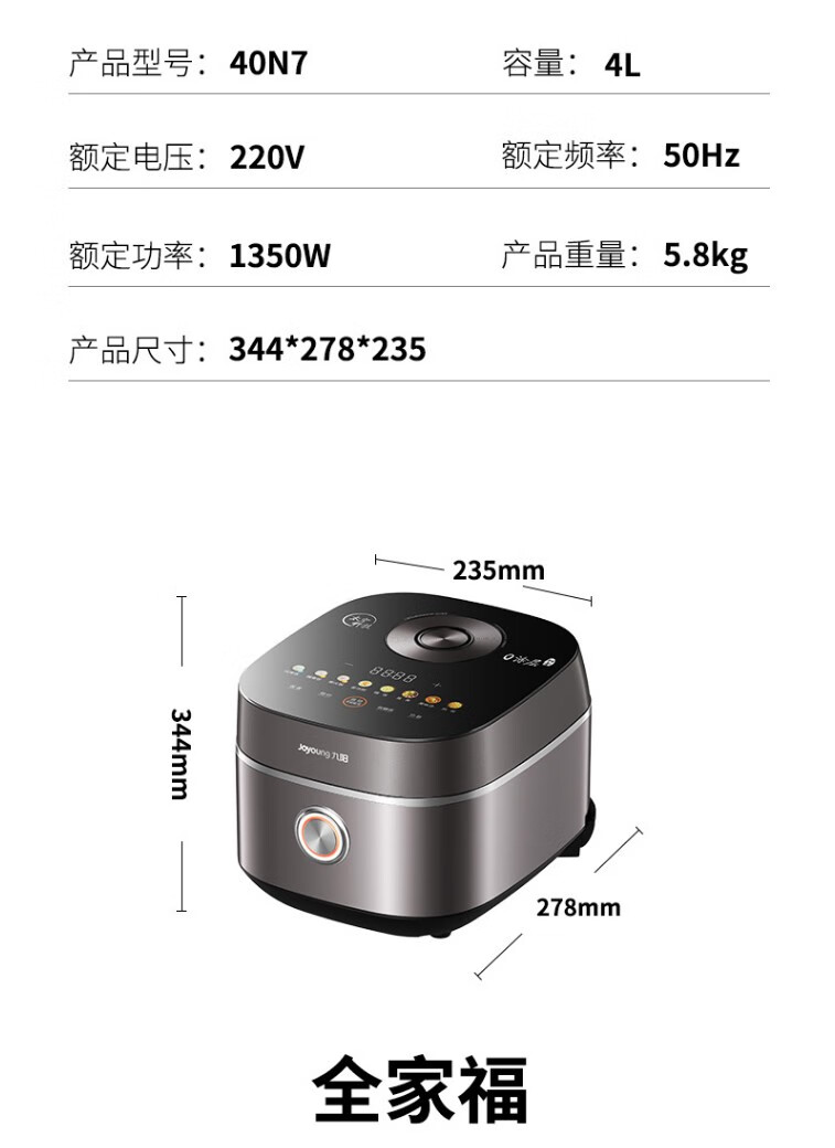 九阳(Joyoung) 0涂层内胆电饭煲 4L容量煮粥煲汤 IH电磁加热 316L不锈钢内胆电饭锅 40N7