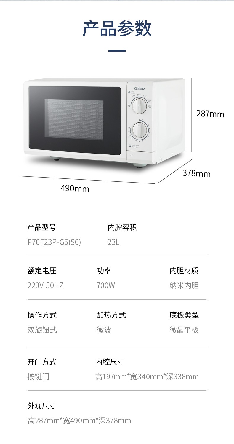 格兰仕(Galanz)格兰仕(Galanz) 微波炉 旋钮式家用 机械升级平板 快速加热式23升大容量 23L G5(S0)