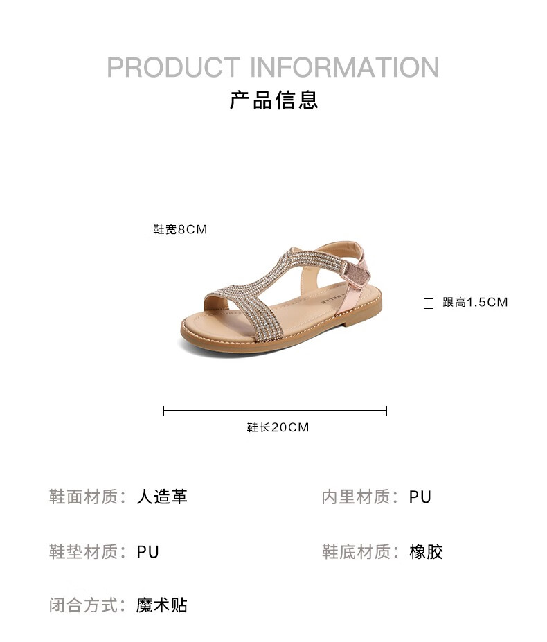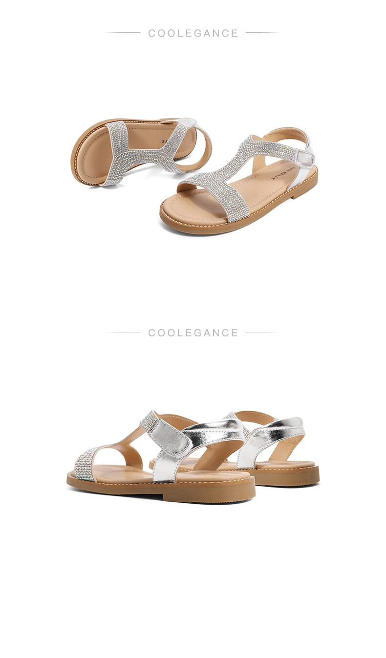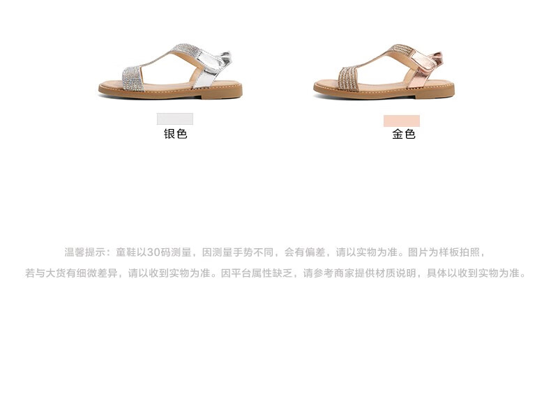 百丽亮钻凉鞋女商场同款度假风童鞋23500B62 银色 32