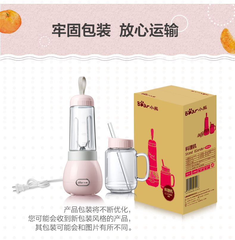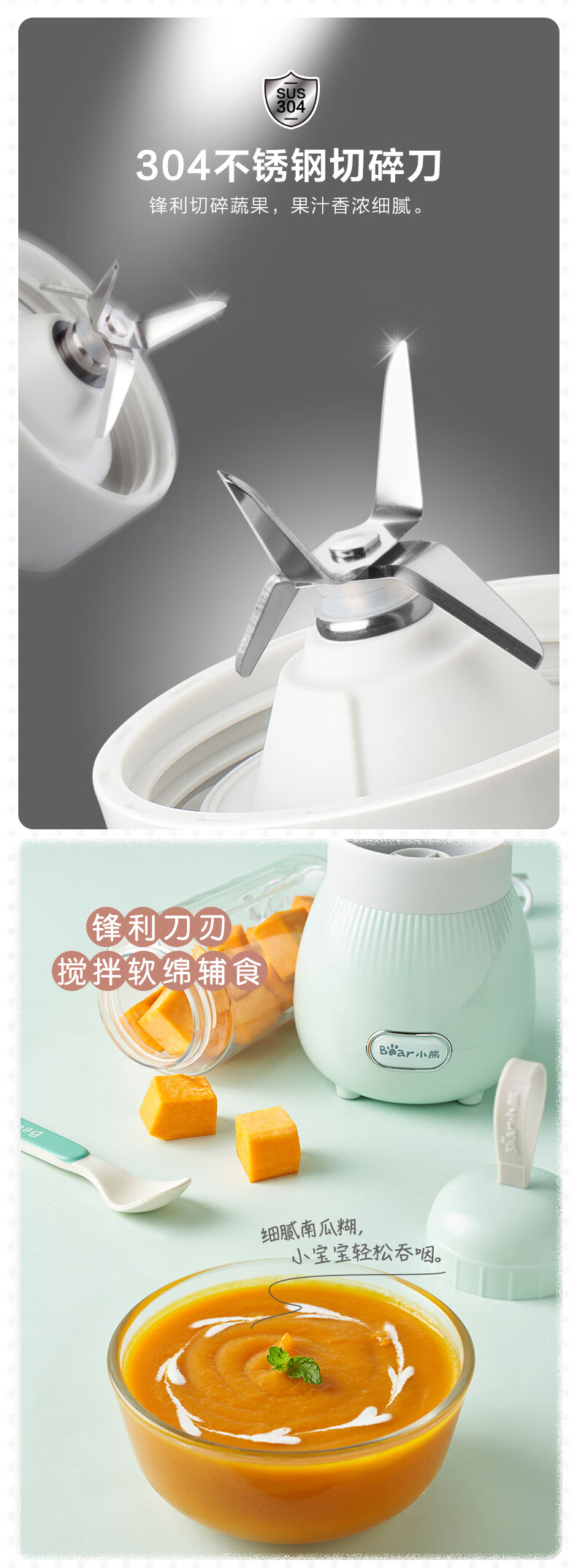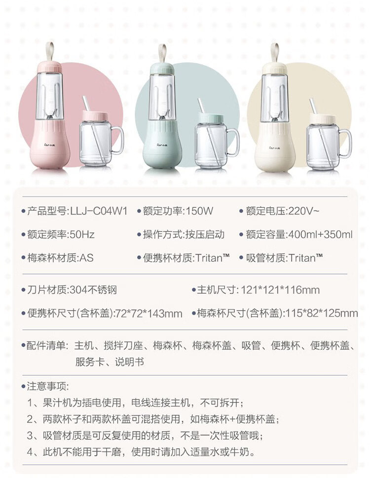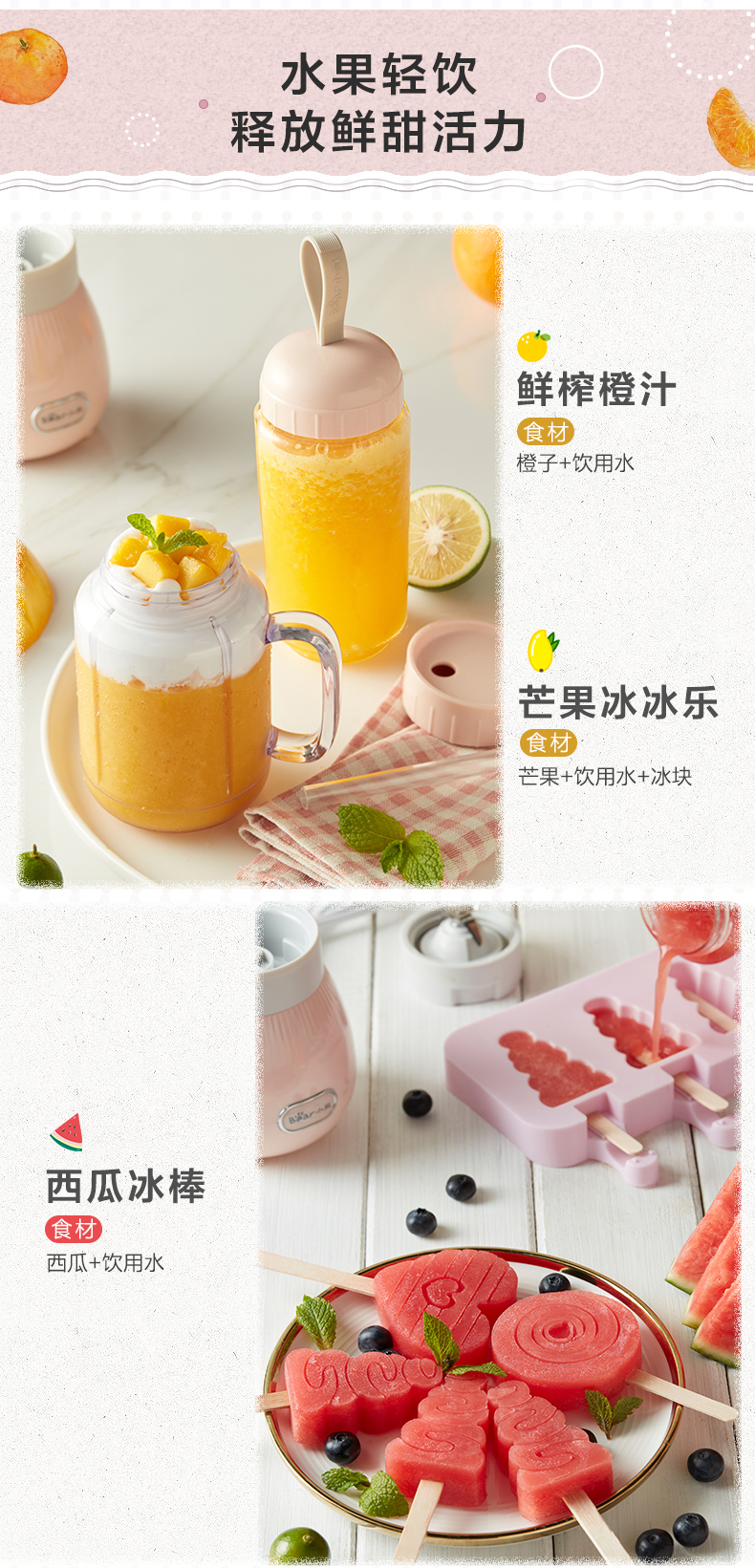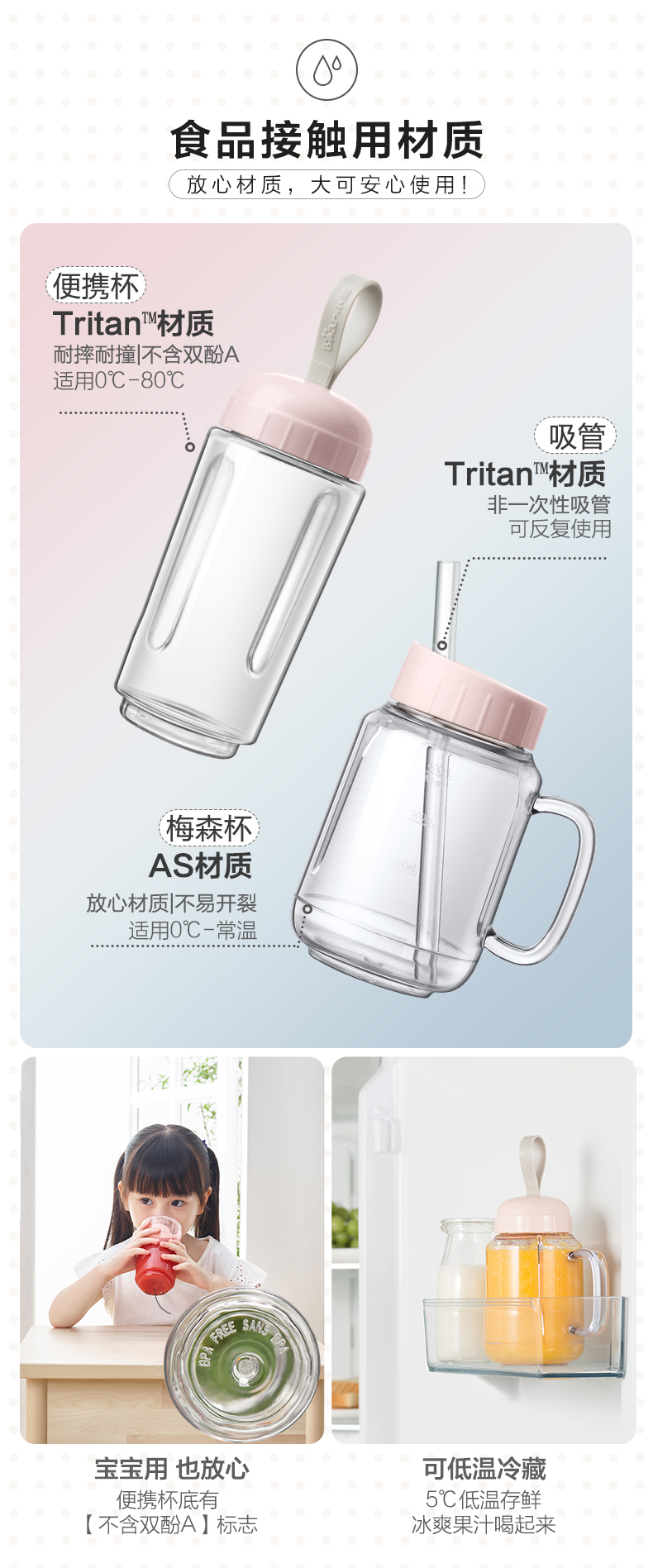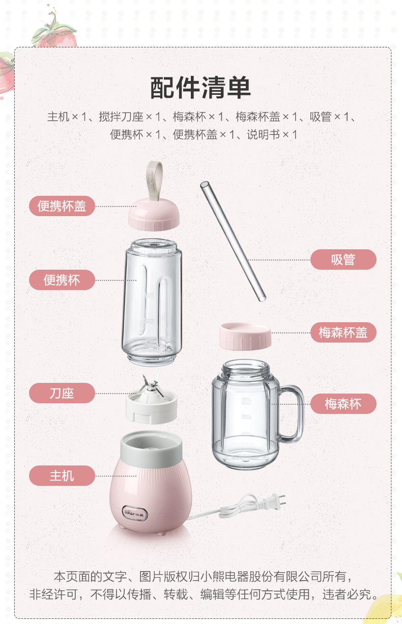 小熊(Bear) 便携式榨汁机家用迷你水果小型炸果汁机料理机电动多功能榨汁杯随身携带 LLJ-C04W1 粉色双杯