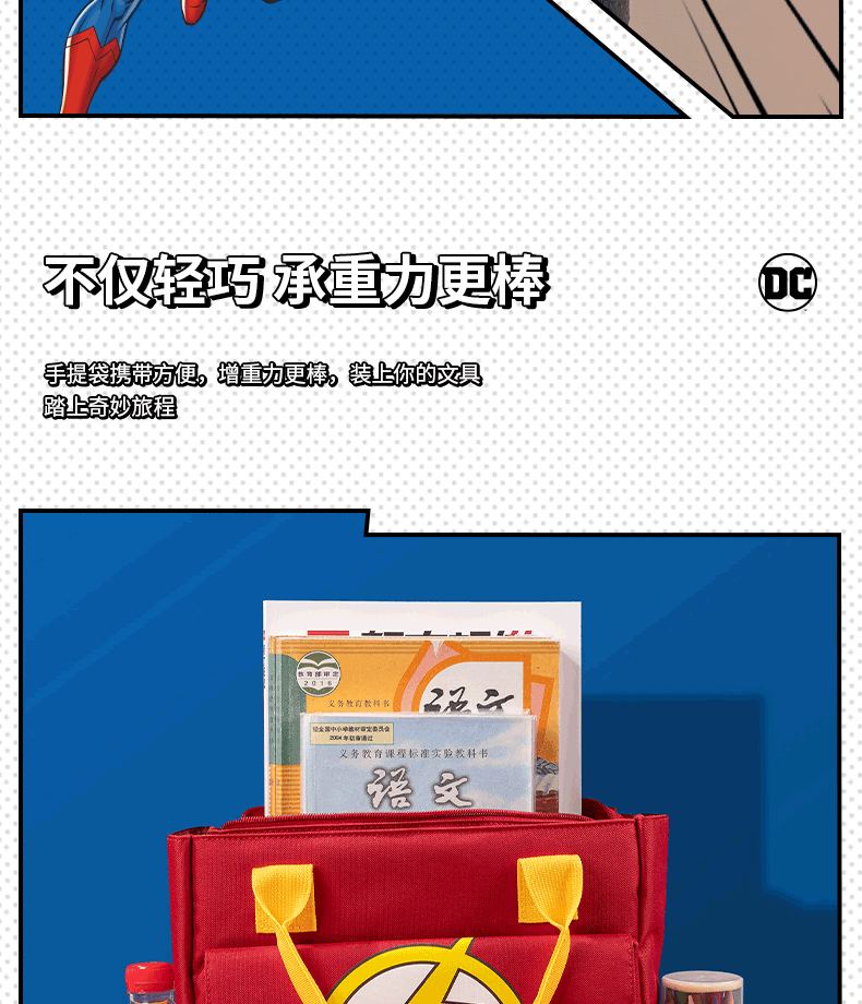 得力(deli)补习袋中小学生手提袋拎书袋男孩儿童美术袋多功能补课书包 【正义联盟】蓝色补习袋73162