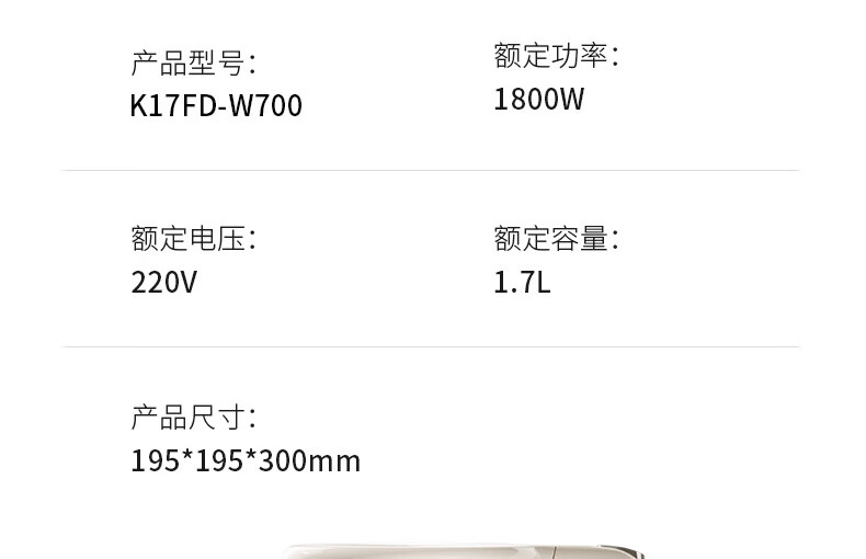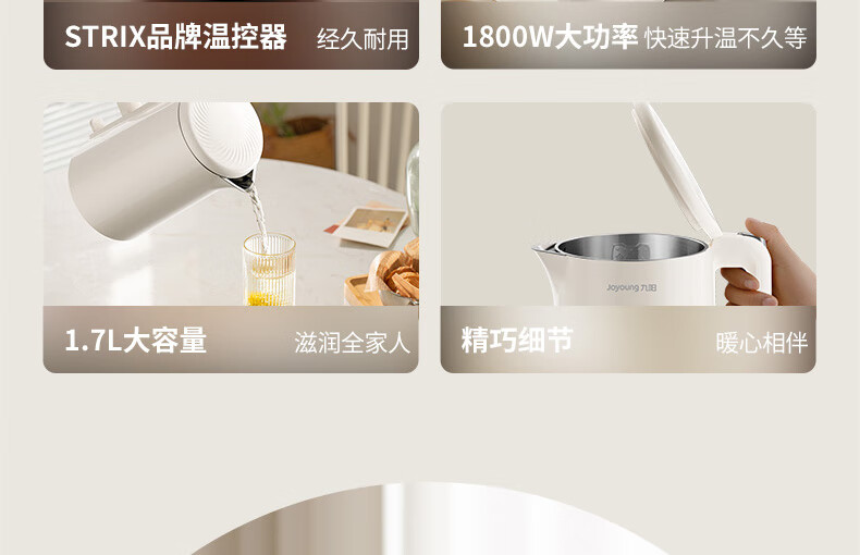 九阳(Joyoung)电水壶家用烧水壶一键烧水进口温控器自动断电开水煲 蓝色【K17FD-W750 1.7L】