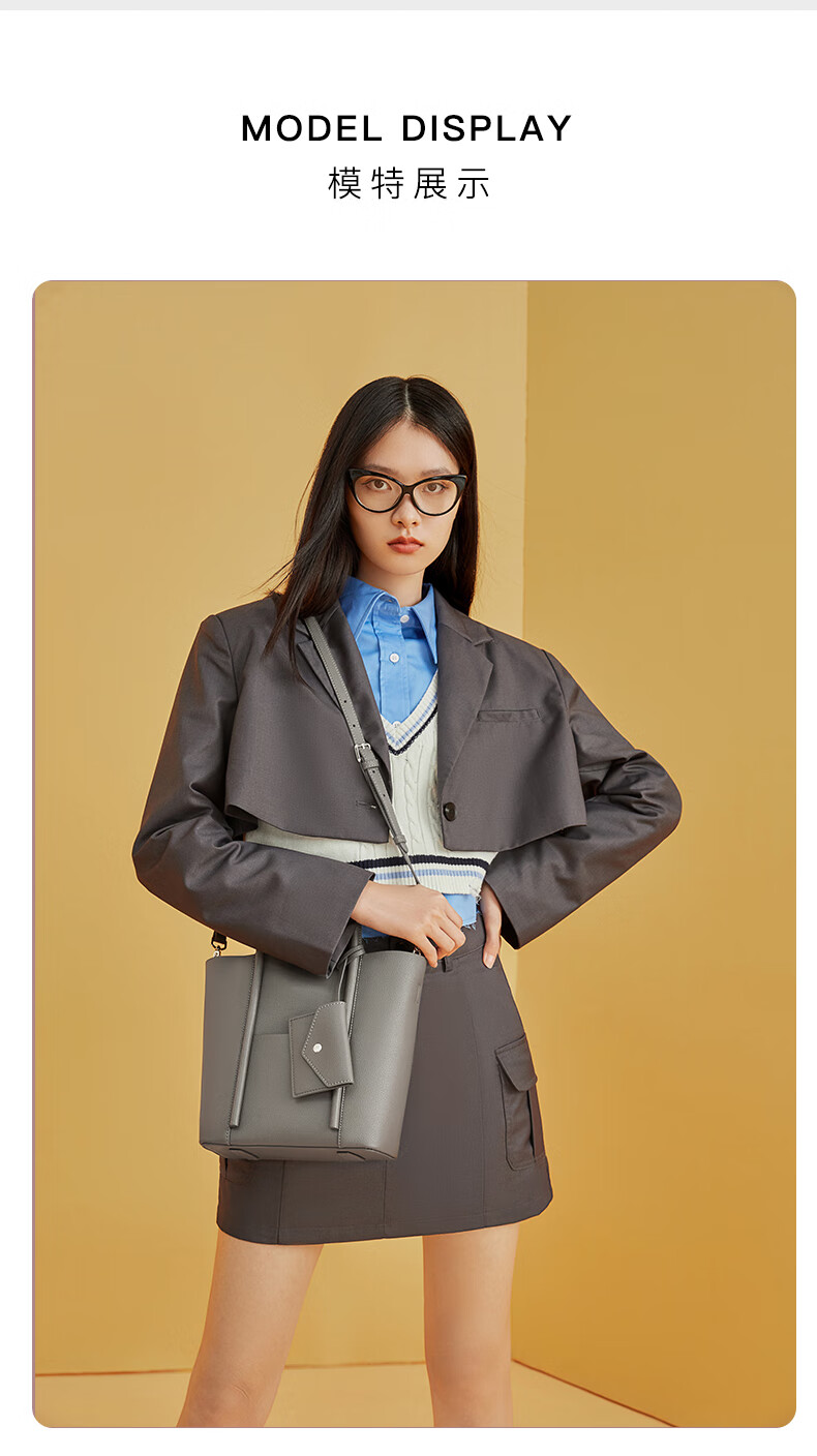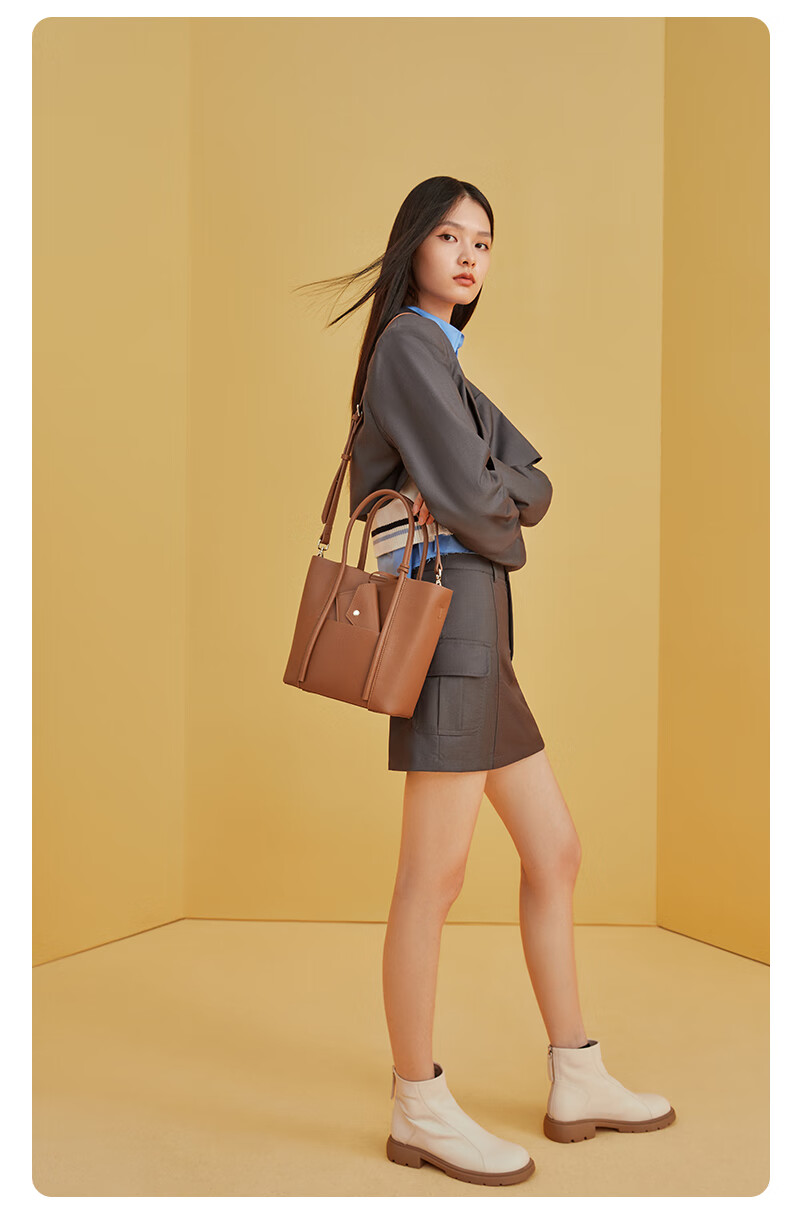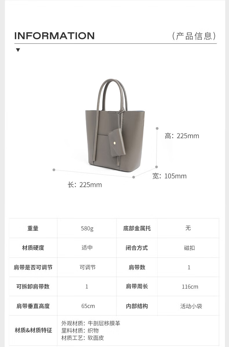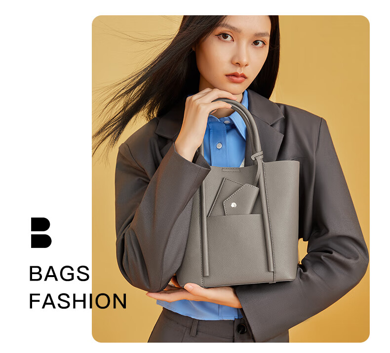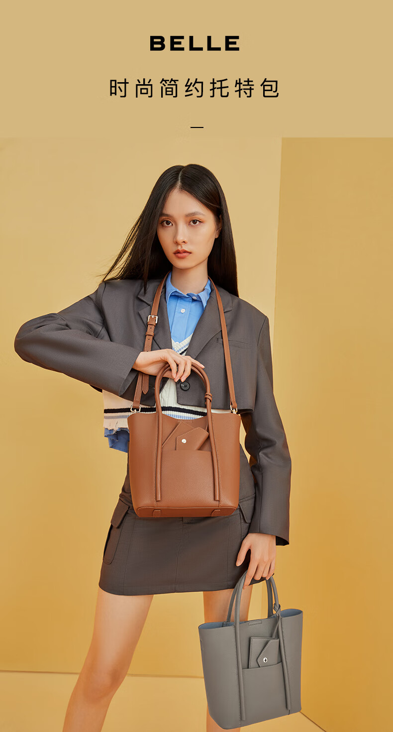 百丽时尚托特包女商场同款质感简约手提斜挎BL032CX2 灰色 F