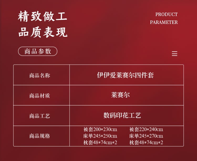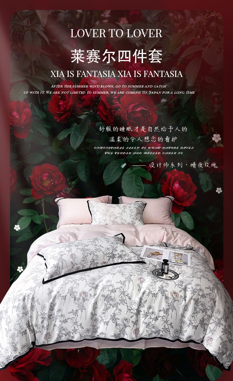 伊伊爱TJ0ZML2201670暗夜玫瑰莱赛尔印花四件套 暗夜玫瑰 200*230cm