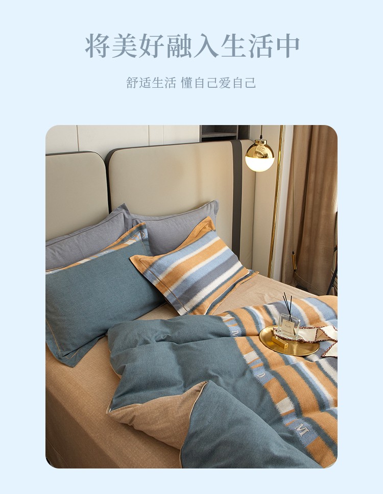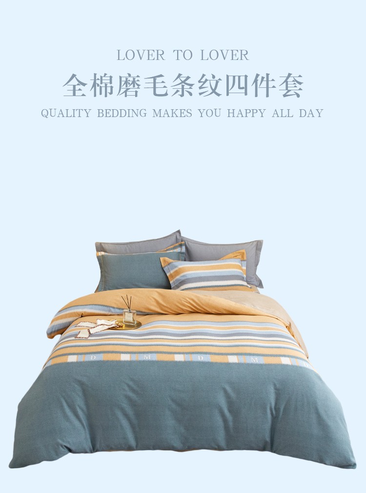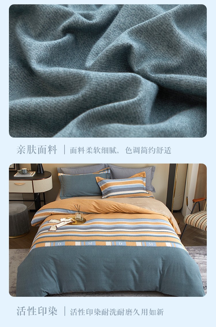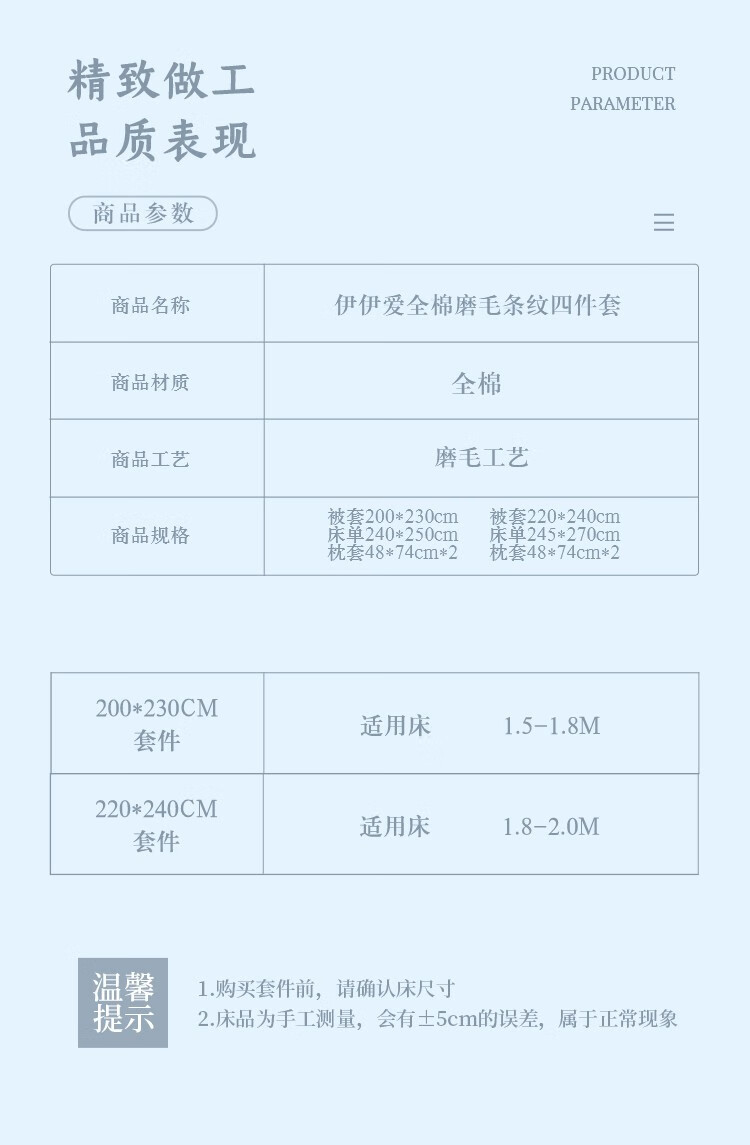 伊伊爱 全棉磨毛条纹四件套 (单位:套) 青春小调(绿) 200*230cm/TJ0HJC2201657