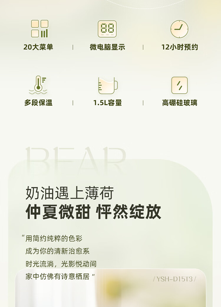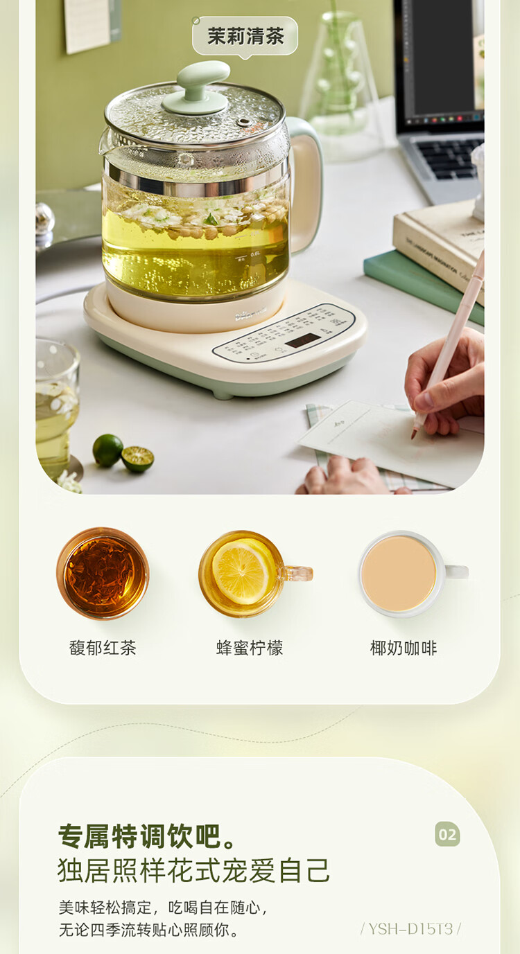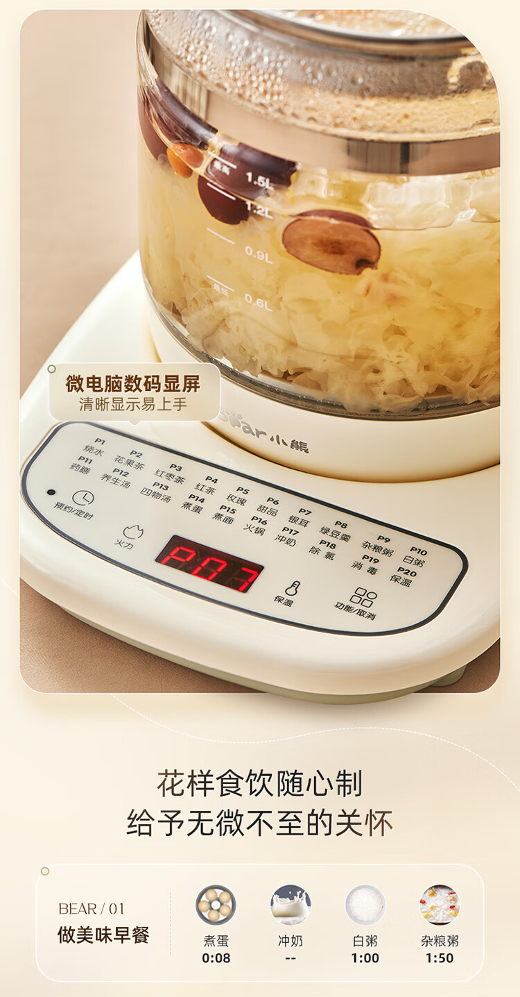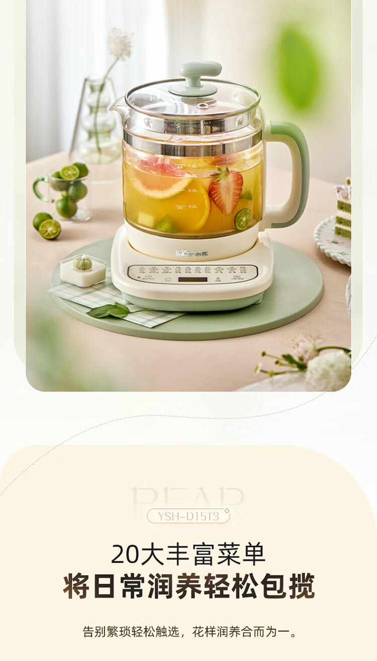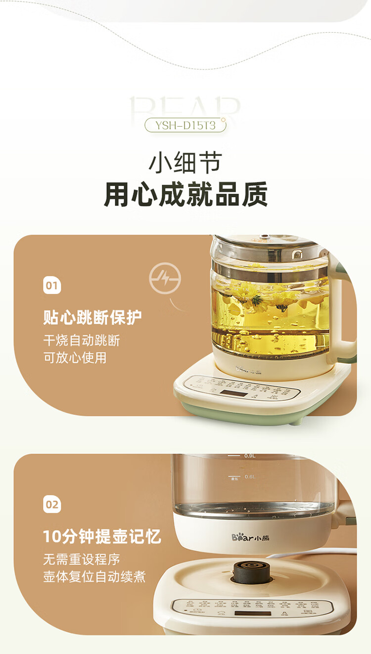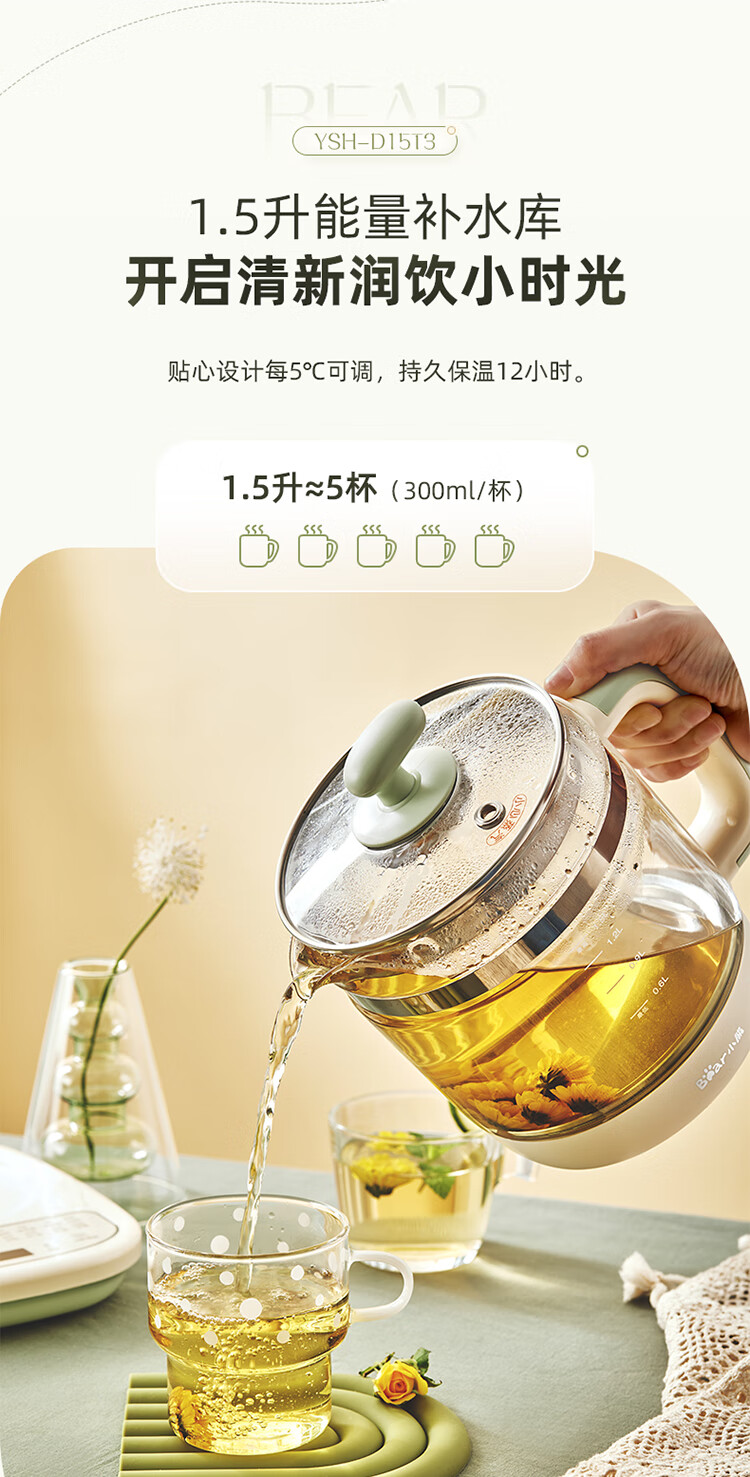小熊(Bear) 养生壶煮茶壶电热水壶1.5L多功能恒温水壶 YSH-D15T3 【ZMD安心系列】